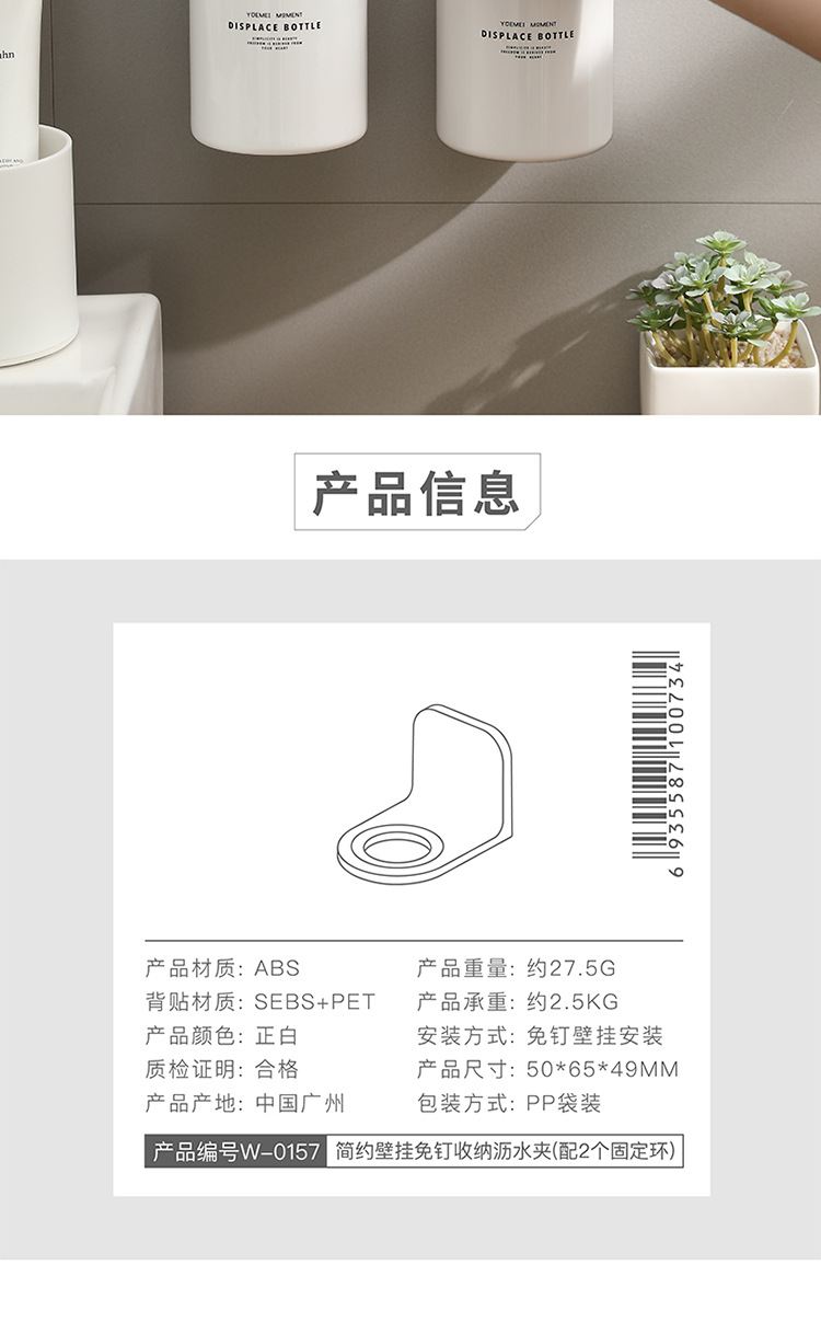 LEYIX 병 보관 클립 펀치없는 욕실 벽 매달려 강한 후크 손 소독제 샴푸 보관 랙스토어 가기