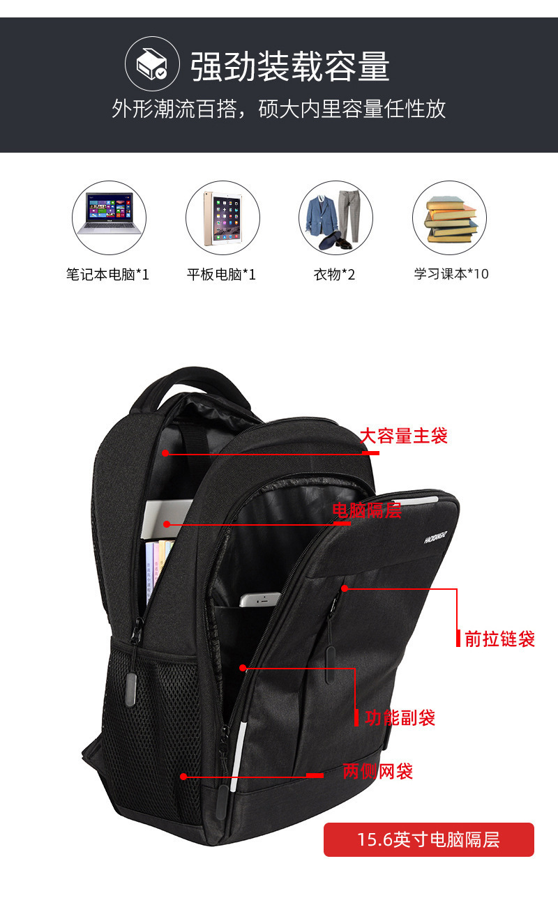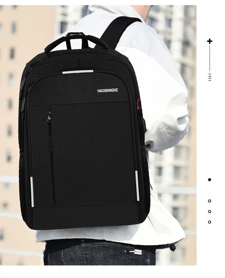 새로운 다기능 비즈니스 백팩 USB 인터페이스 대용량 헤드폰 홀 심플 캐주얼 인쇄 가능한 로고 백팩