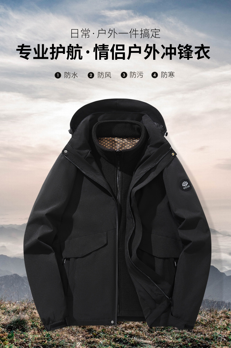 남성과 여성의 야외 3-in-one 탈착식 후드 2 피스 등산 재킷 인쇄 가능스토어 가기