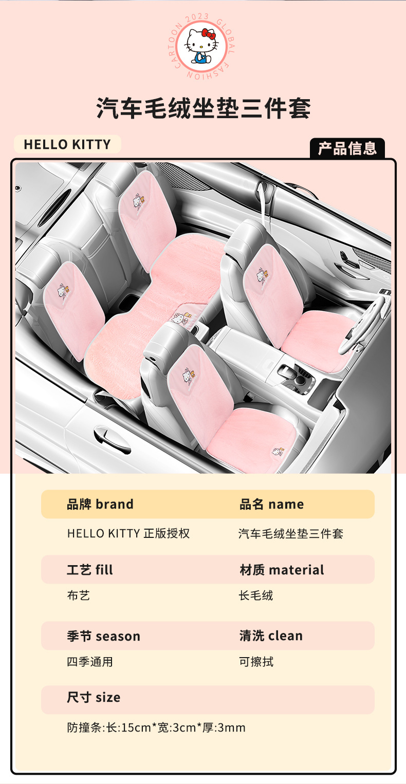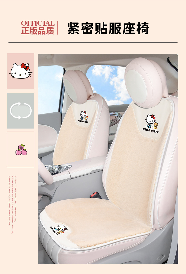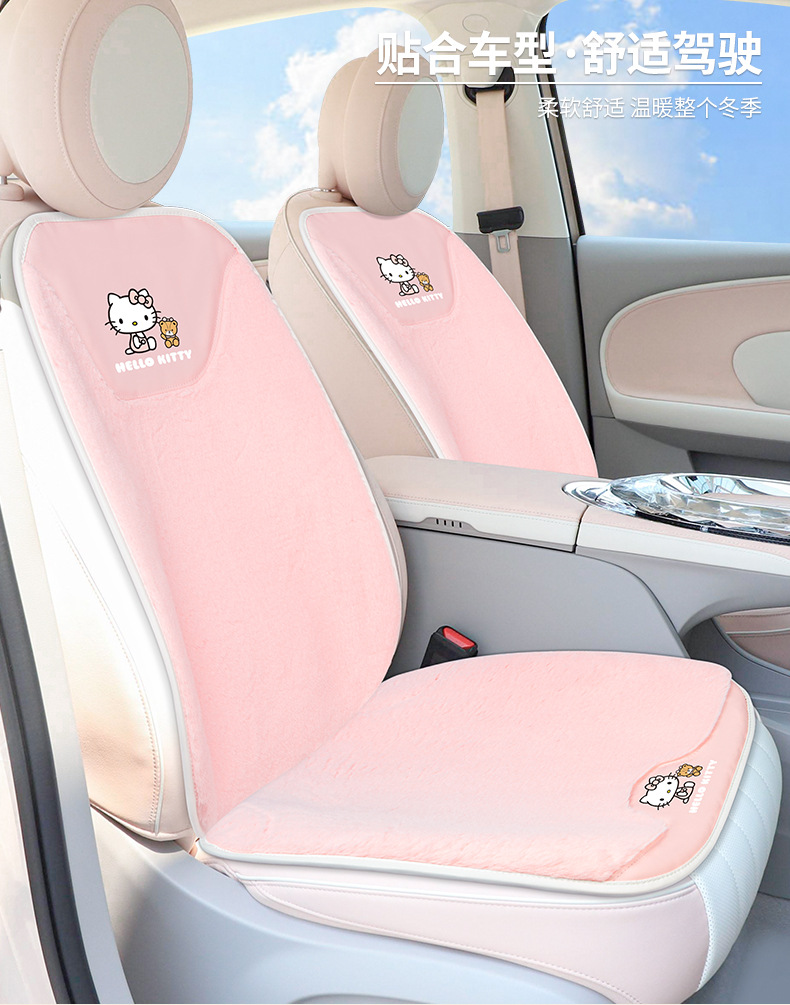 키티 자동차 시트 쿠션 겨울 플러시 모 놀리 식 숙녀 자동차 시트 쿠션 2023 새로운 메인 운전 유니버설 귀여운스토어 가기