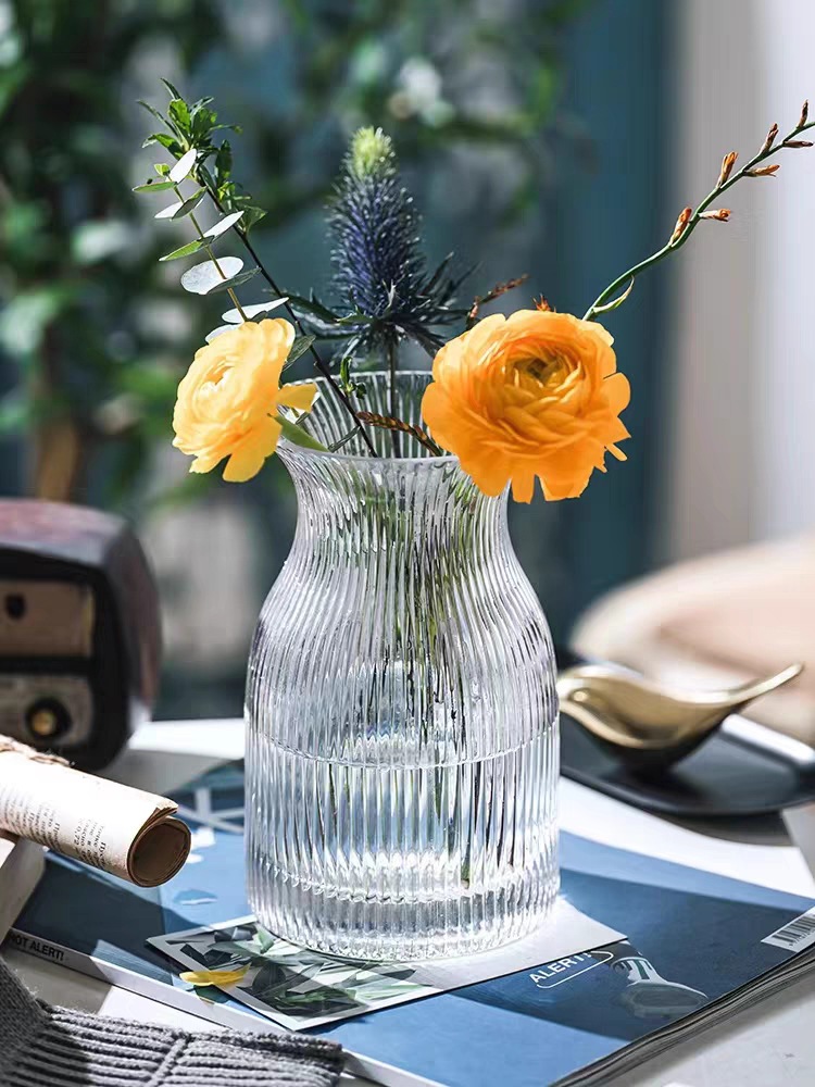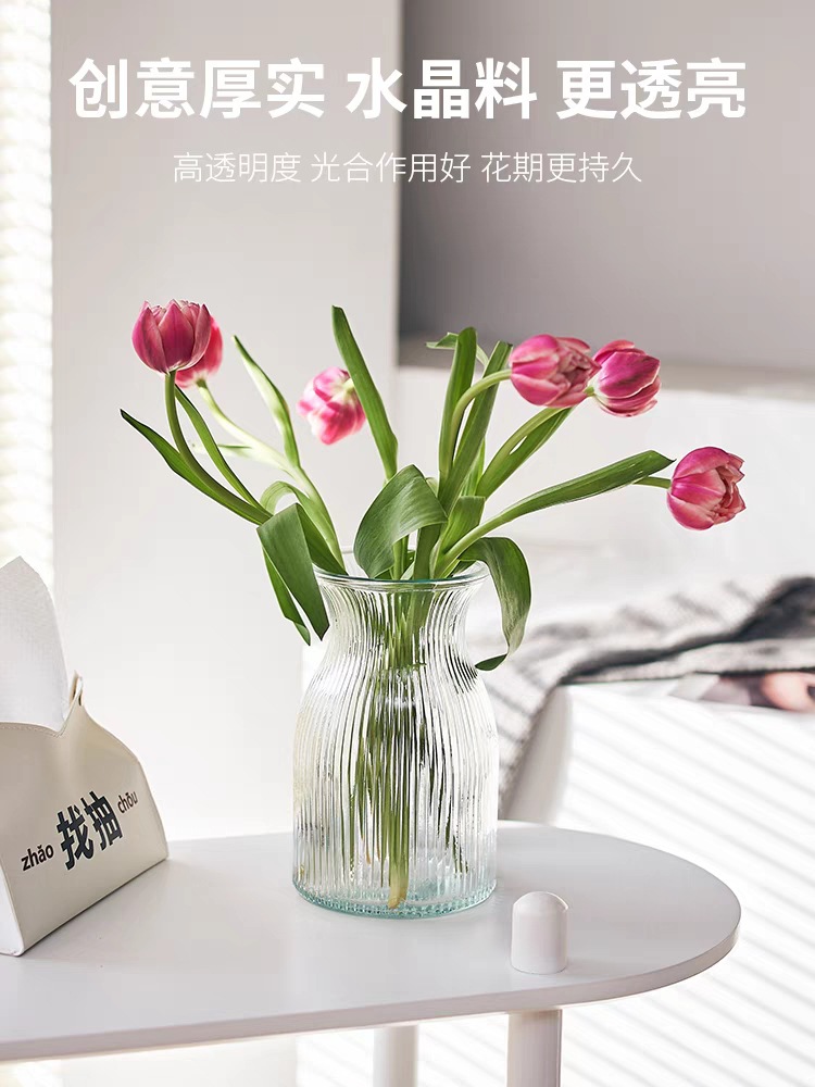 간단한 크리에이 티브 투명 유리 꽃병 데스크탑 물 장미 말린 꽃 북유럽 스타일 거실 꽃 장식품스토어 가기