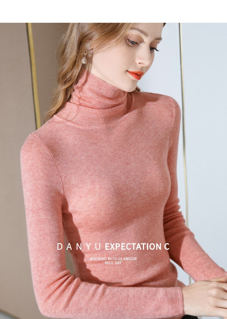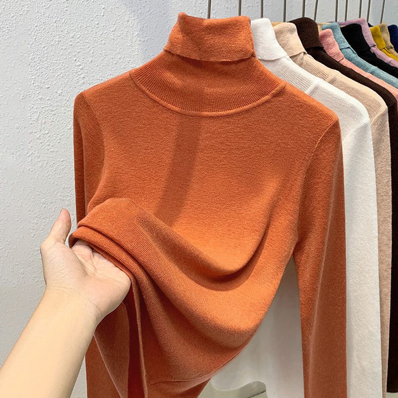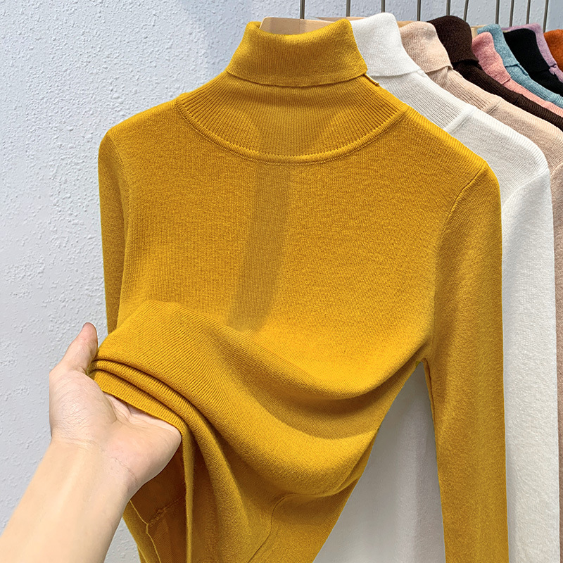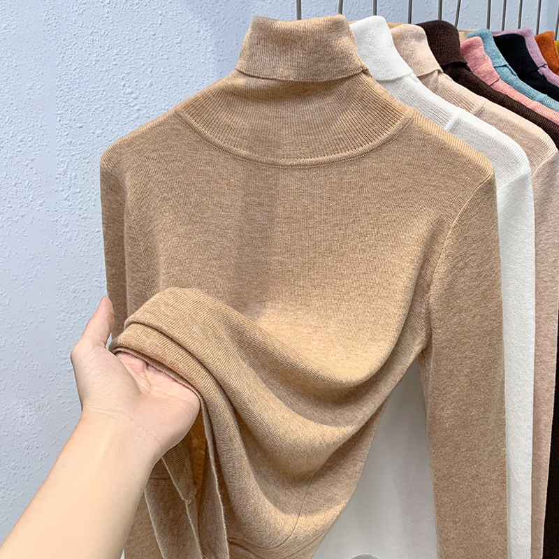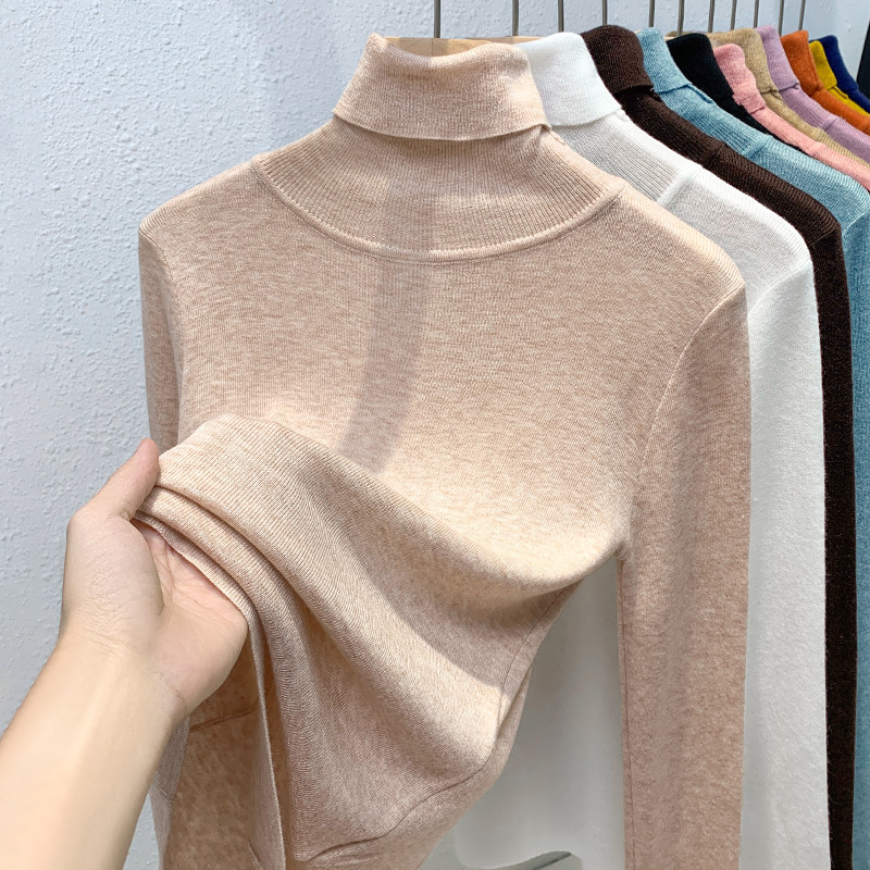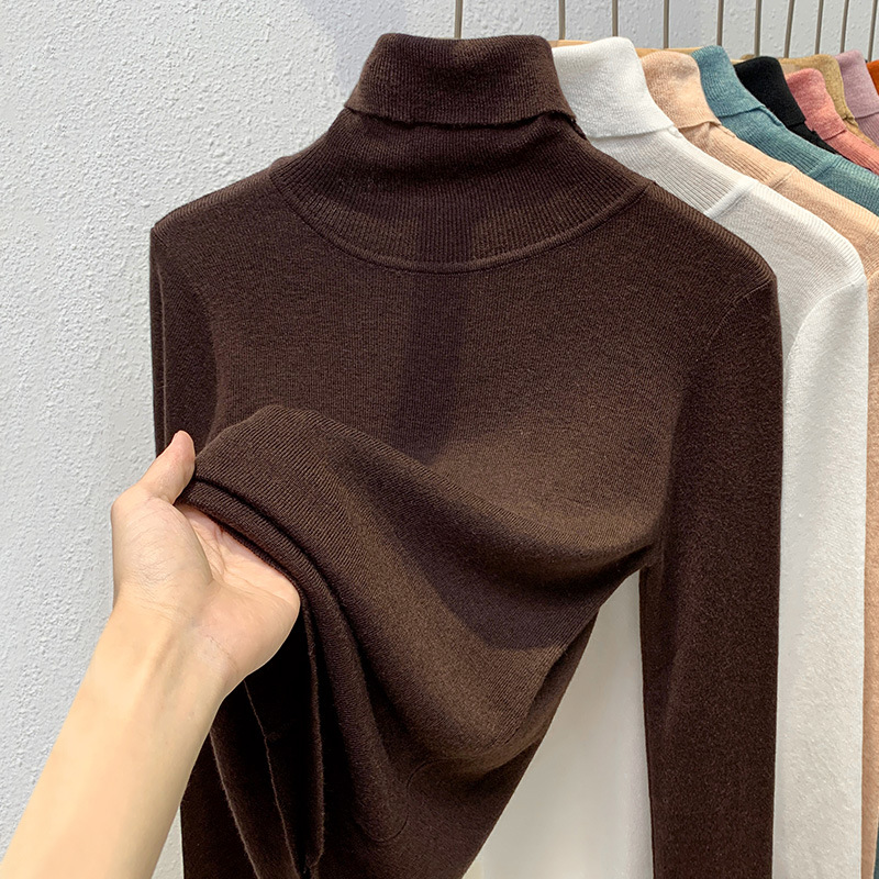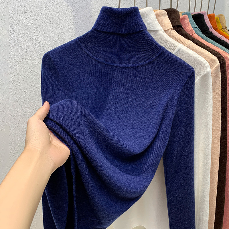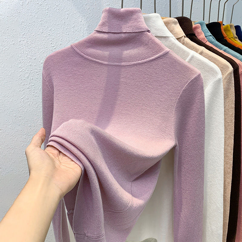 니트 베이스 셔츠 여성용 2024년 신상 여성복 고급스러운 터틀넥 풀오버 울 스웨터 신축성 있는 이너웨어 허리 조절 탑스토어 가기