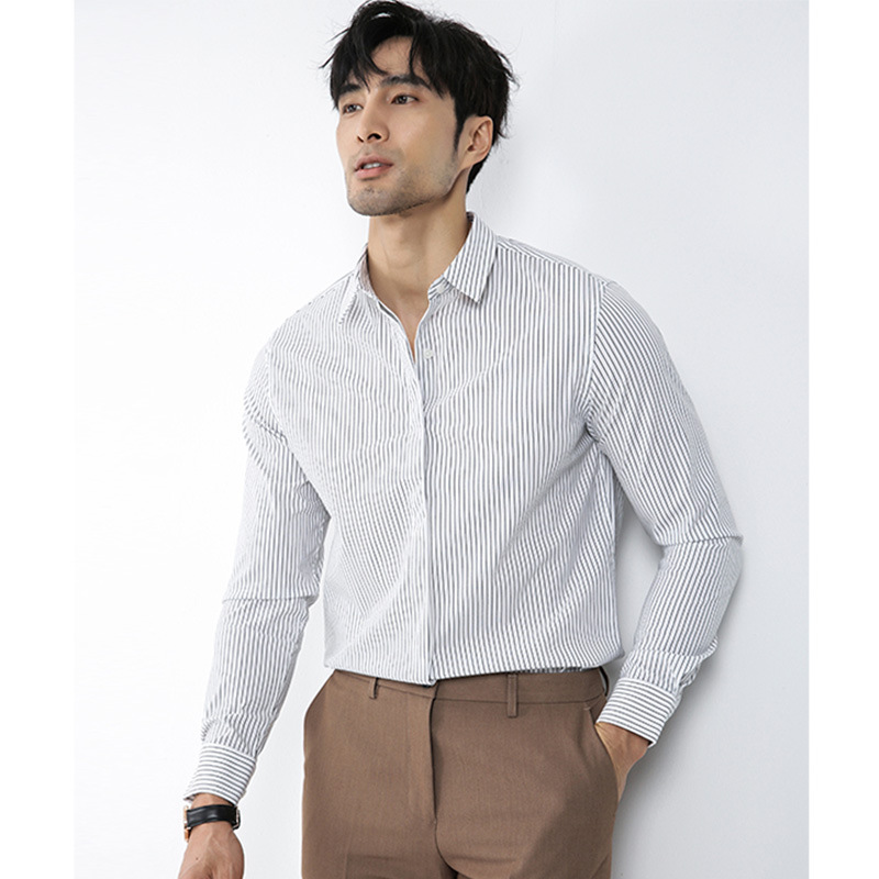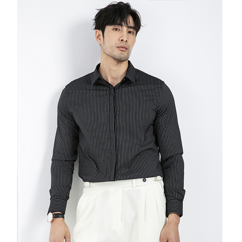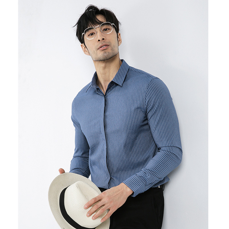 봄과 가을 디자인 감각 고급 비즈니스 캐주얼 셔츠 남자의 질감 스트라이프 전문 원피스 비 다림질 긴팔 셔츠스토어 가기