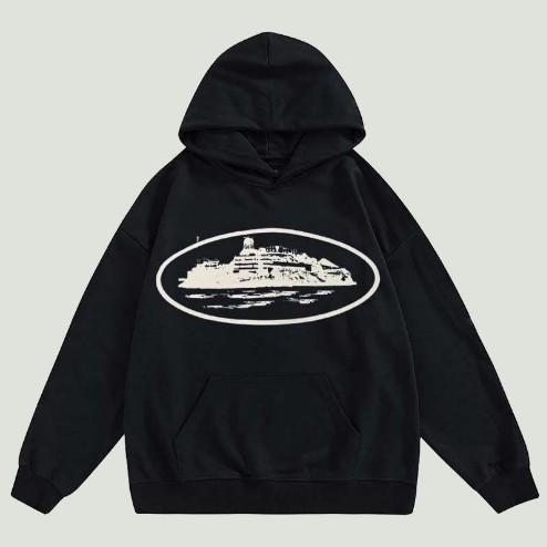 2023 국경 간 인기 패션 브랜드 Corteiz Devil Island 인쇄 후드 하이 스트리트 남성용 트렌디 후드스토어 가기