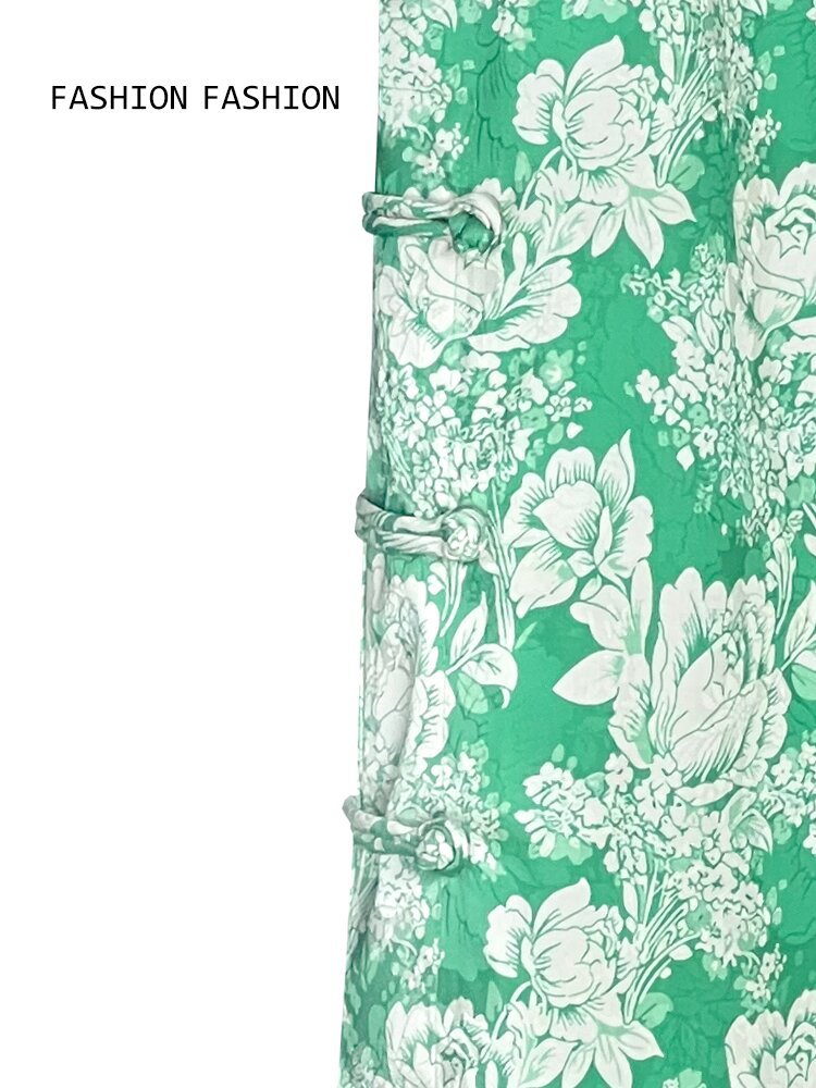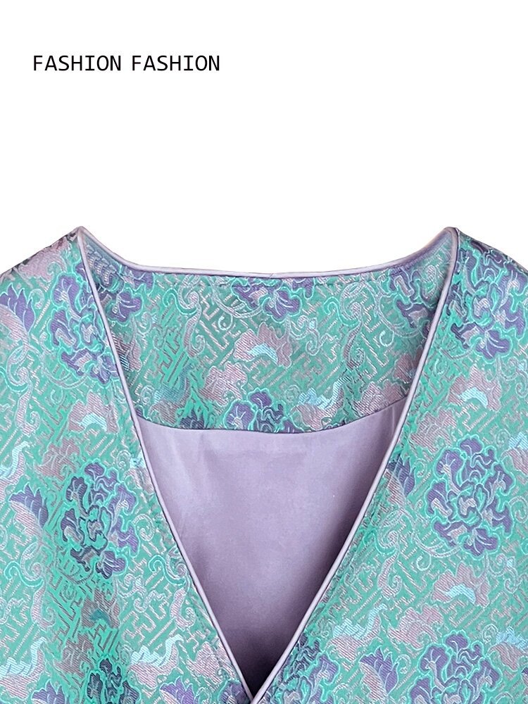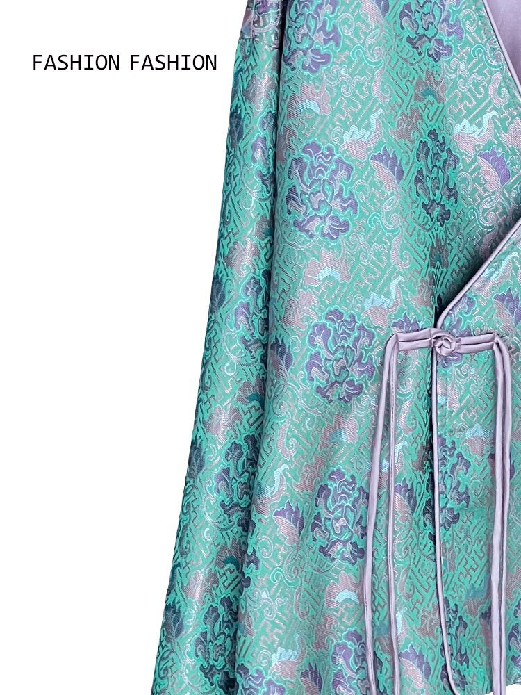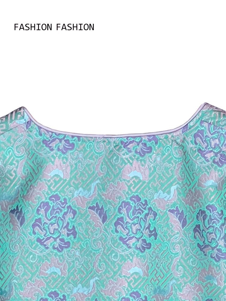 [제작 중] 2023 중국 차 의류 여성 국가 스타일 자카드 새틴 셔츠 원피스 세트