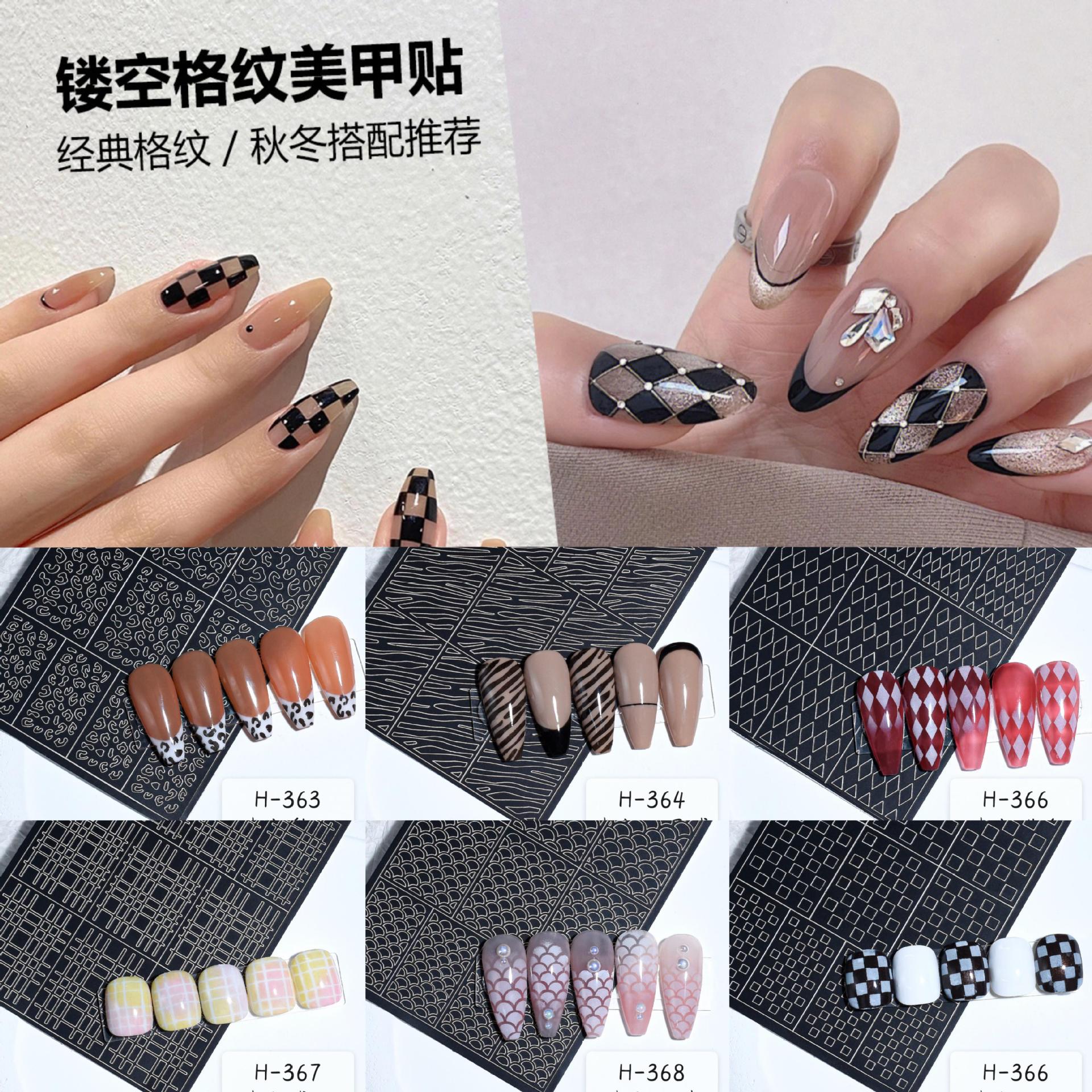 속이 빈 네일 아트 스티커 스프레이 페인팅 템플릿 프랑스 네일 스티커 라인 격자 표범 패턴 불규칙한 스누프 패턴