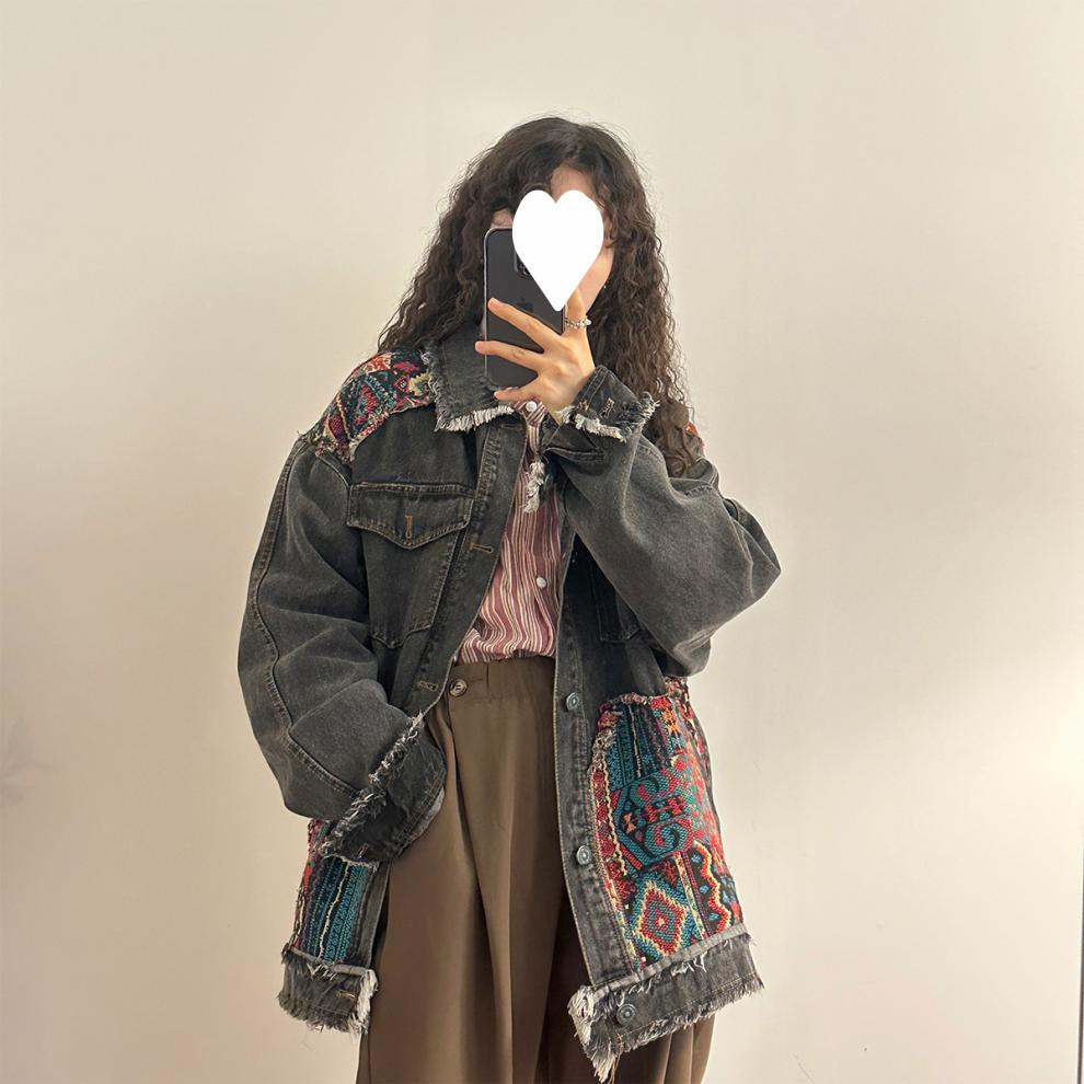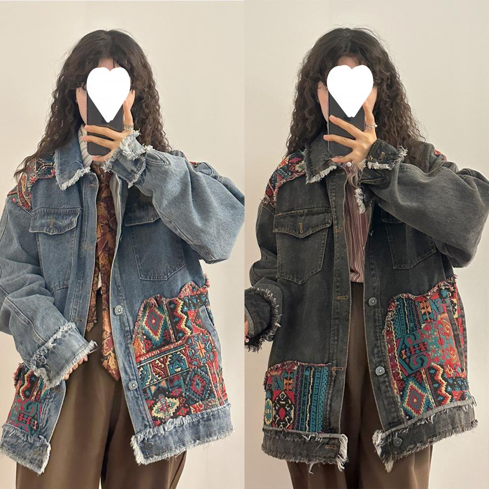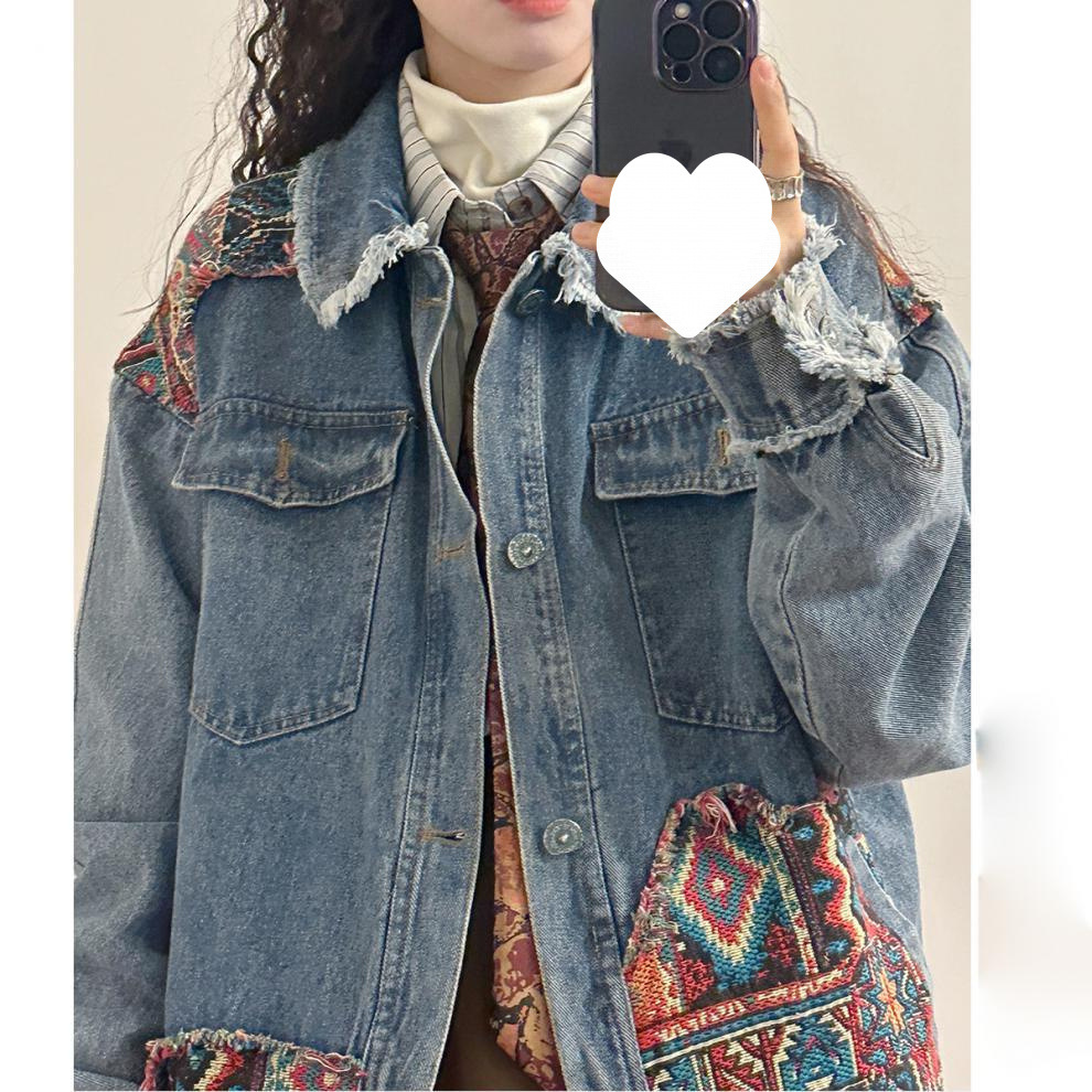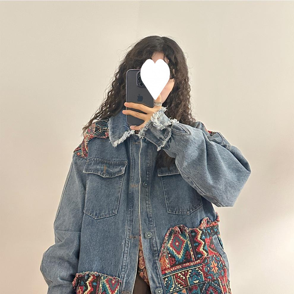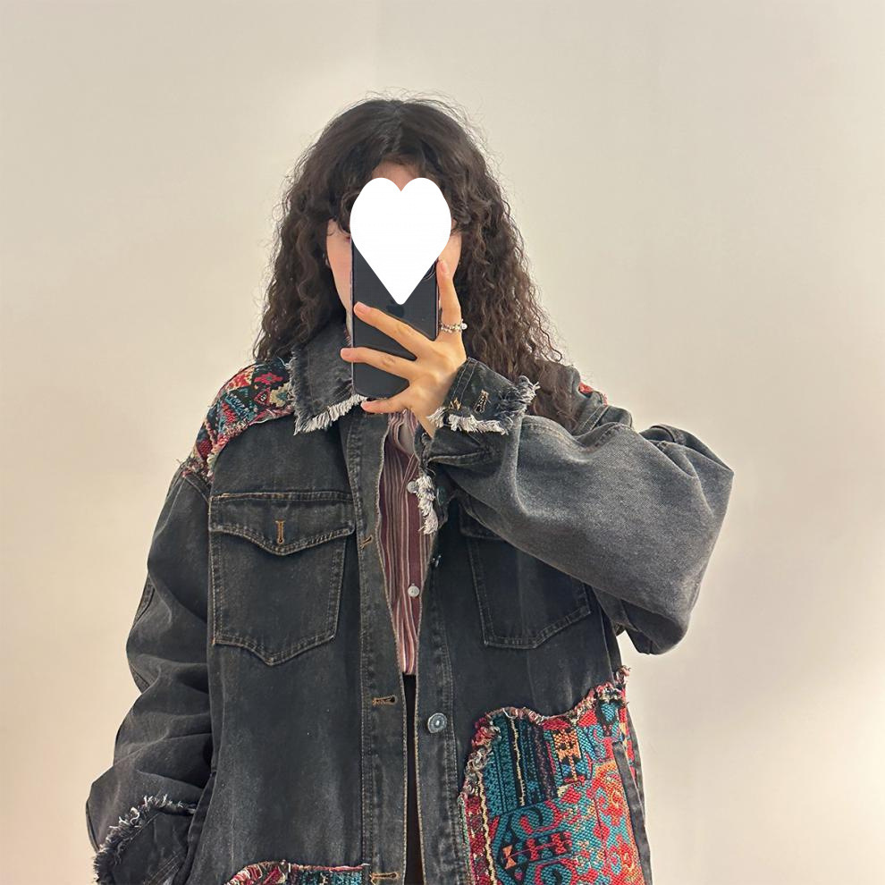 트렌디 한 브랜드 스트리트 미국 복고풍 에스닉 스타일 커플의 데님 재킷 여자의 2023 봄과 가을 바느질 워싱 작업 재킷스토어 가기