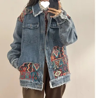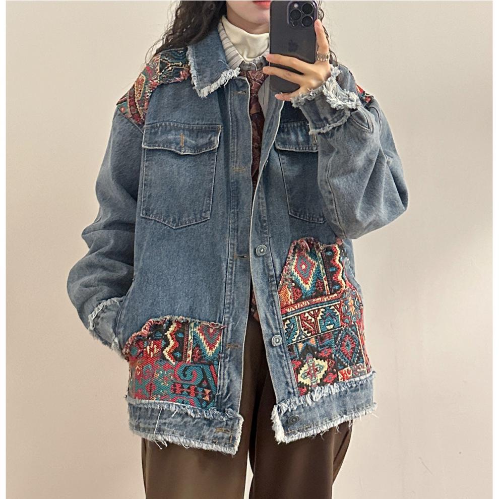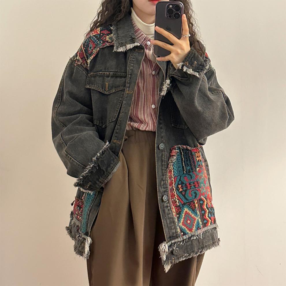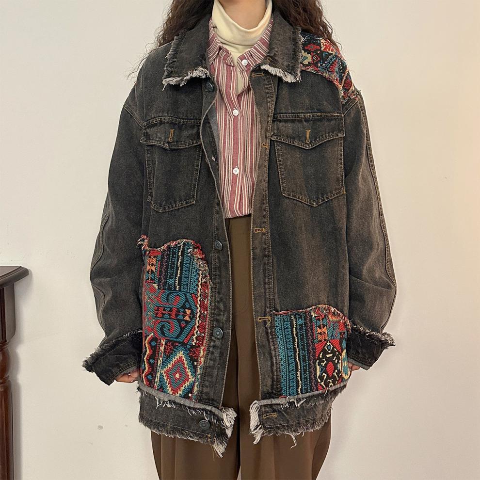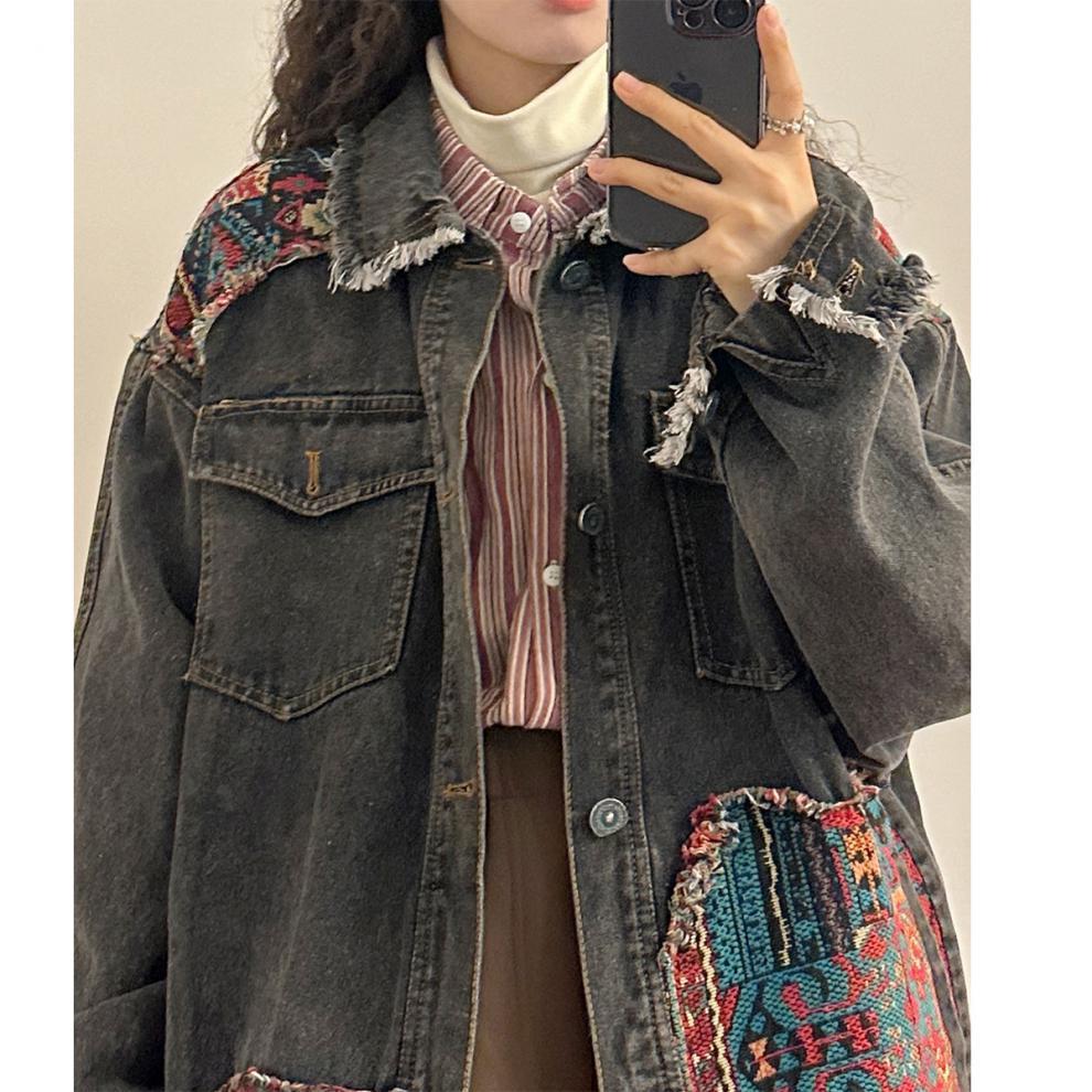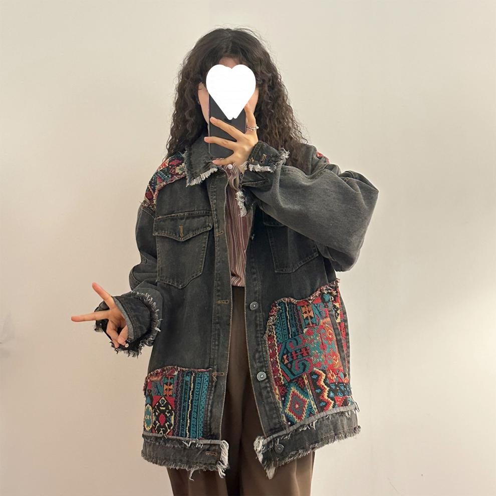 트렌디 한 브랜드 스트리트 미국 복고풍 에스닉 스타일 커플의 데님 재킷 여자의 2023 봄과 가을 바느질 워싱 작업 재킷스토어 가기