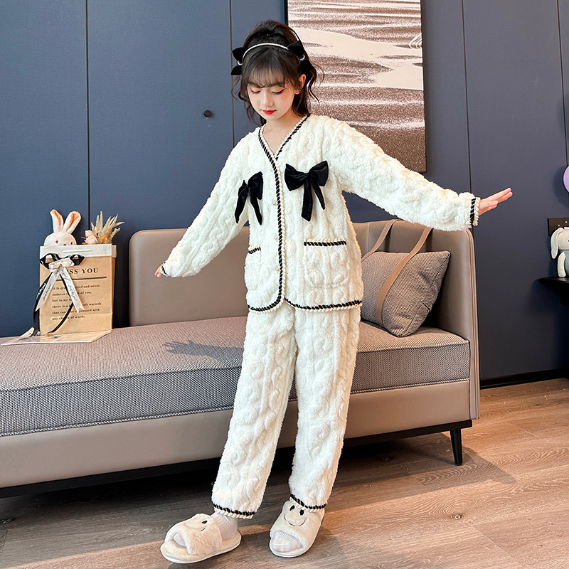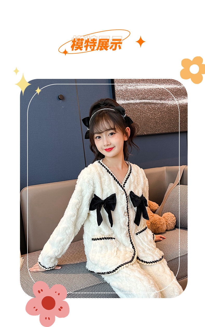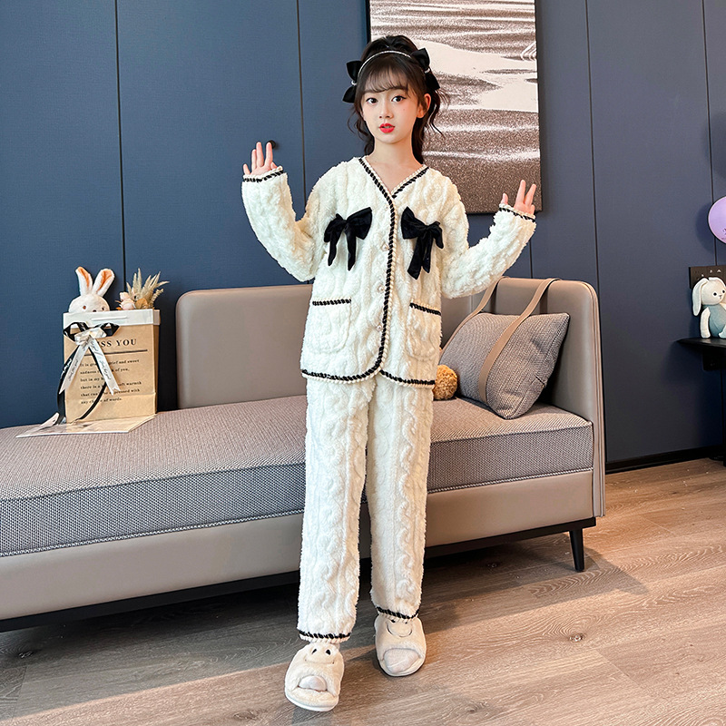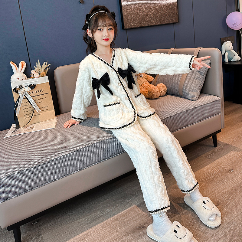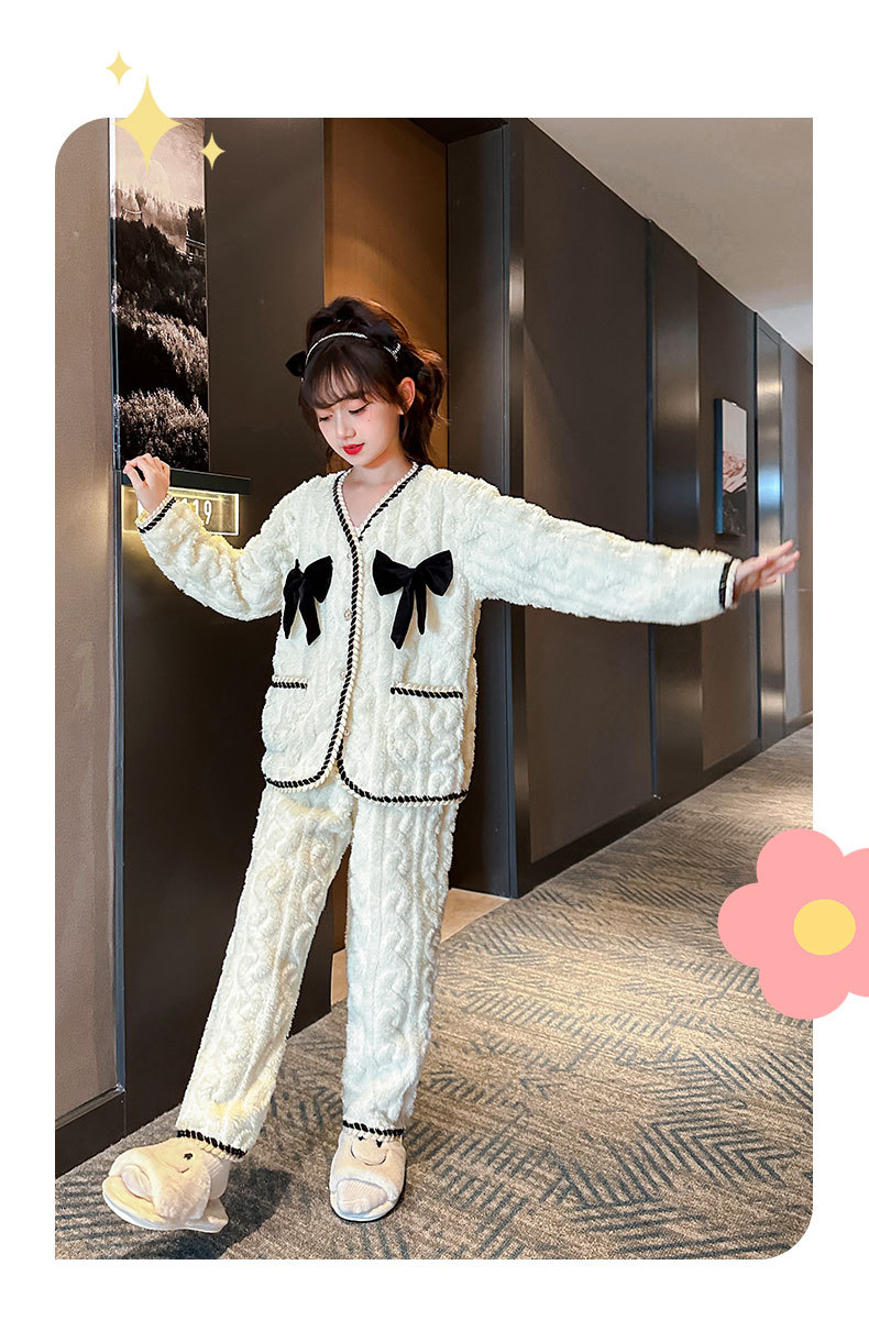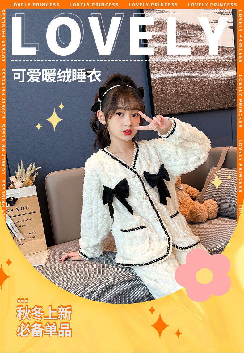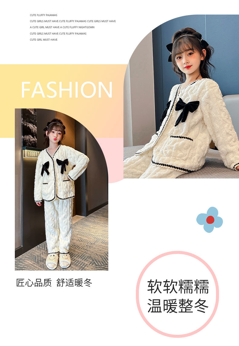 어린이 플란넬 잠옷 겨울 소녀의 산호 양털 두꺼운 세트 어린 소녀의 샤넬 스타일 겨울 가정 의류스토어 가기