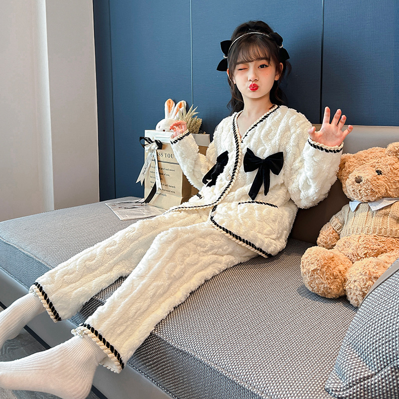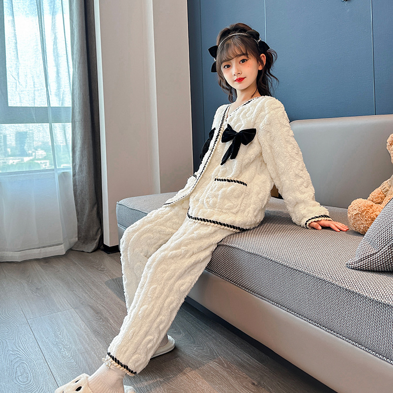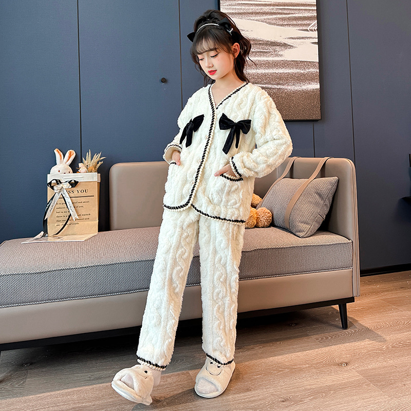 어린이 플란넬 잠옷 겨울 소녀의 산호 양털 두꺼운 세트 어린 소녀의 샤넬 스타일 겨울 가정 의류