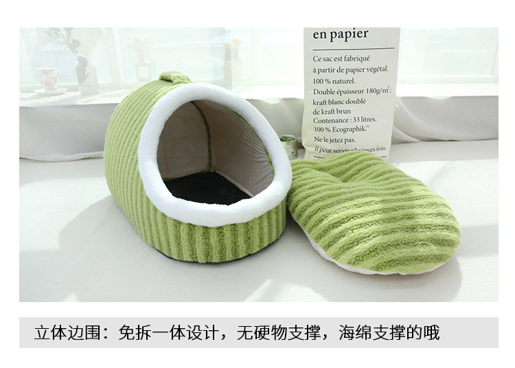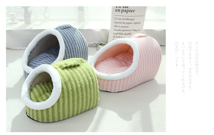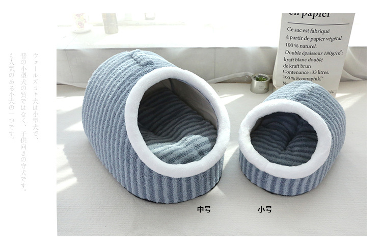가을과 겨울 두꺼운 입체 고양이 둥지 마카롱 스트라이프 더블 쌍 따뜻한 드릴 구멍 개 둥지 그물 붉은 군중 스폰지 개 둥지스토어 가기