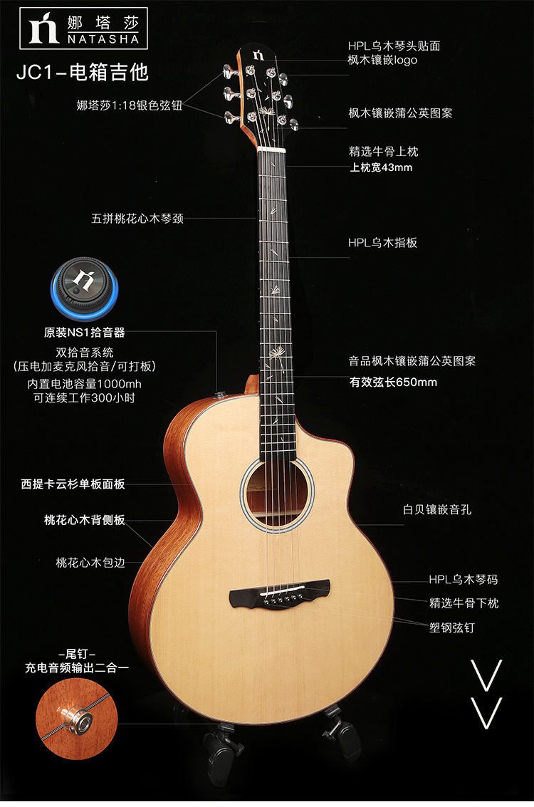 • JC1 밝은 광학 상자 원래 NS1 픽업 (마이크가있는 듀얼 픽업) 41 인치