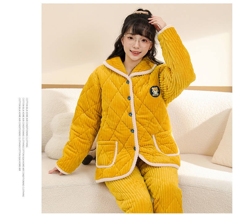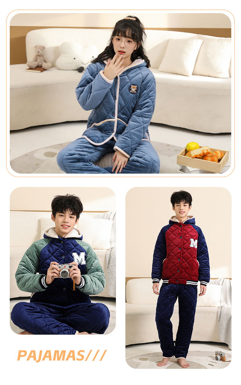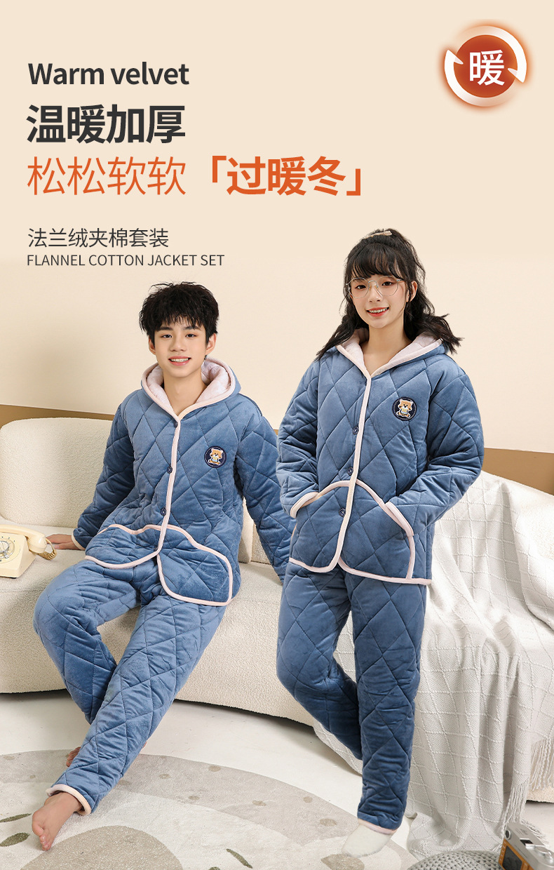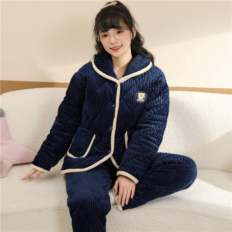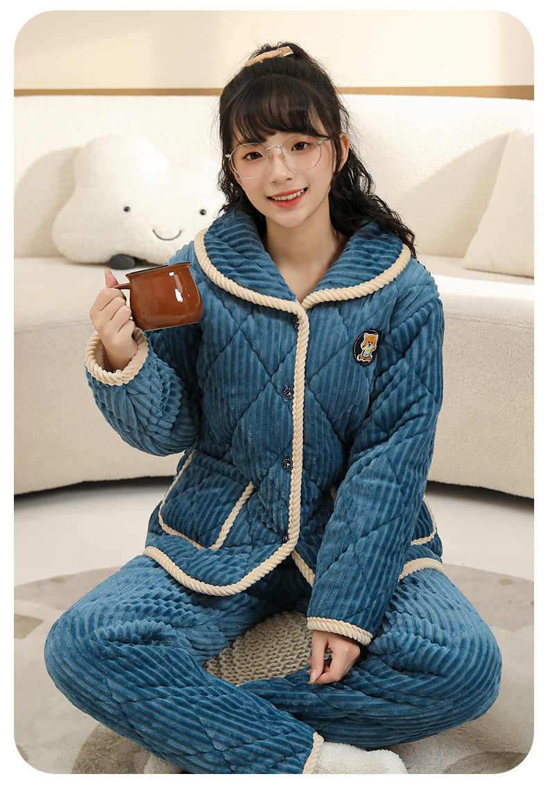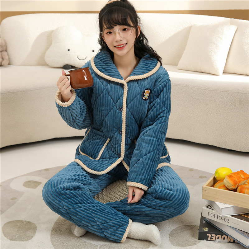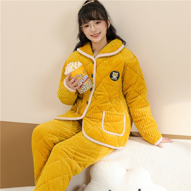 산호 양털 겨울 잠옷 여자의 3 층 면 따뜻한 두꺼운 기모 만화 귀여운 어린 소녀 가정 옷 세트스토어 가기