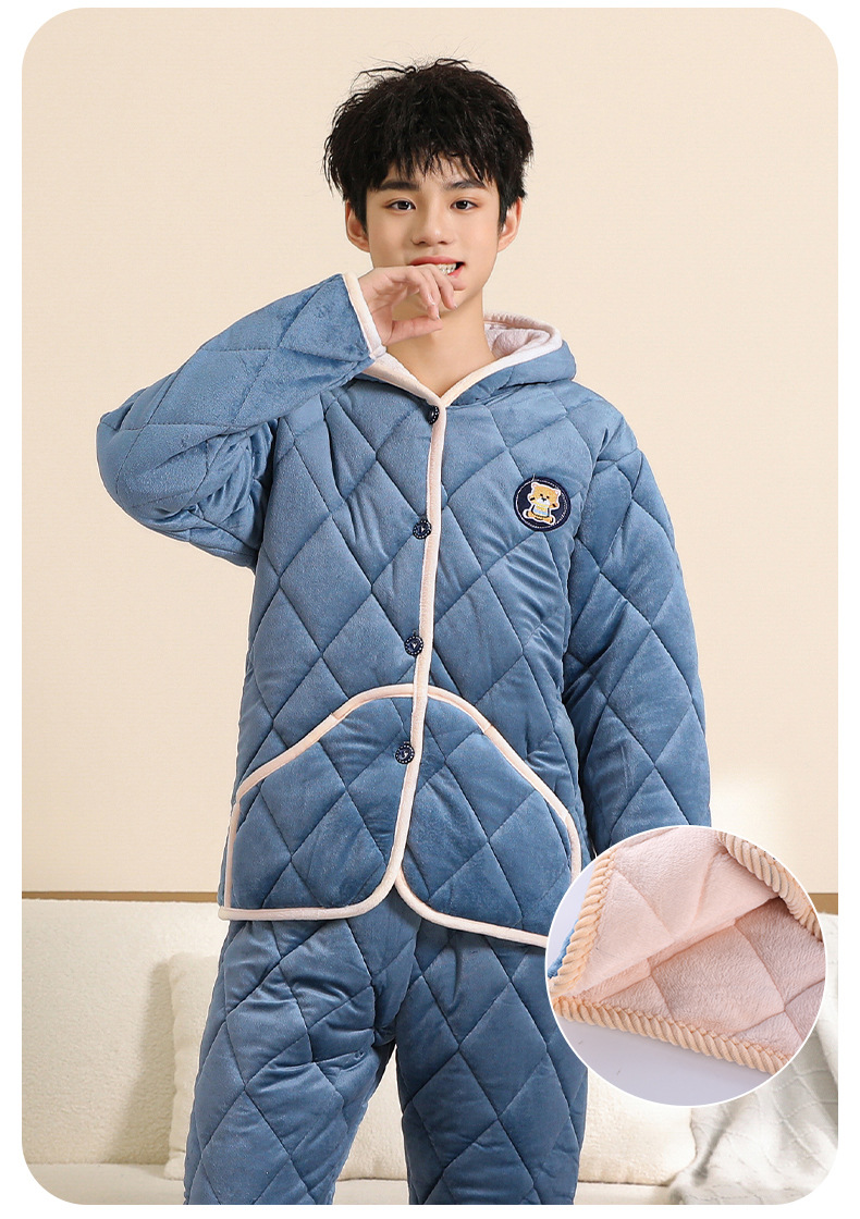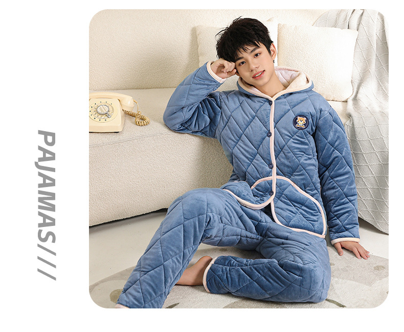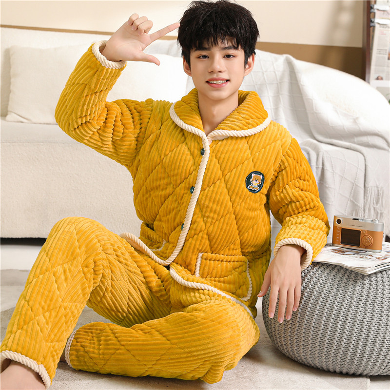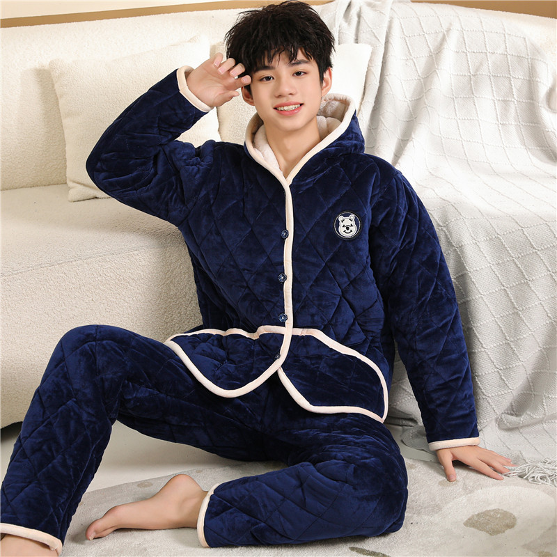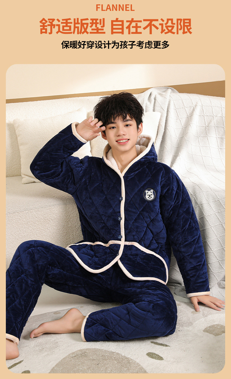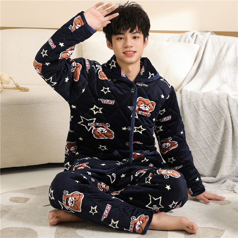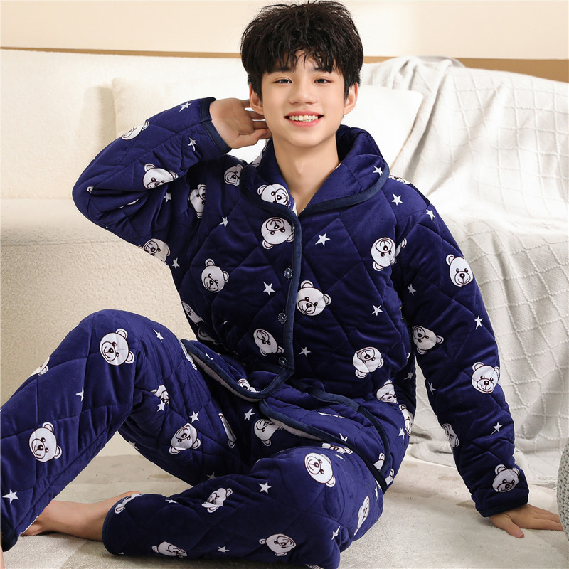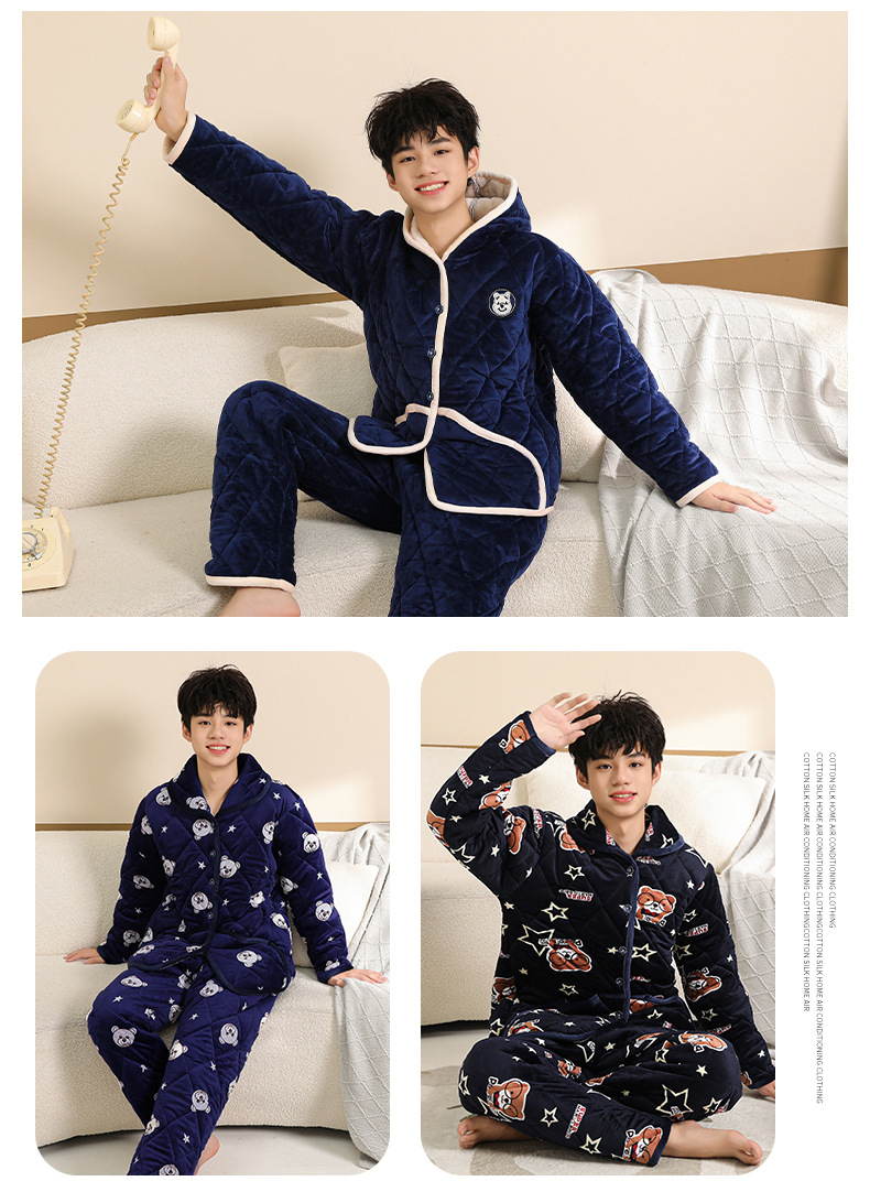 산호 양털 겨울 잠옷 여자의 3 층 면 따뜻한 두꺼운 기모 만화 귀여운 어린 소녀 가정 옷 세트스토어 가기