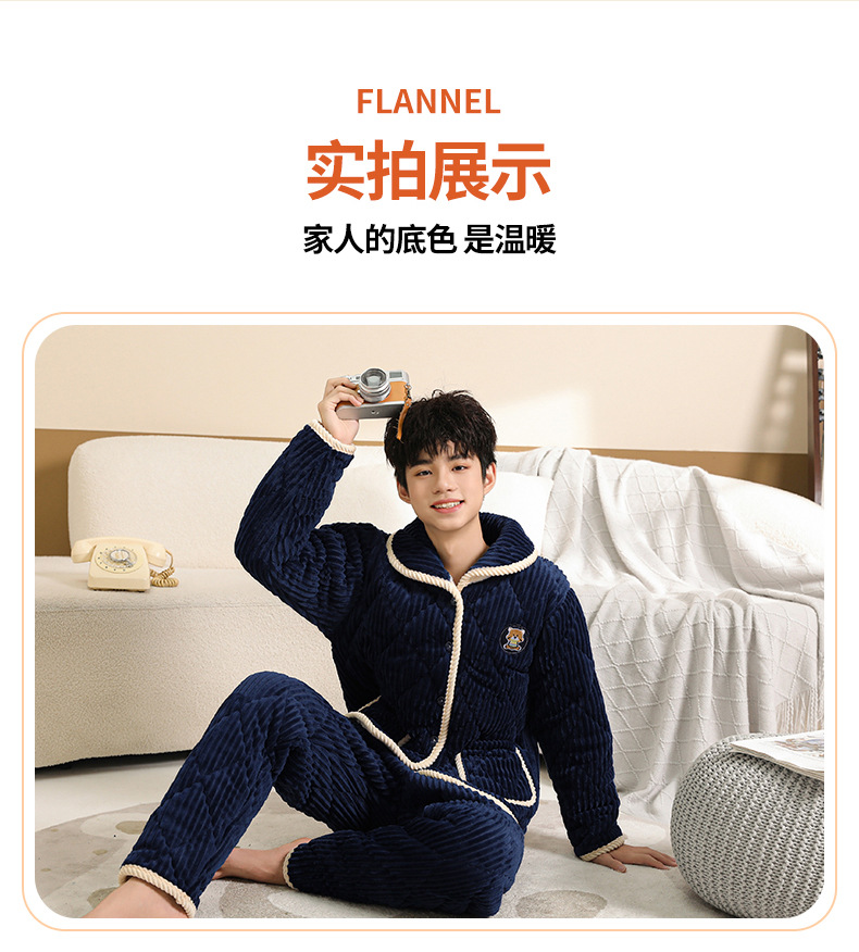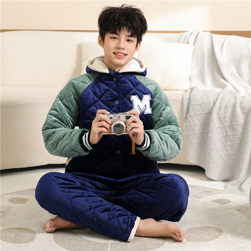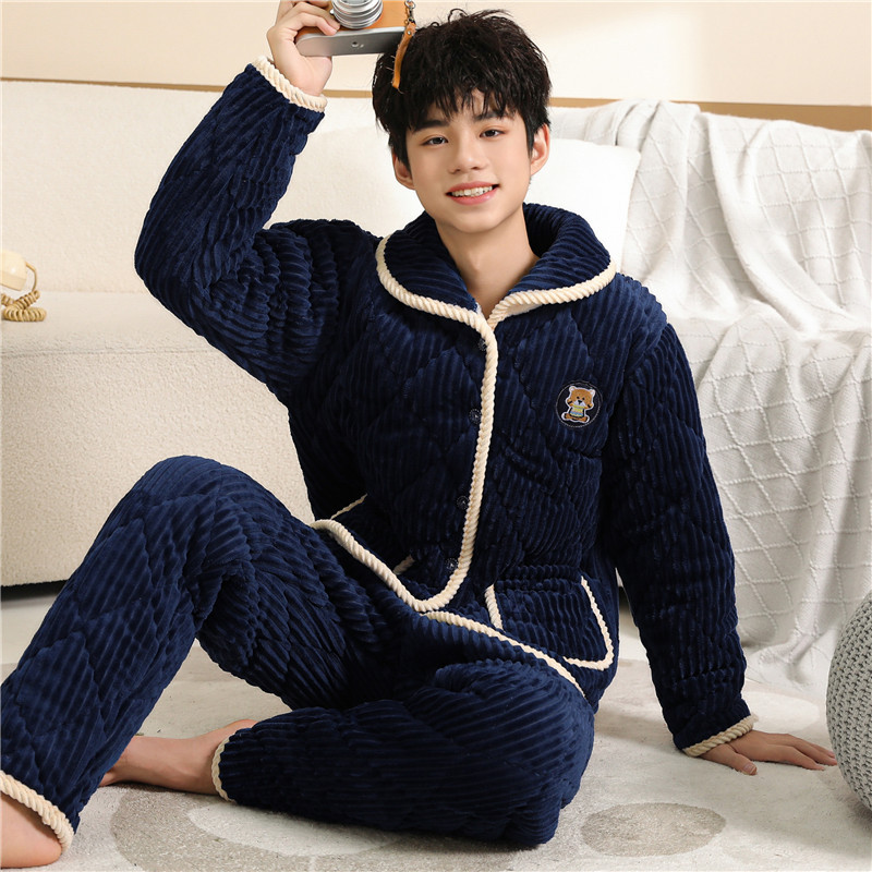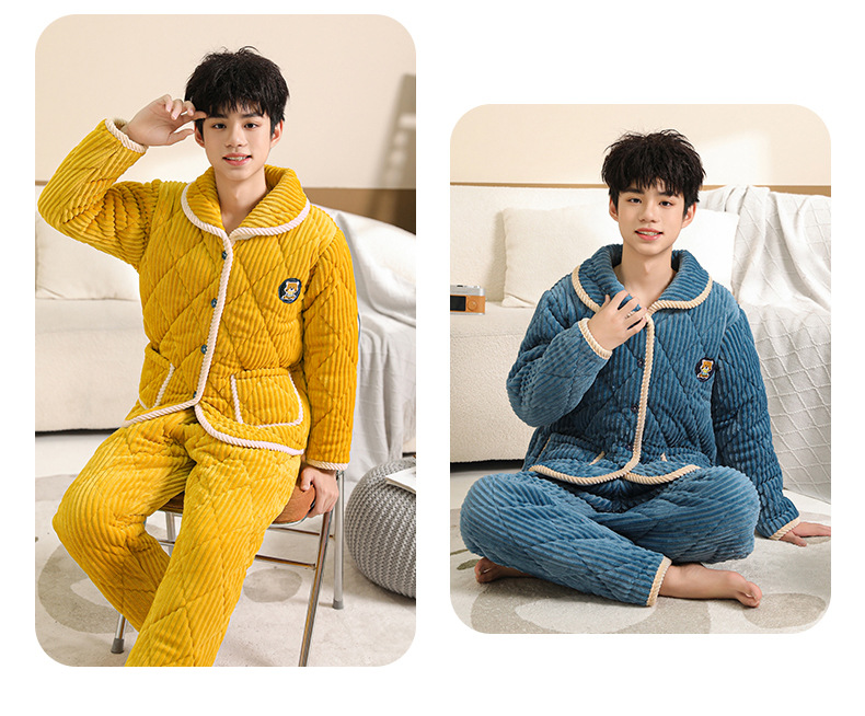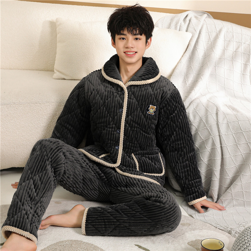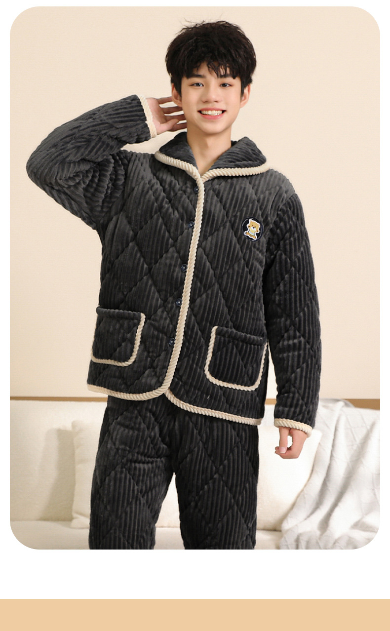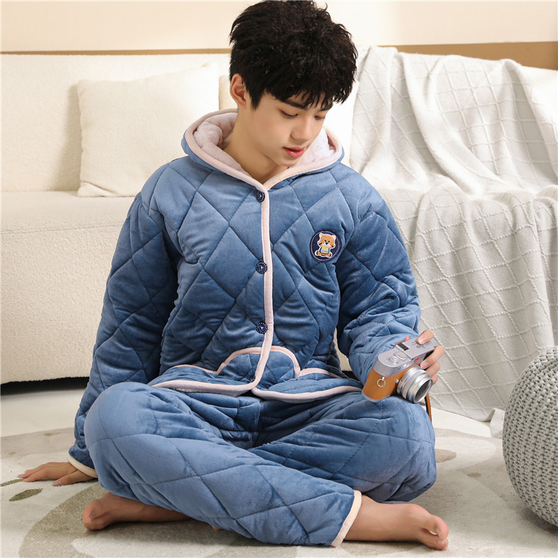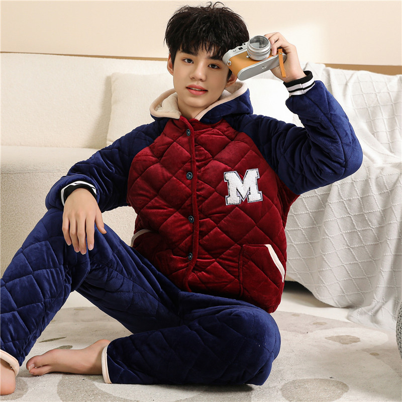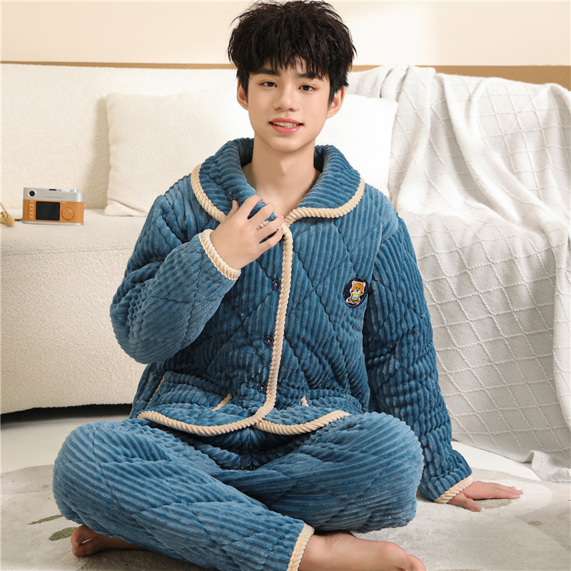 산호 양털 겨울 잠옷 여자의 3 층 면 따뜻한 두꺼운 기모 만화 귀여운 어린 소녀 가정 옷 세트스토어 가기
