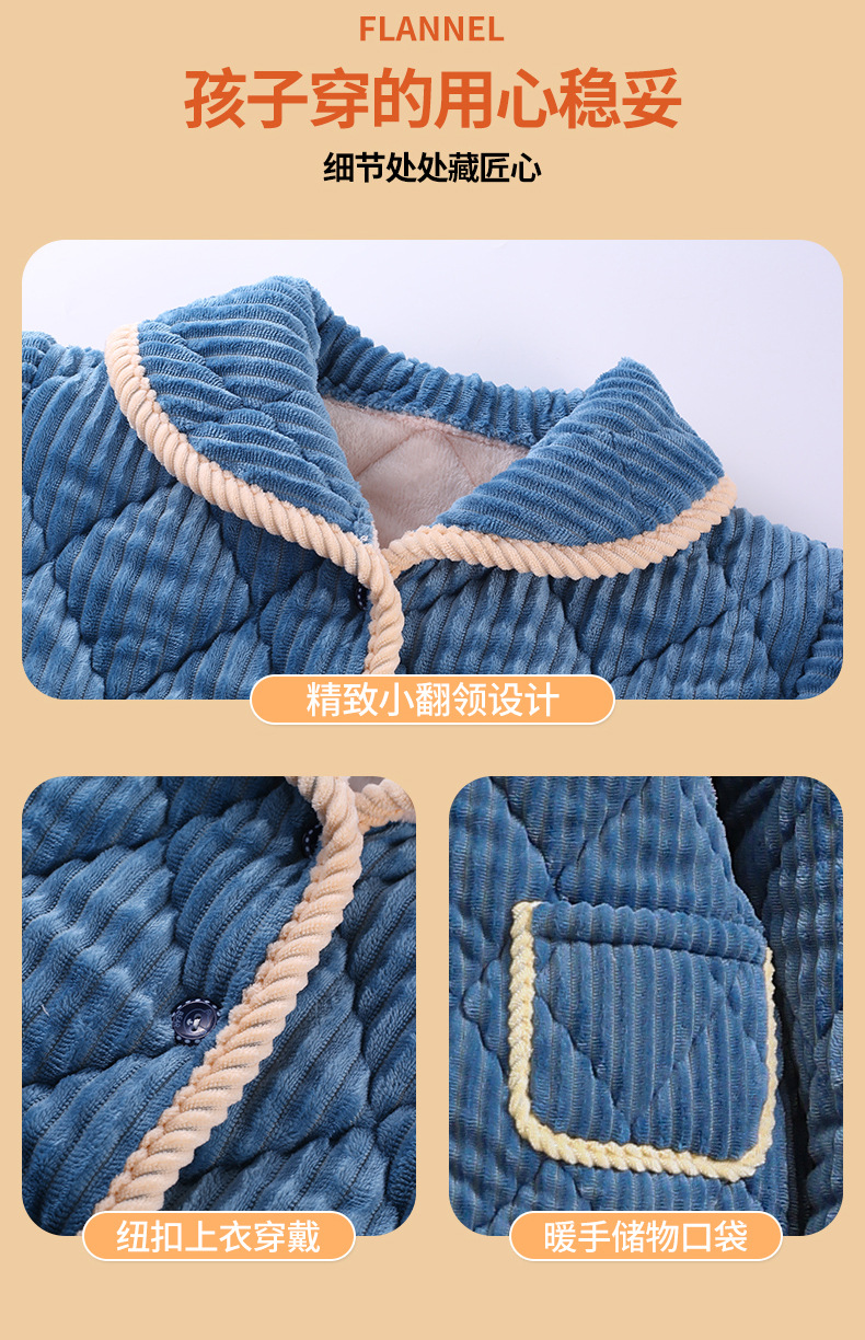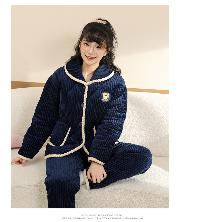 산호 양털 겨울 잠옷 여자의 3 층 면 따뜻한 두꺼운 기모 만화 귀여운 어린 소녀 가정 옷 세트