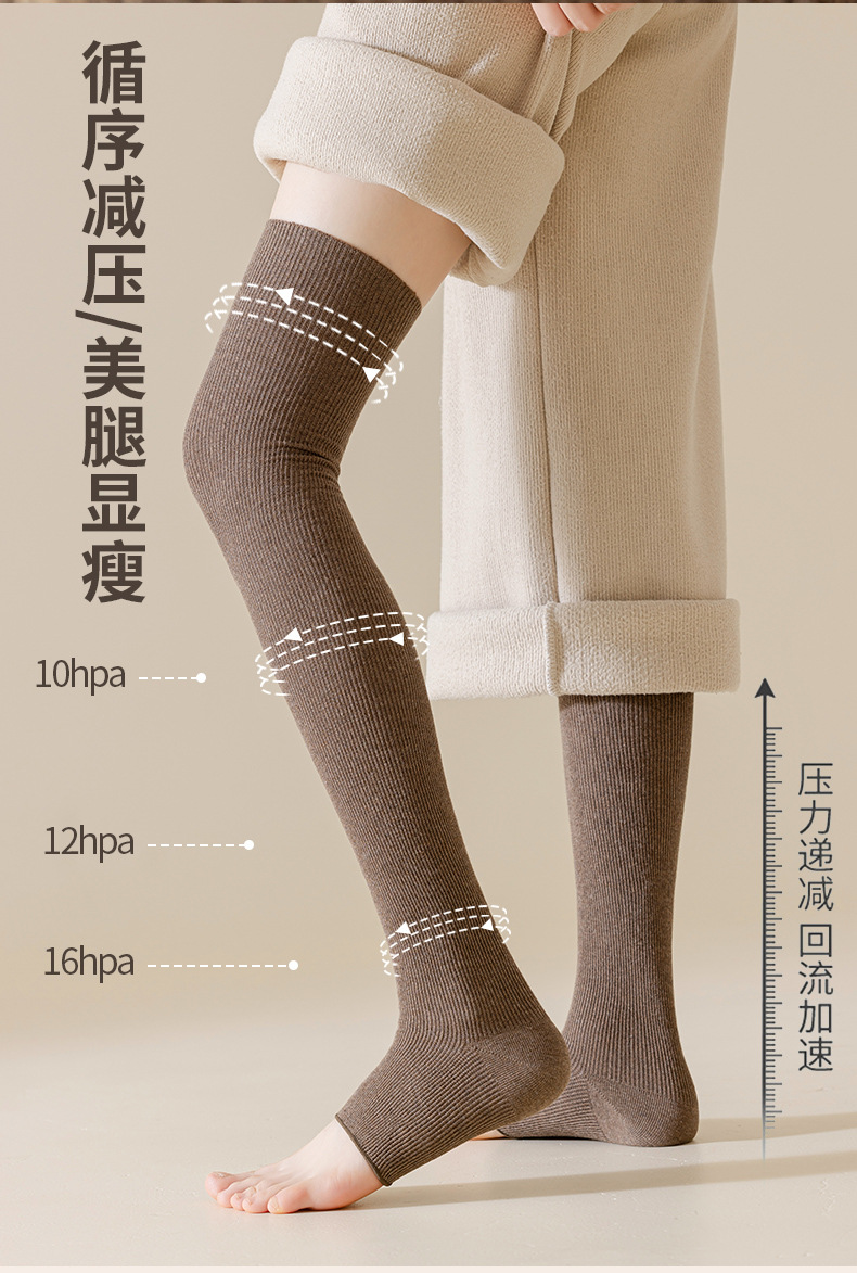 가을과 겨울 무릎 길이 타이트 레그 양말 여성용 스포츠 오픈 토 압축 양말 다리 단색 면 양말 굽힘 방지 스트레치 무릎 양말