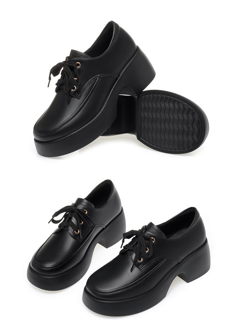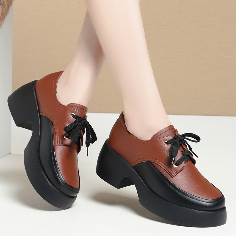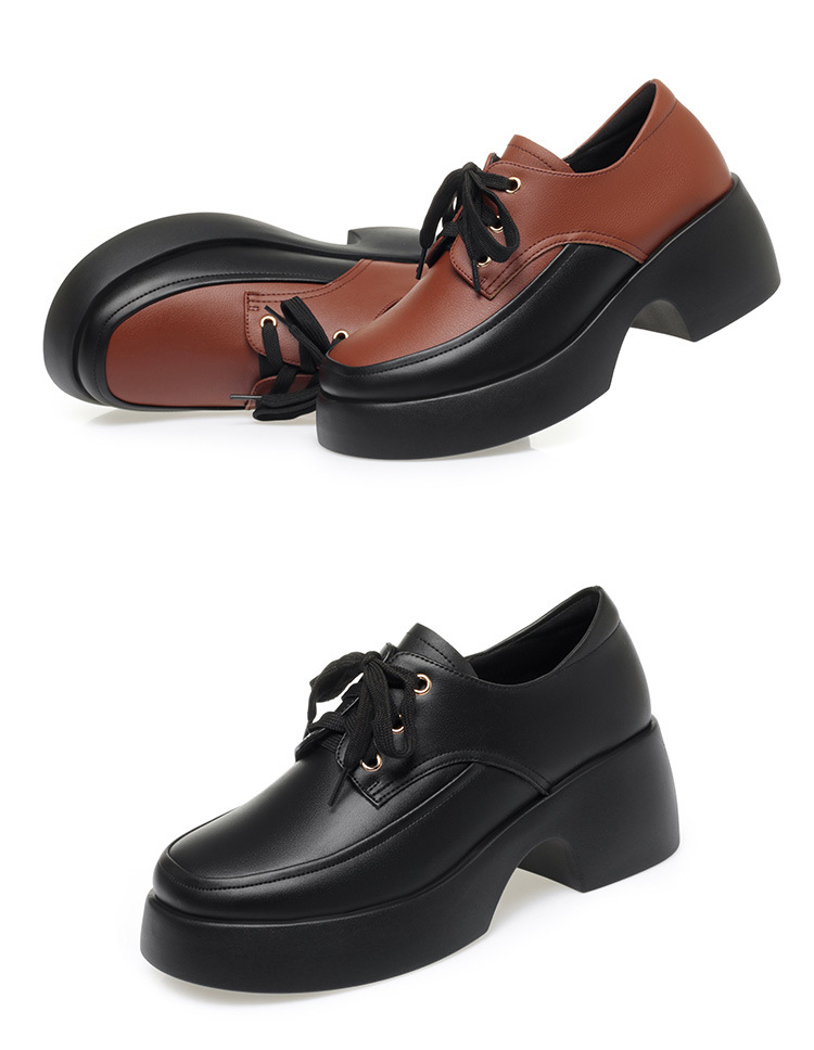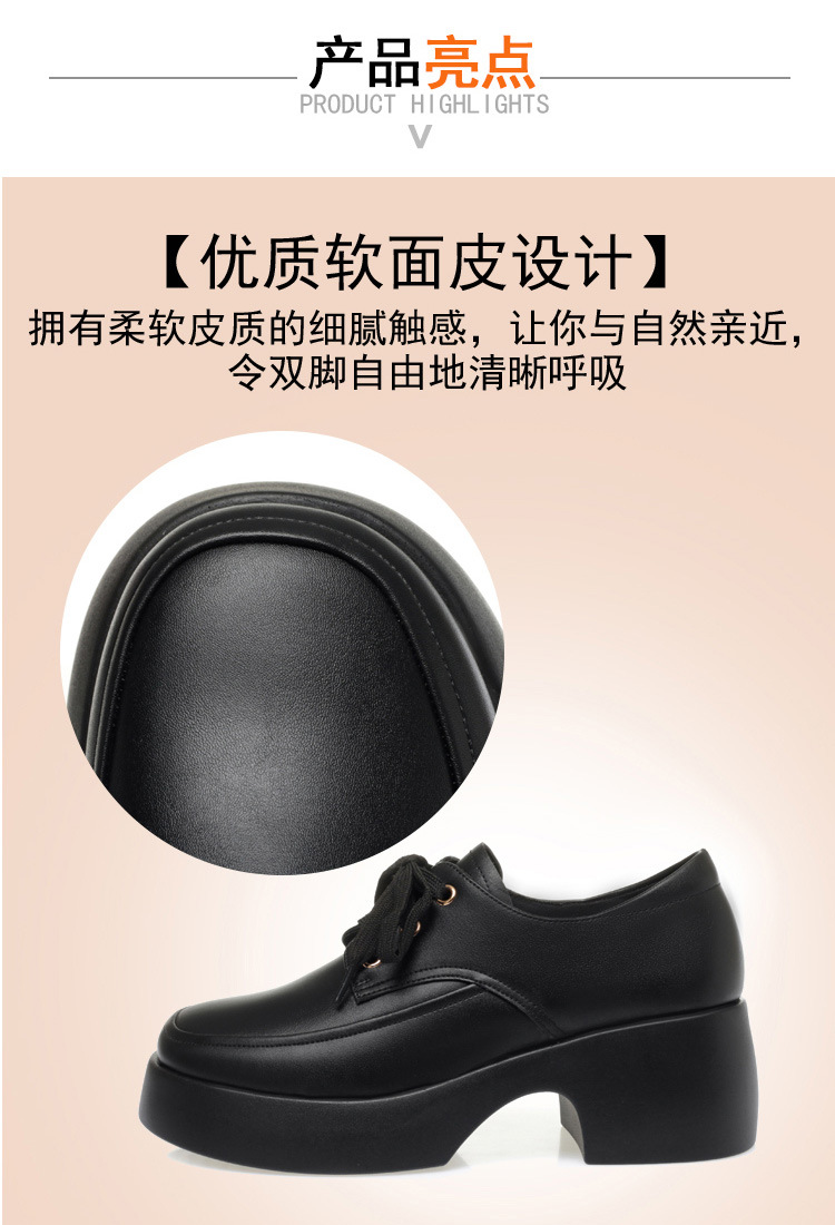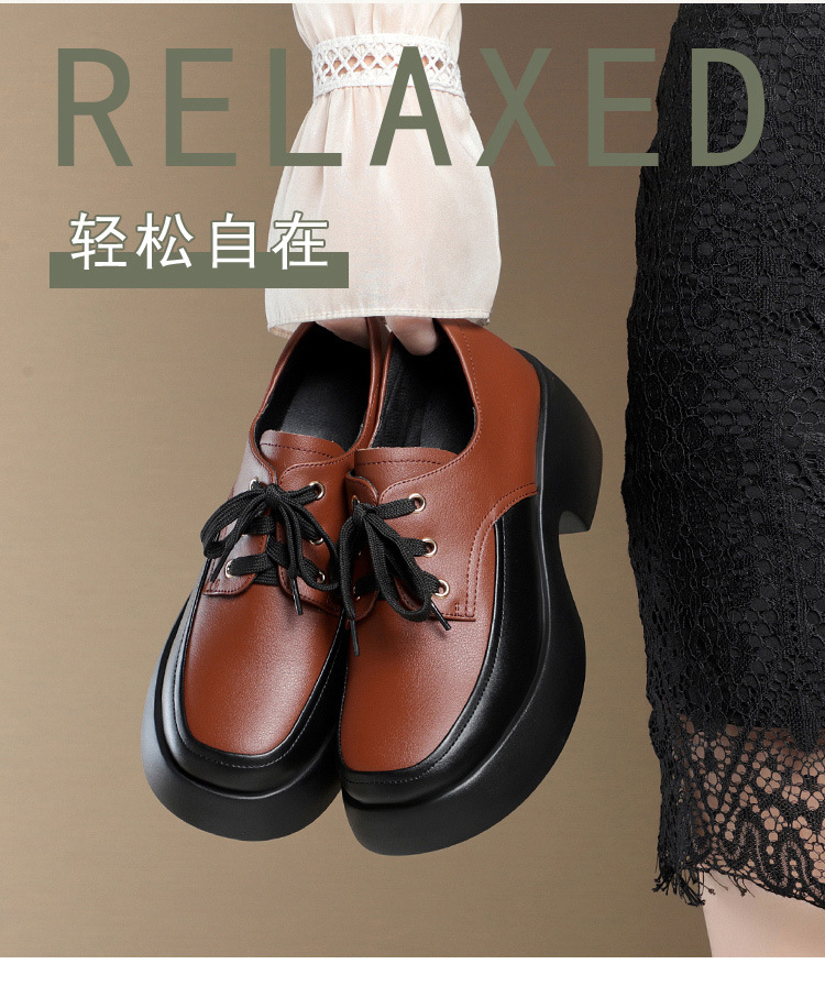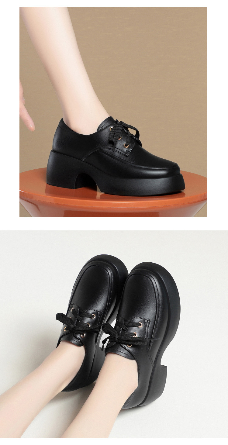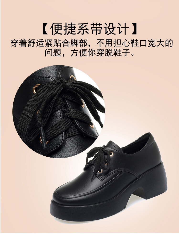 영국 스타일 플랫폼 신발 여성의 2023 새로운 가을 여성 신발 레트로 깊은 입 싱글 레이어 신발 플랫폼 바닥 레이스 업 가죽 신발 jk스토어 가기