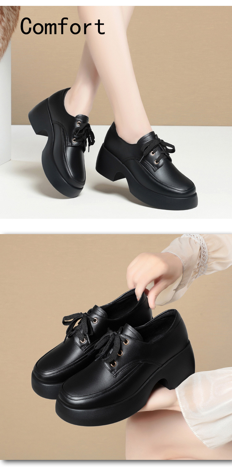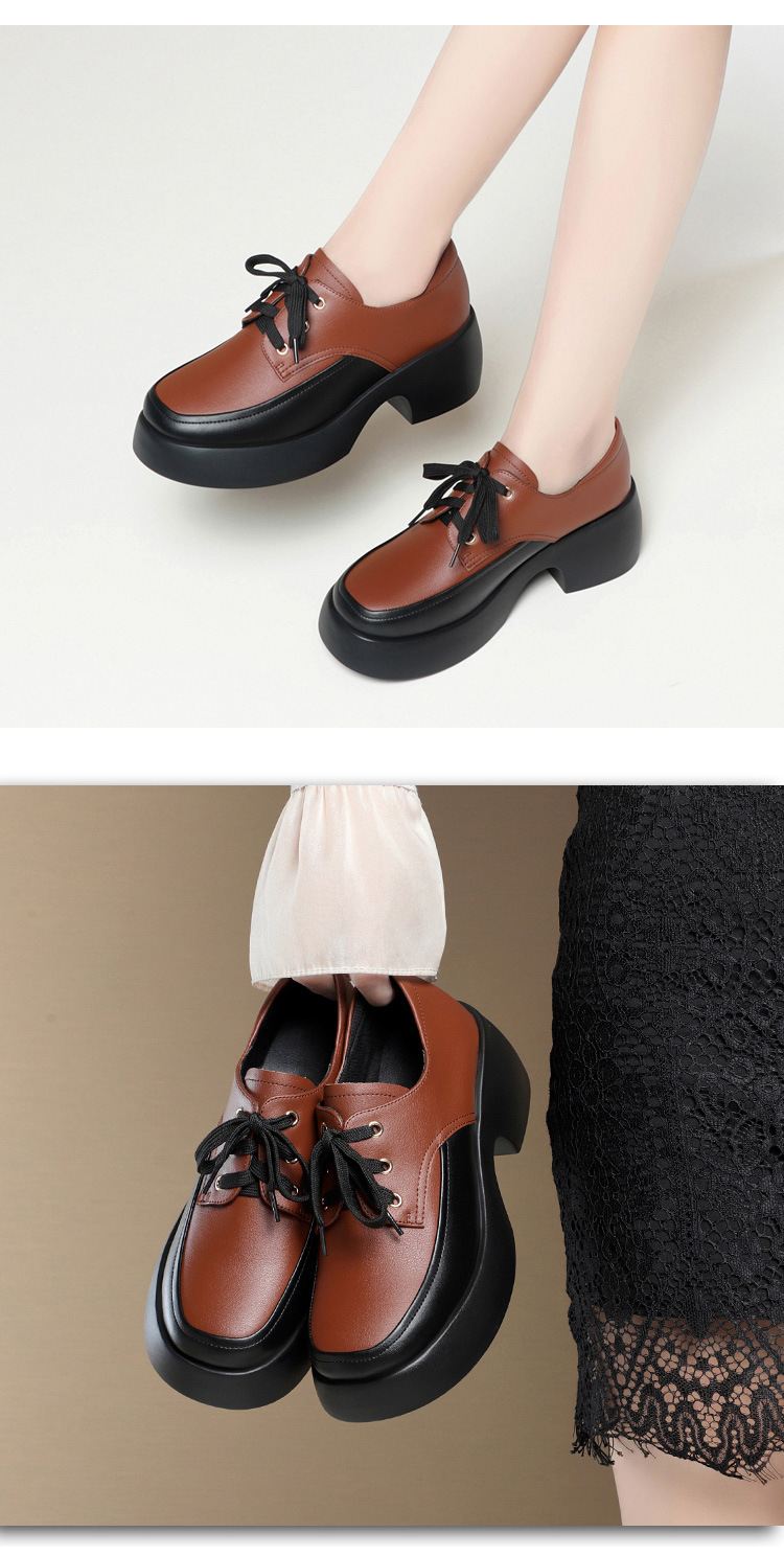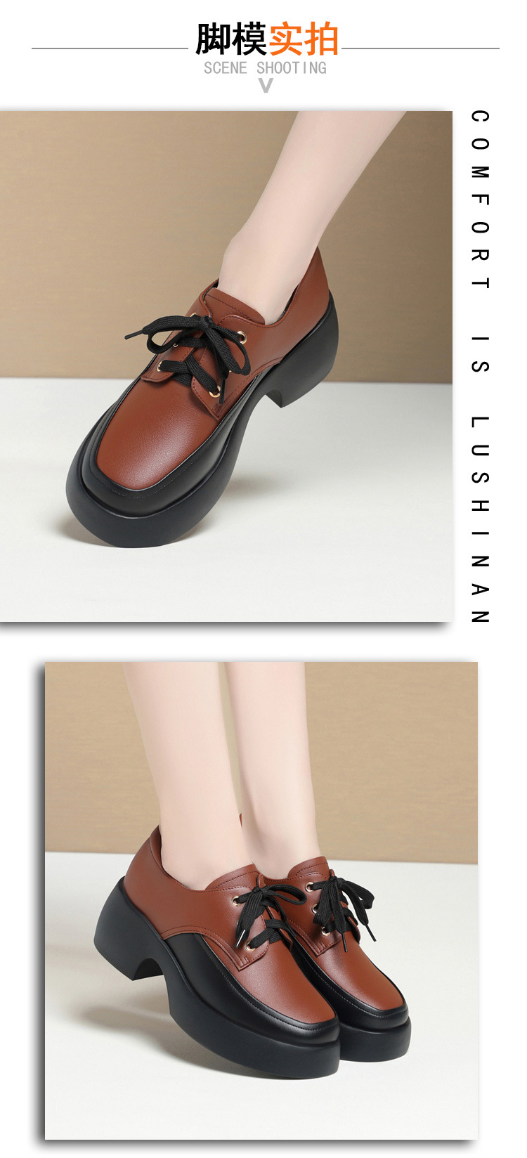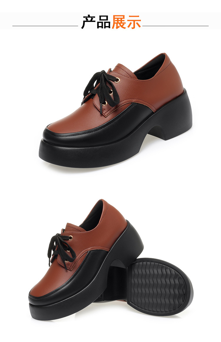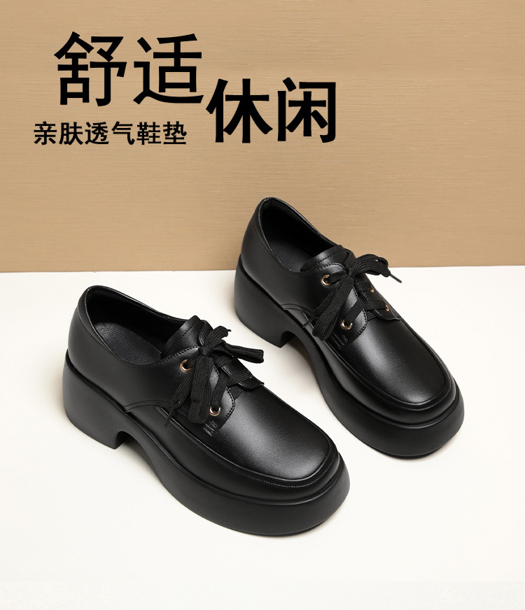 영국 스타일 플랫폼 신발 여성의 2023 새로운 가을 여성 신발 레트로 깊은 입 싱글 레이어 신발 플랫폼 바닥 레이스 업 가죽 신발 jk스토어 가기