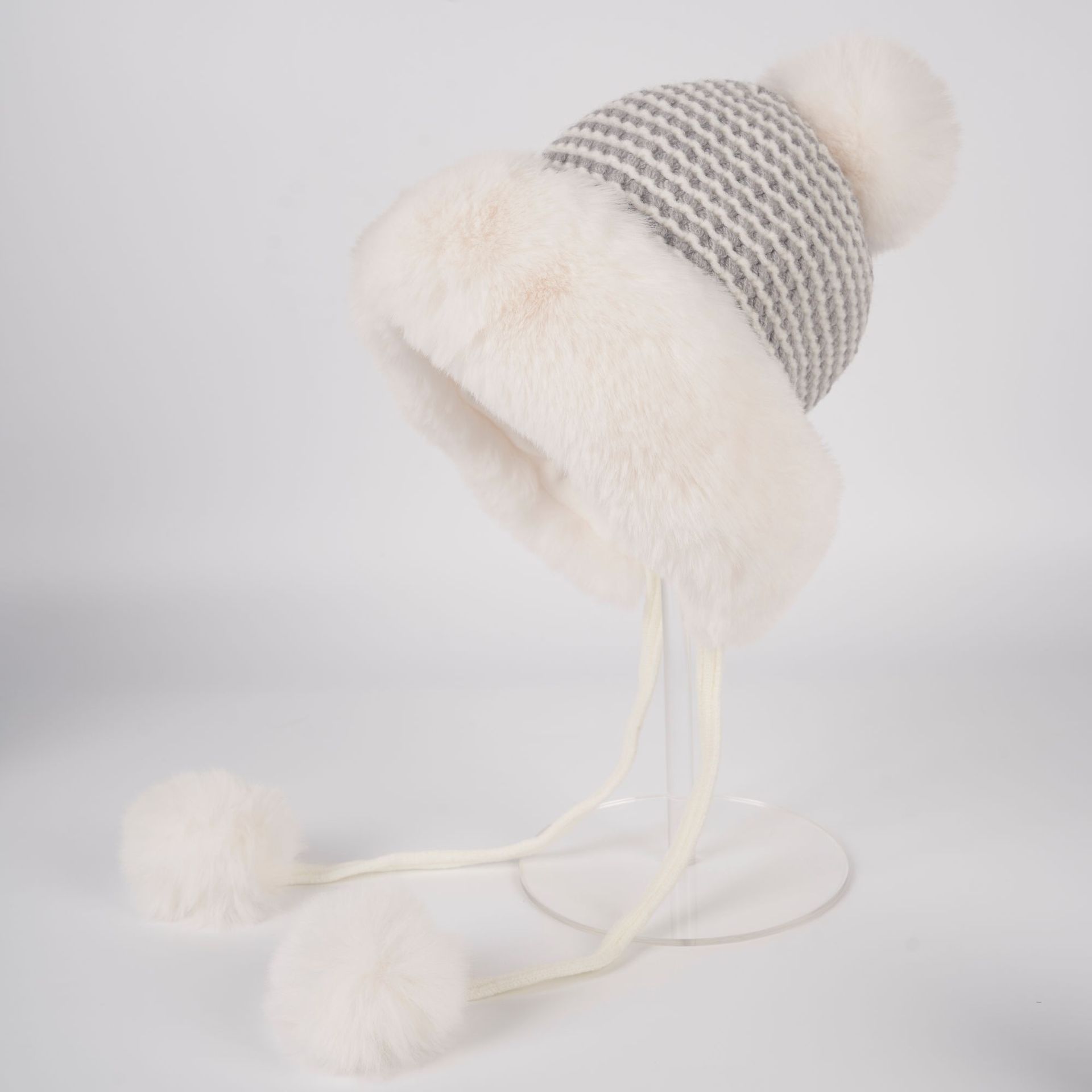• 화이트/트위스트 몽골 플러시 모자