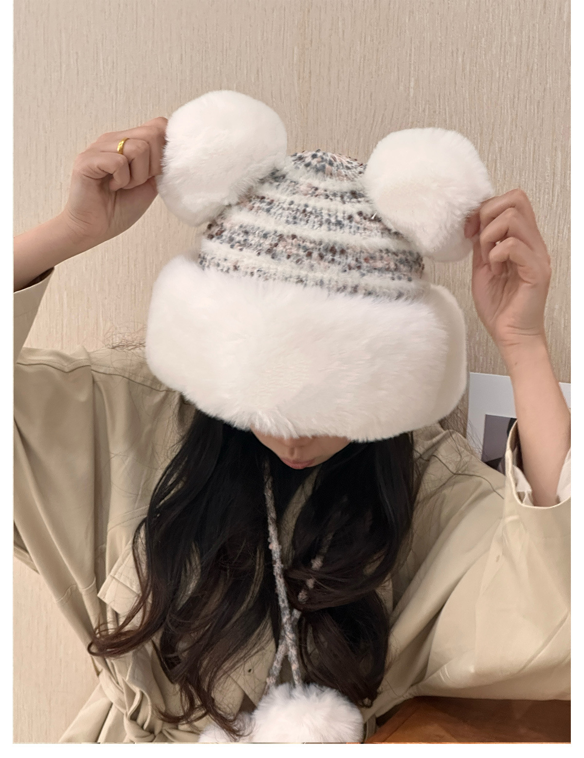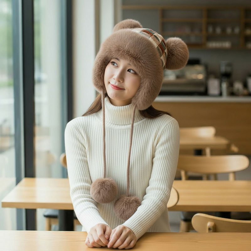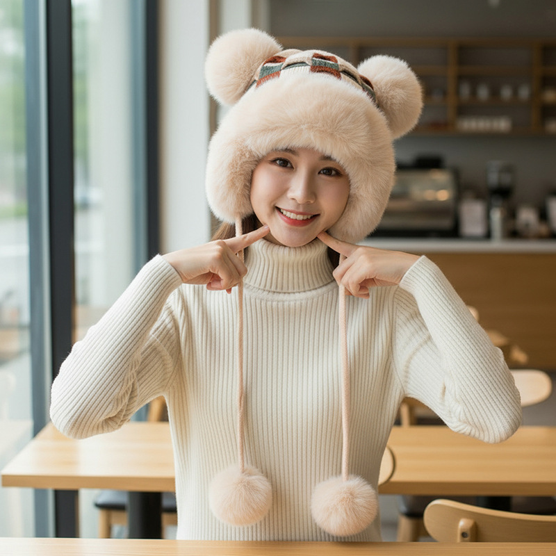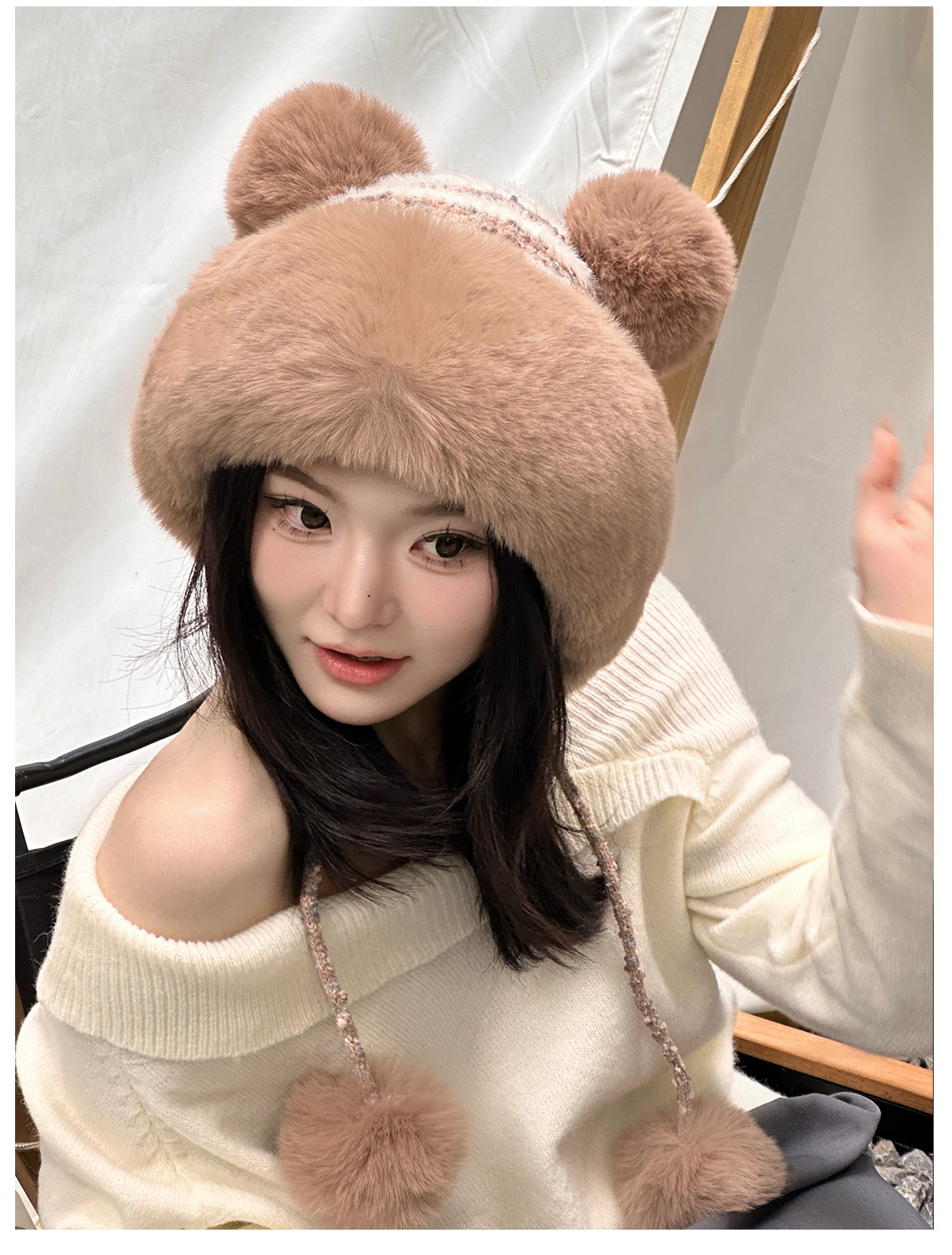 • 베이지/샤오샹펑 플러시 모자