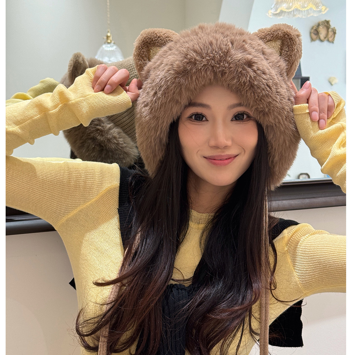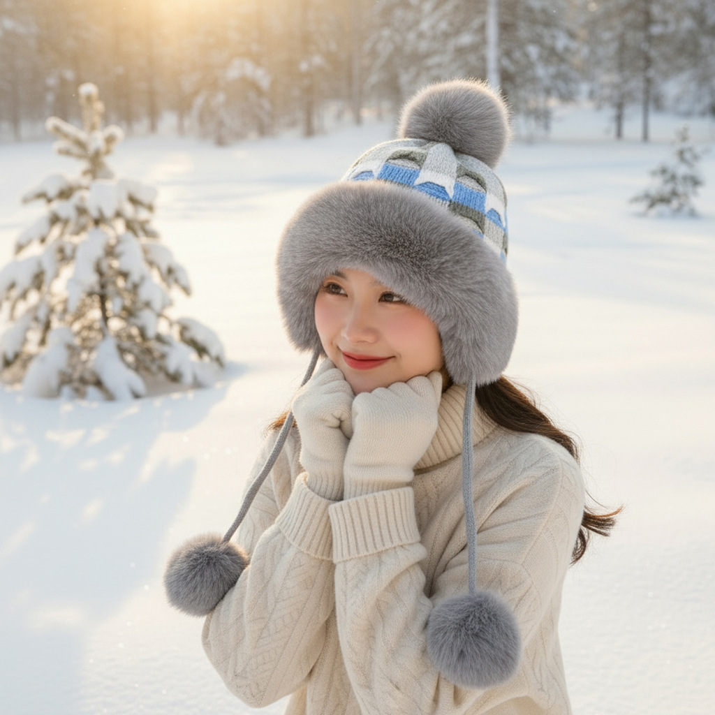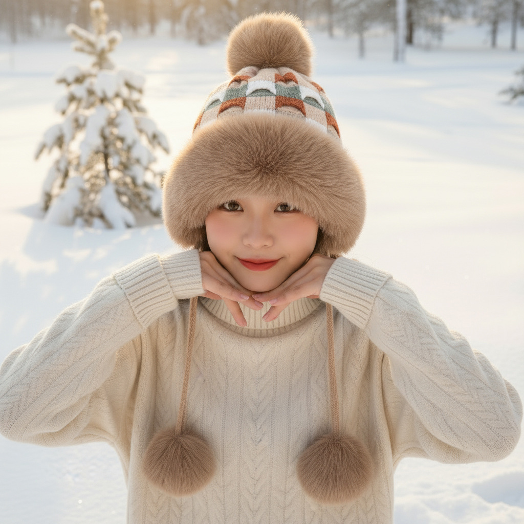 • 베이지/샤오샹펑 플러시 모자
