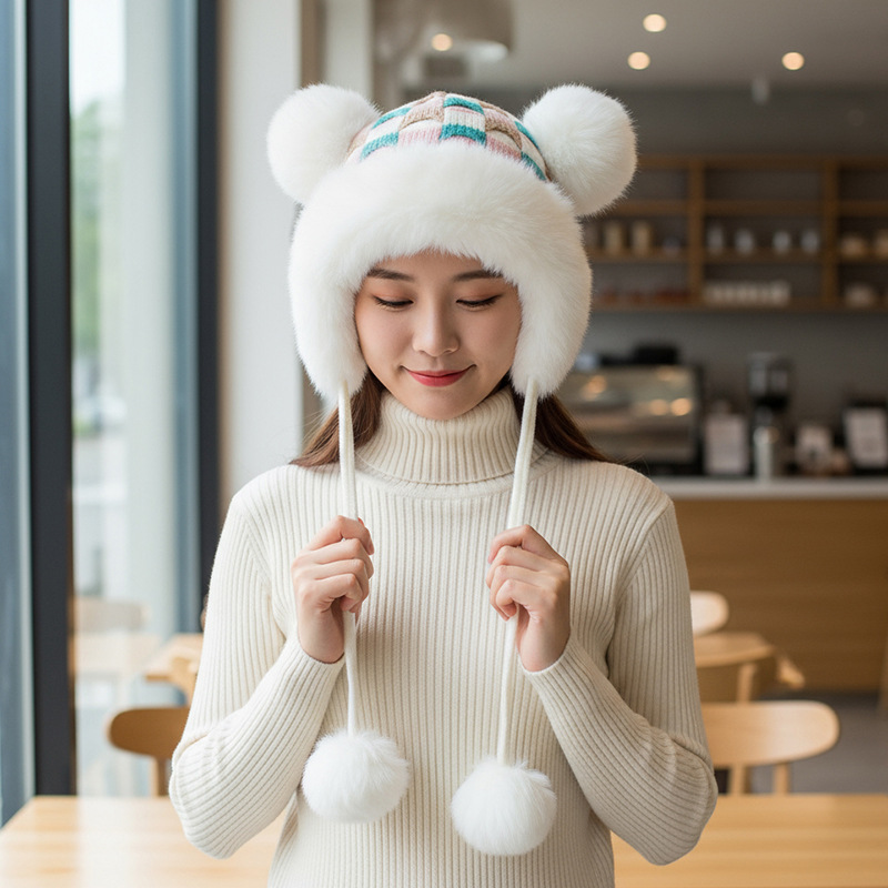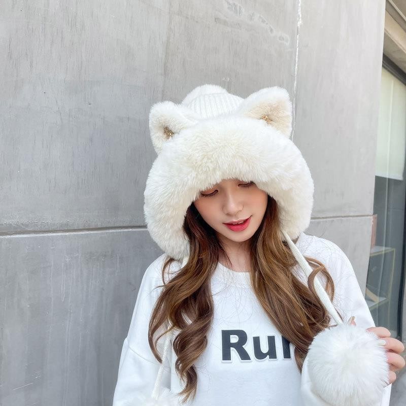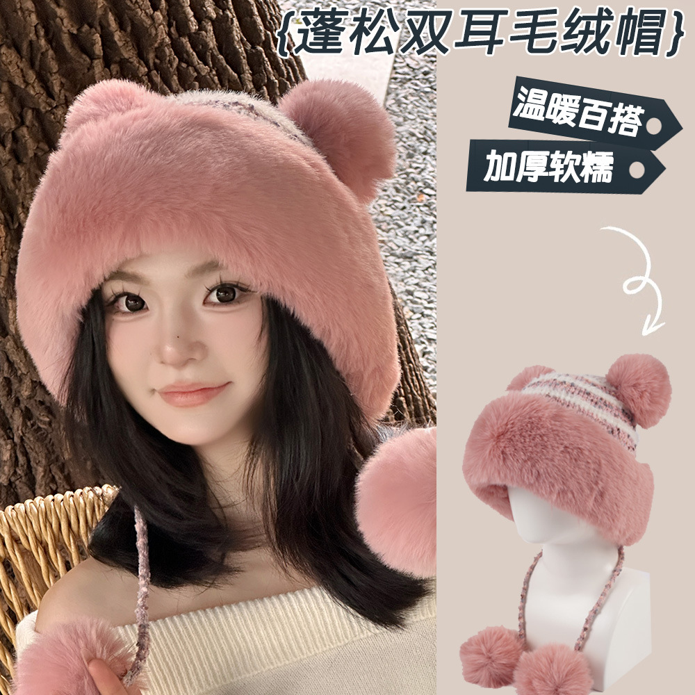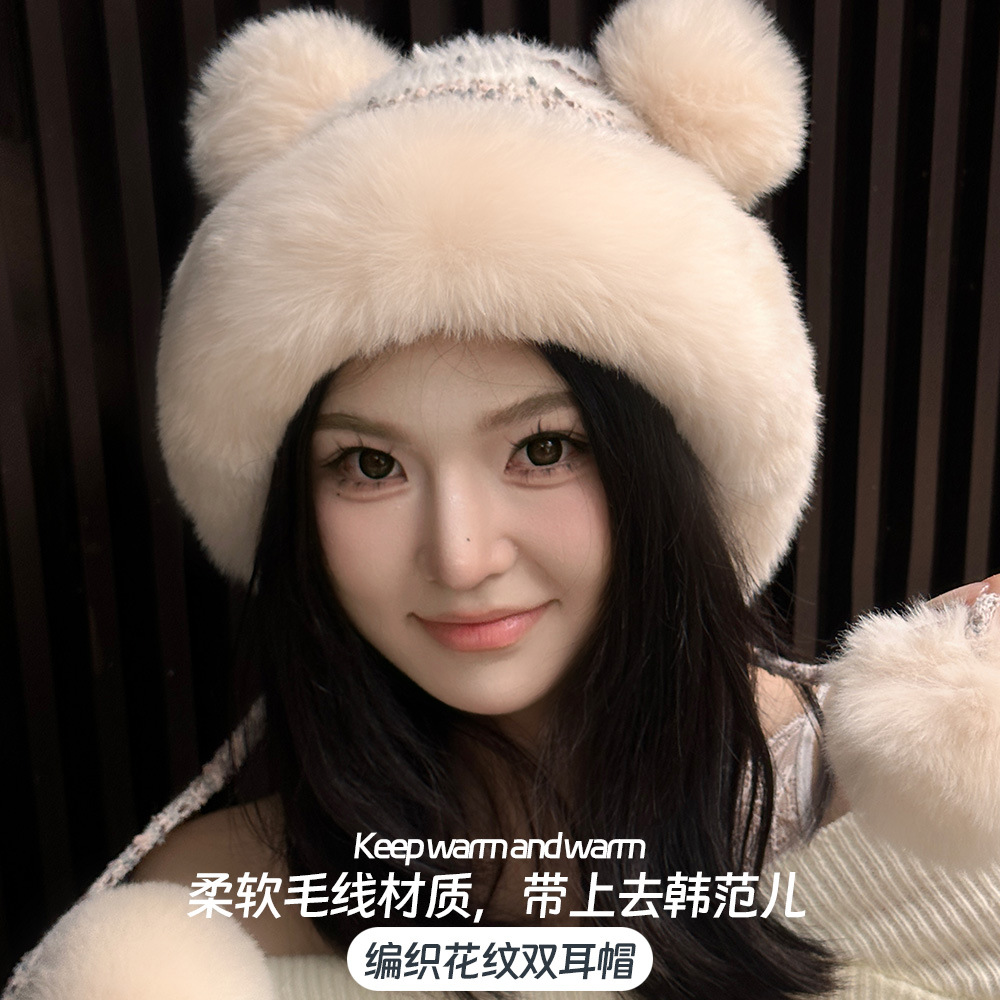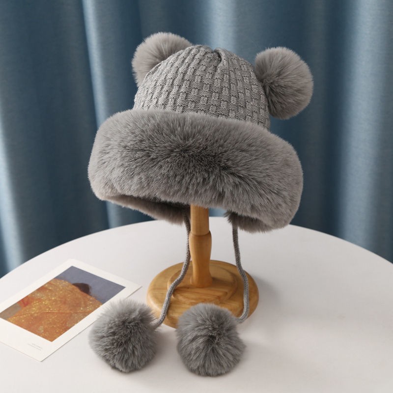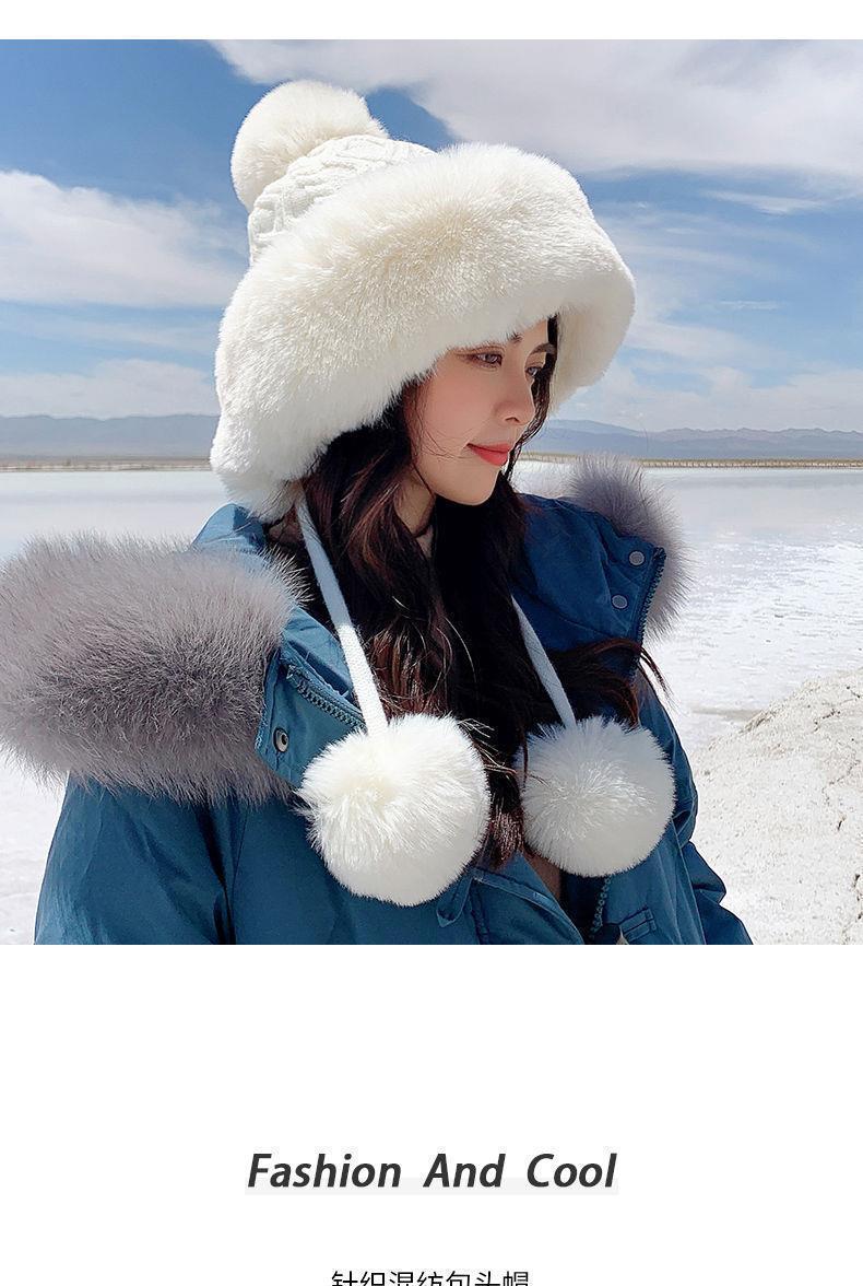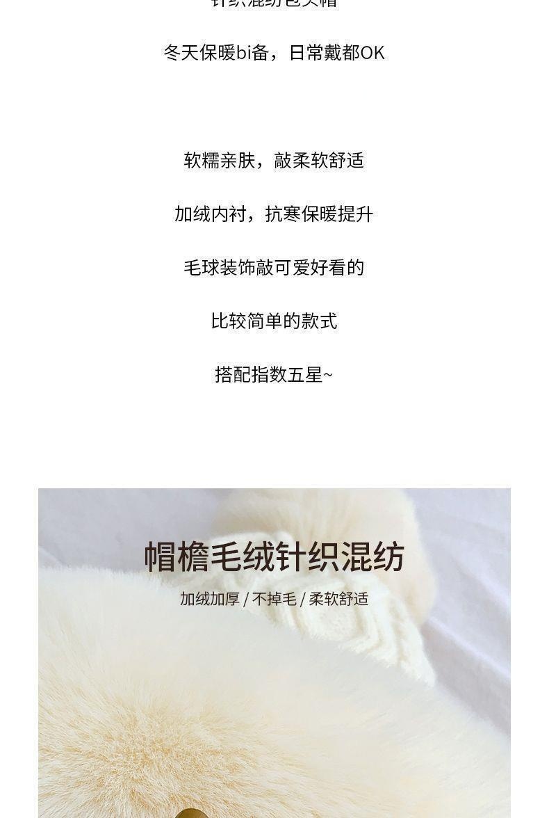 가을과 겨울 여성 코튼 캐시미어 풀오버 모자 3 털 공 귀여운 기모 두꺼운 방한 따뜻한 단색 니트 모자스토어 가기