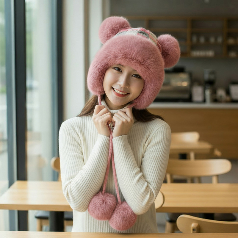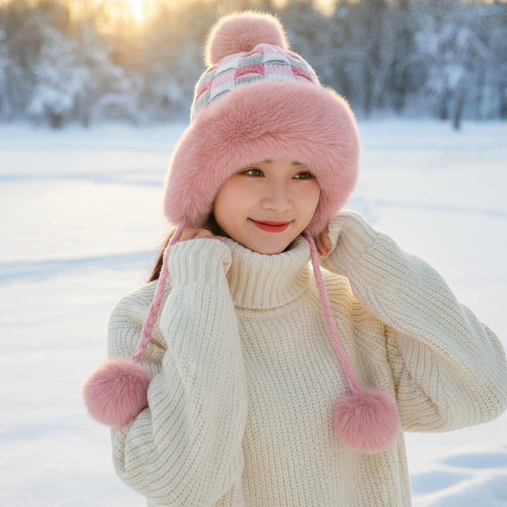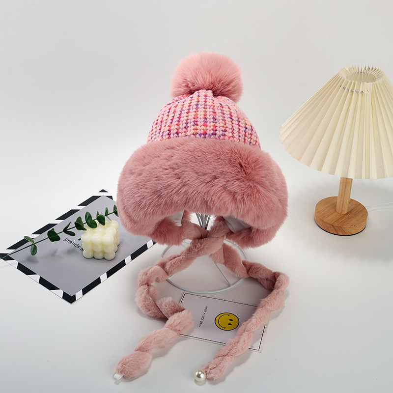 • 핑크/트위스트 몽골 플러시 모자