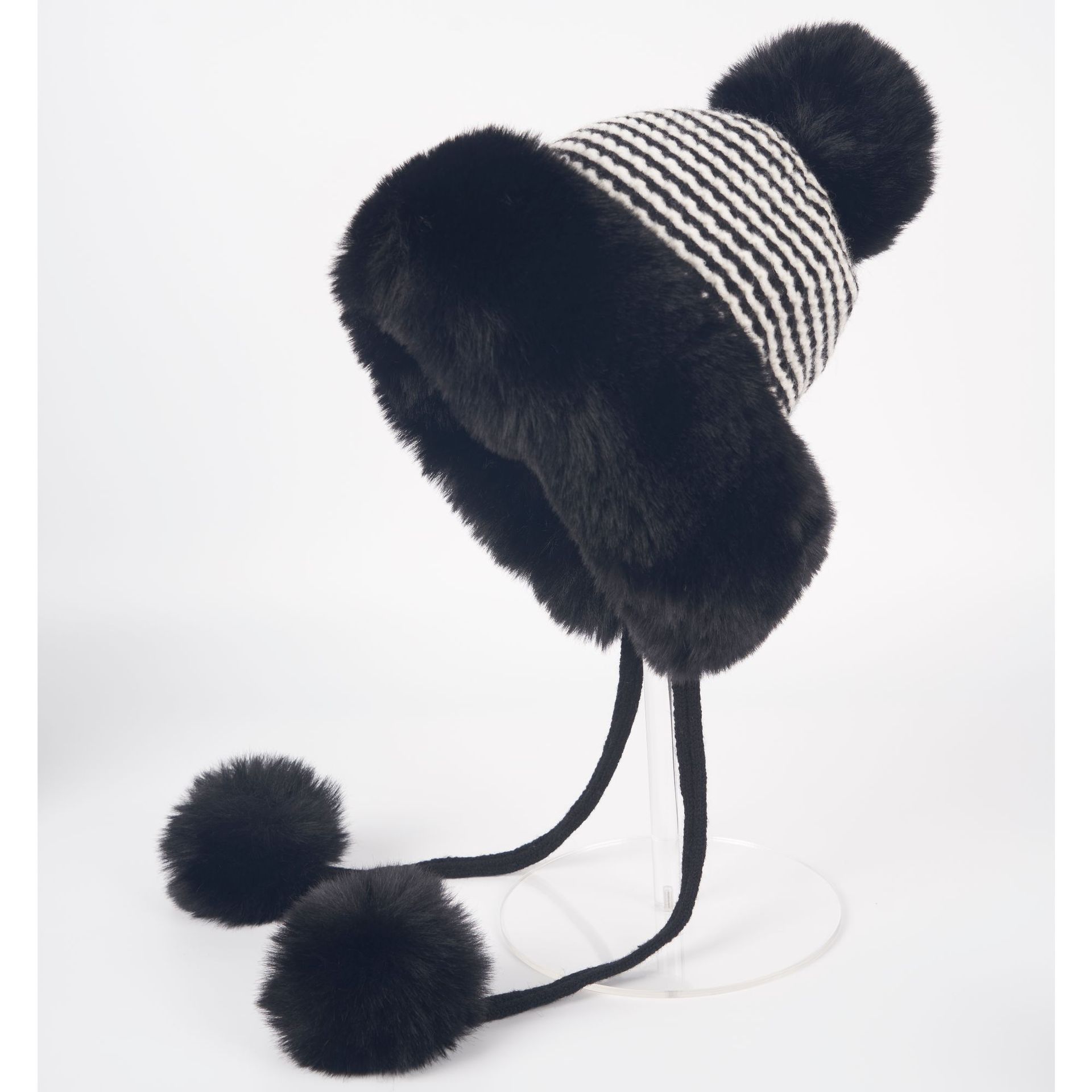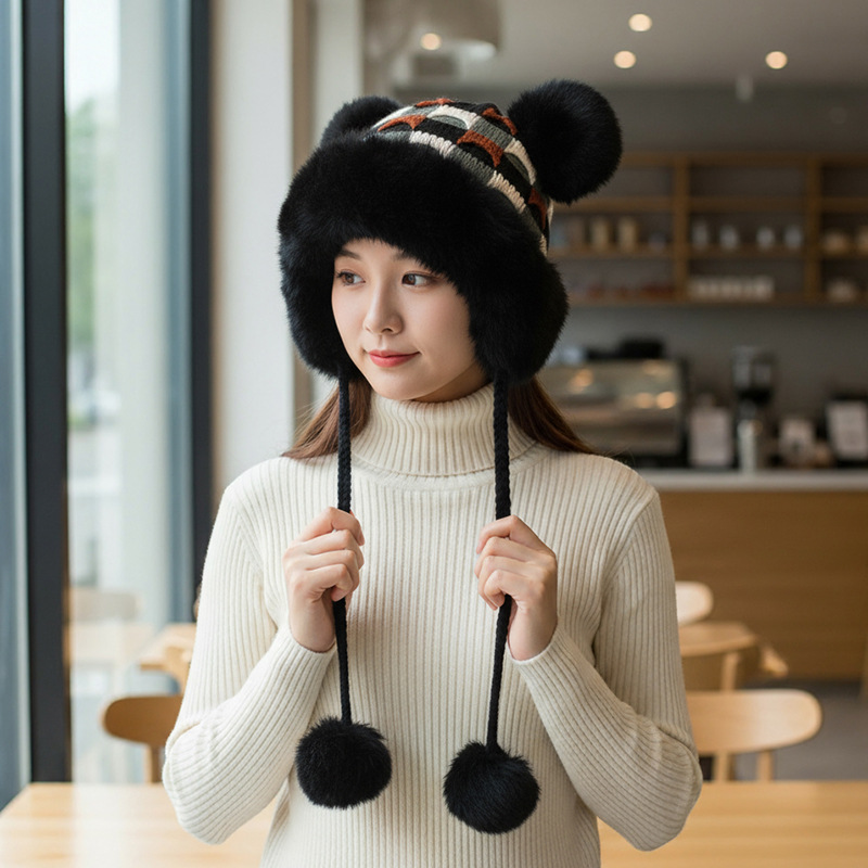 • 블랙/트위스트 몽골 플러시 모자