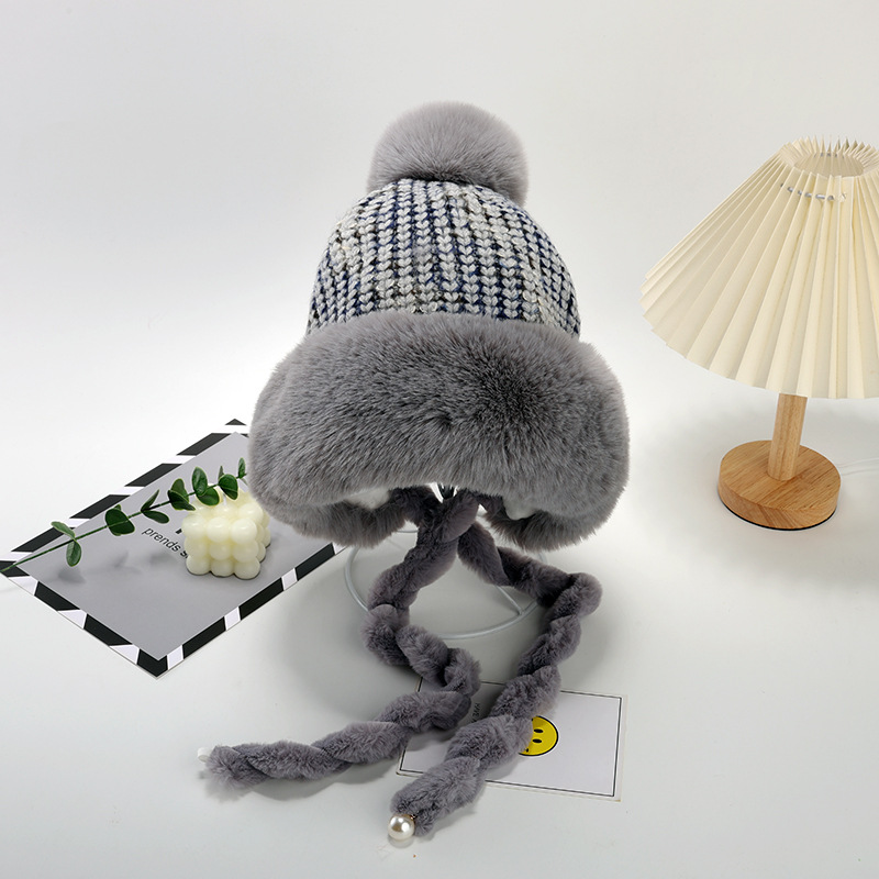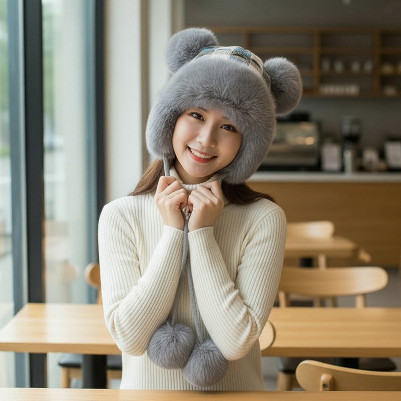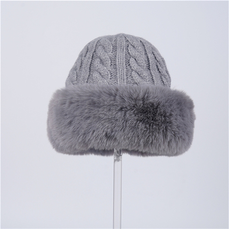 • 그레이/트위스트 몽골 플러시 모자