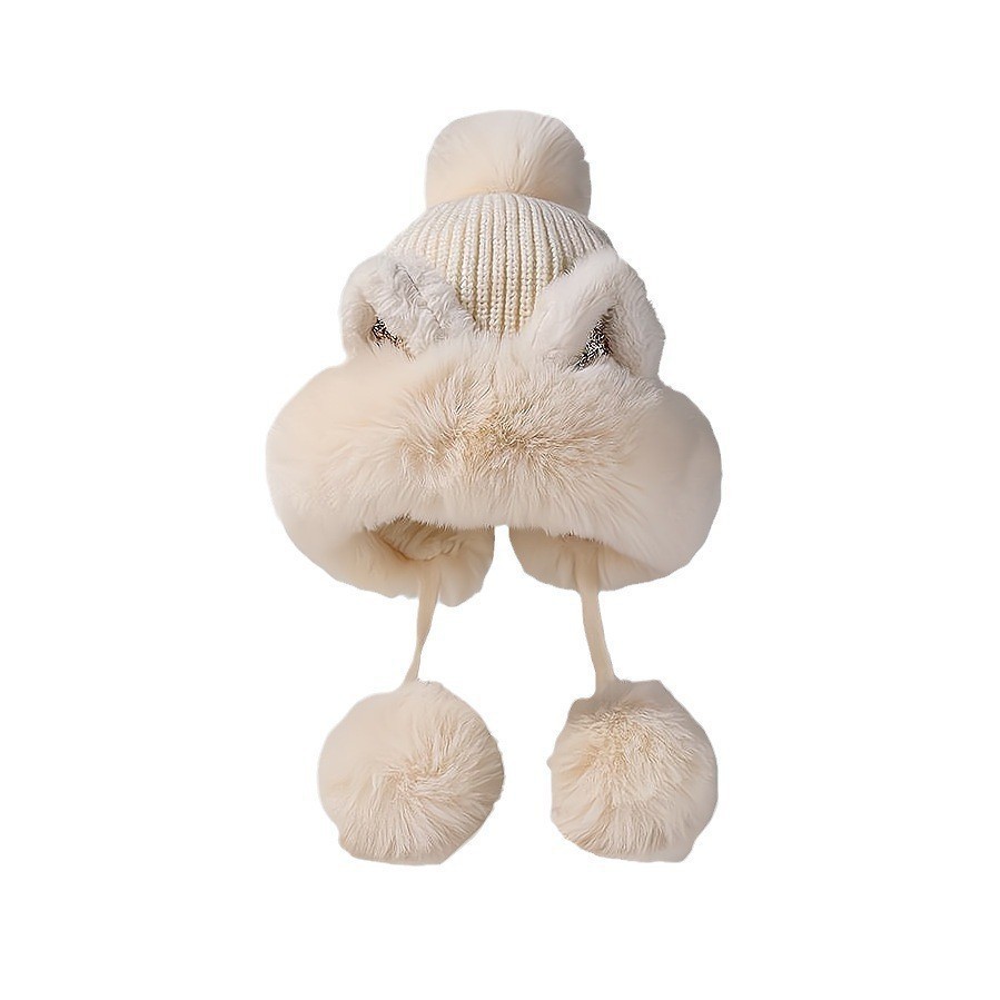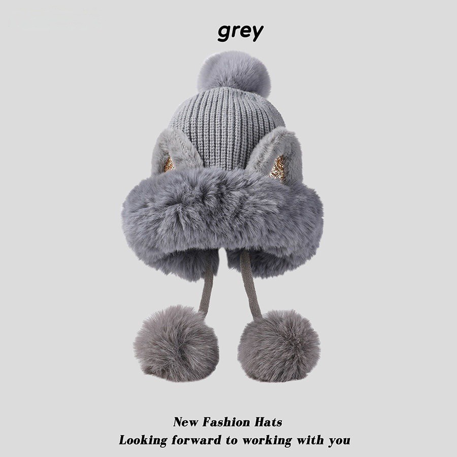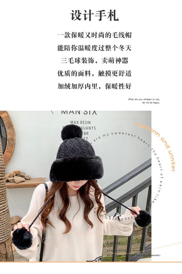 가을과 겨울 여성 코튼 캐시미어 풀오버 모자 3 털 공 귀여운 기모 두꺼운 방한 따뜻한 단색 니트 모자