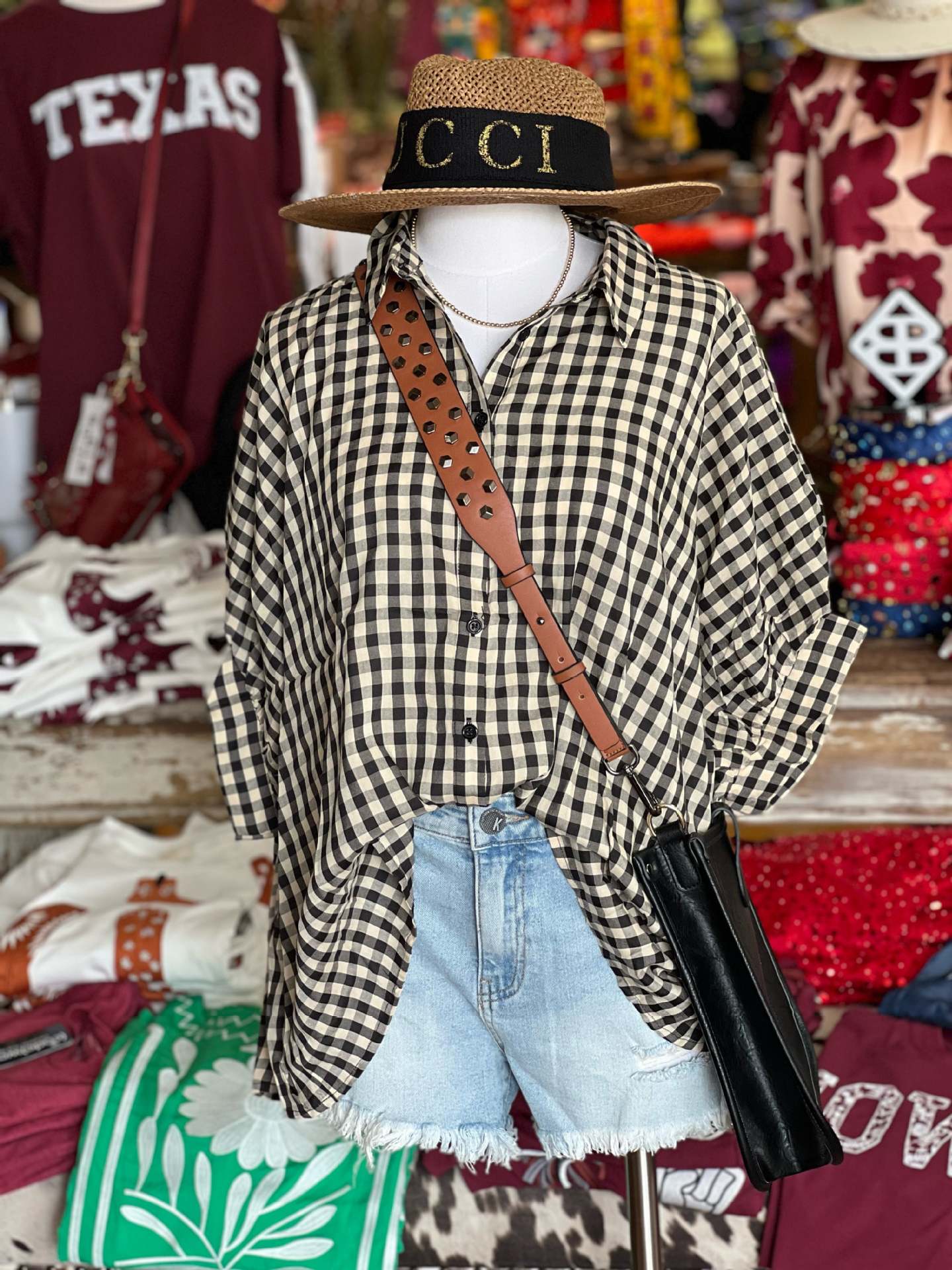새로운 유럽 및 미국 여성용 셔츠 얇은 격자 무늬 짧은 소매 버클 느슨한 탑 230918