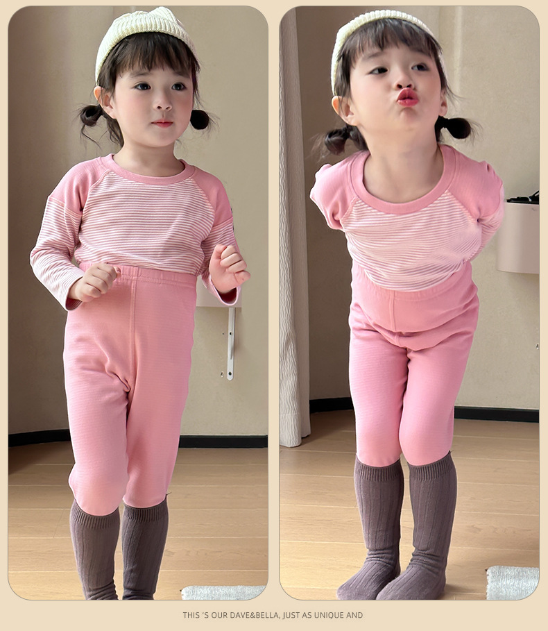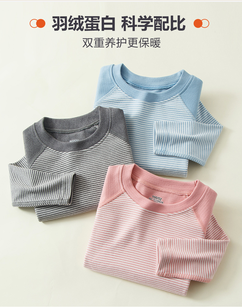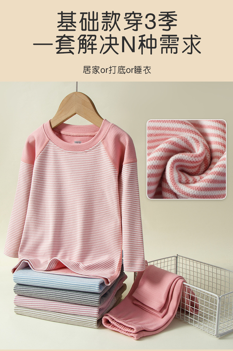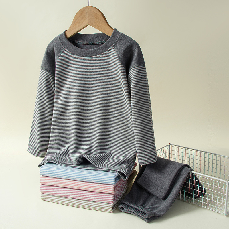 가을과 겨울 소년과 소녀를위한 새로운 어린이 기모 샌딩 세트 스티치 스트라이프 캔디 색상 따뜻한 가정 옷