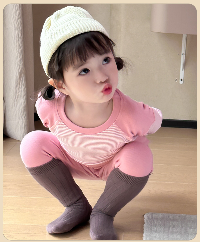 가을과 겨울 소년과 소녀를위한 새로운 어린이 기모 샌딩 세트 스티치 스트라이프 캔디 색상 따뜻한 가정 옷스토어 가기