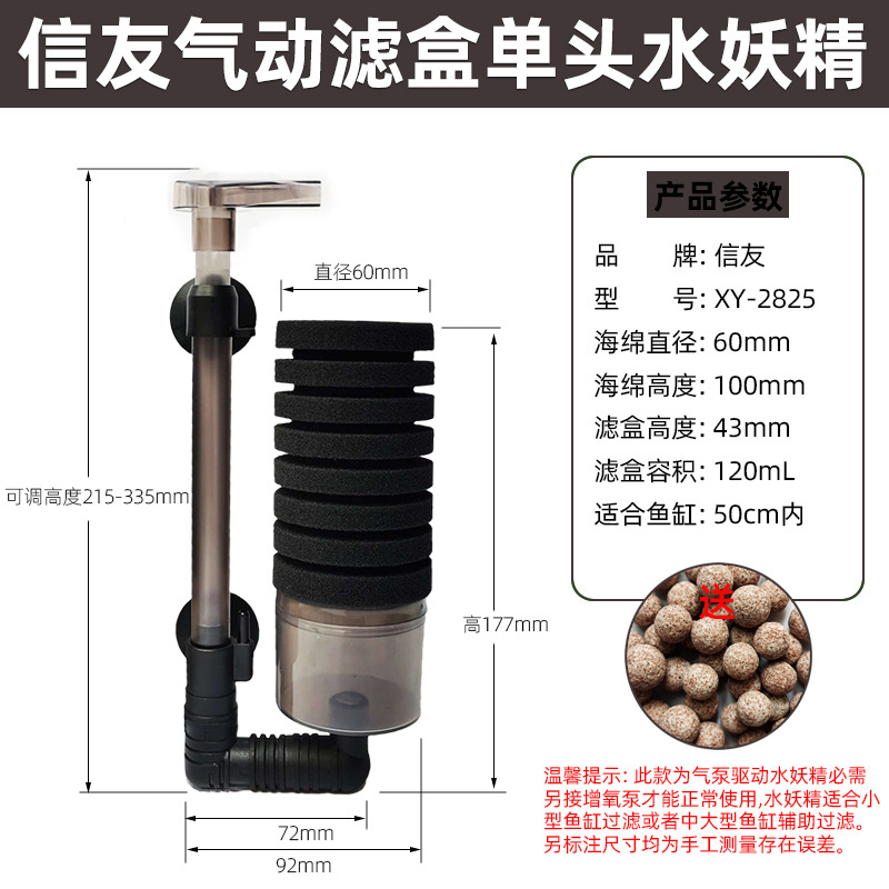 Xinyou 물 요정 2826 물고기 탱크 필터 수족관 스폰지 생화학 필터 안티 가스 리프트 공압 벽 교수형 흡입