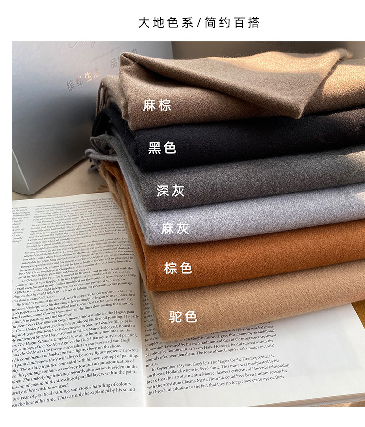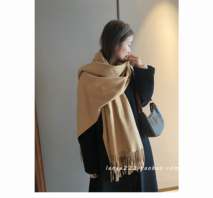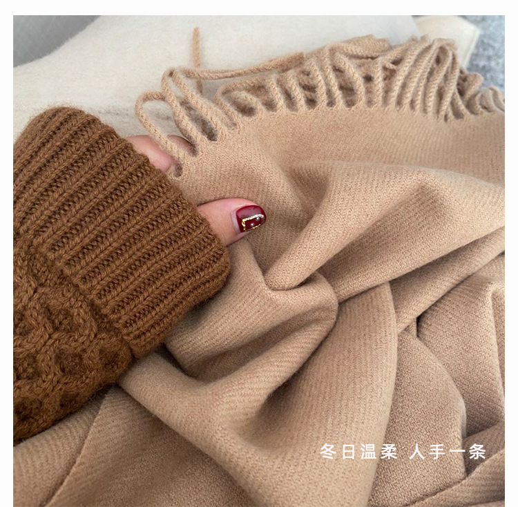 纯色百搭仿羊绒围巾女2023新款冬季外搭大披肩高级感棕色围脖男士