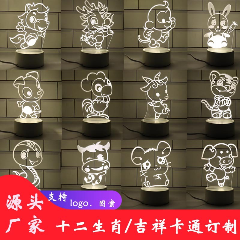 국경 간 새로운 LED 만화 미니 마스코트 조디악 USB 소켓 테이블 추상 애니메이션 야간 조명스토어 가기