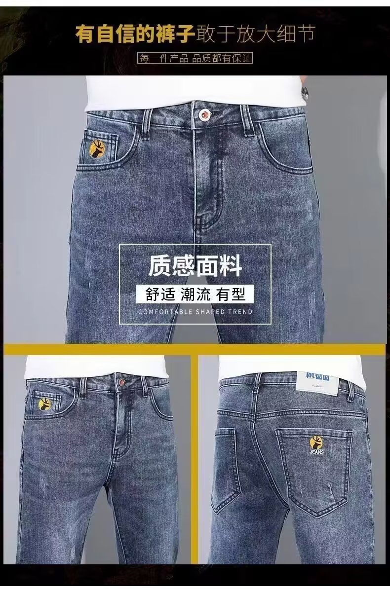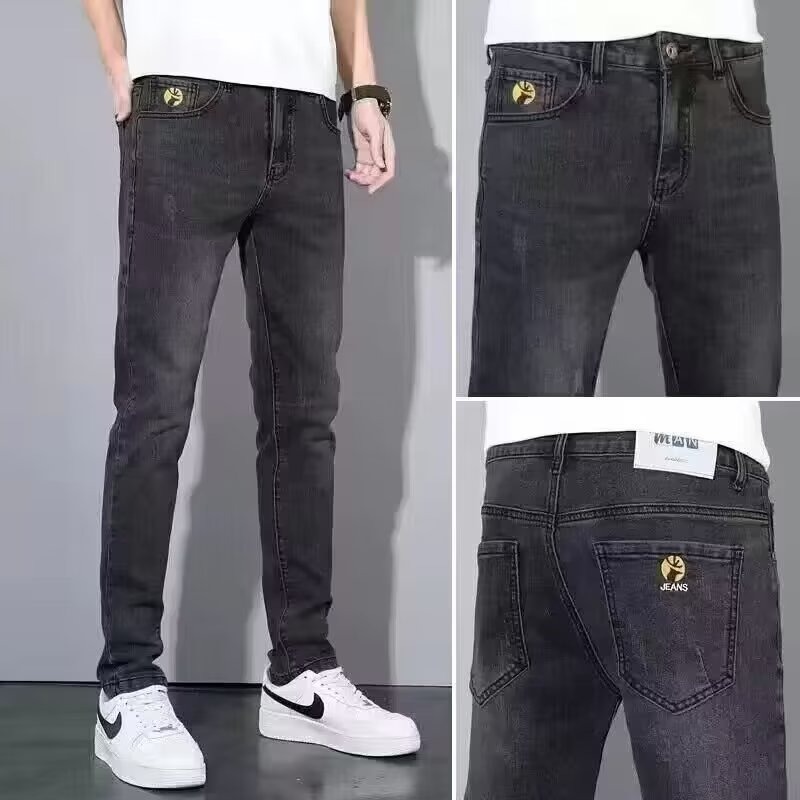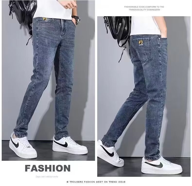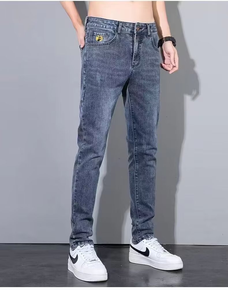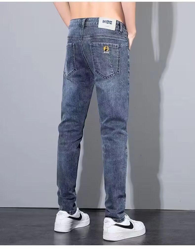 2023 신상품 자수 청바지 남성용 슬림핏 얇은 한국 스타일 봄과 가을을 위한 유행 만능 앵클 팬츠스토어 가기