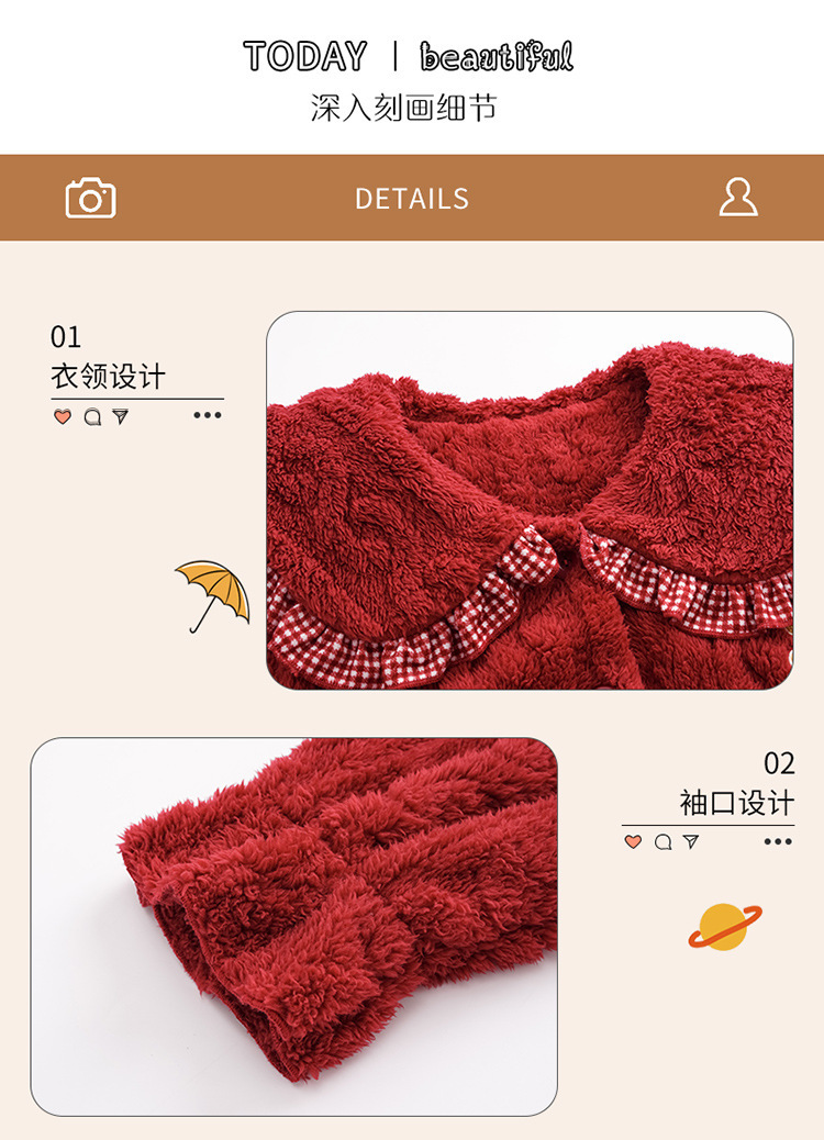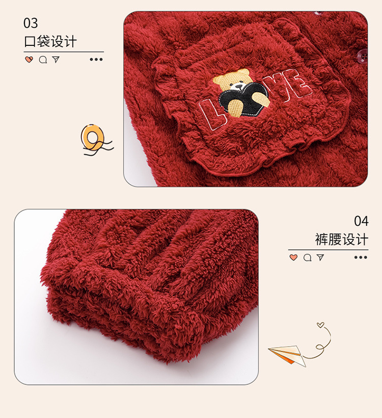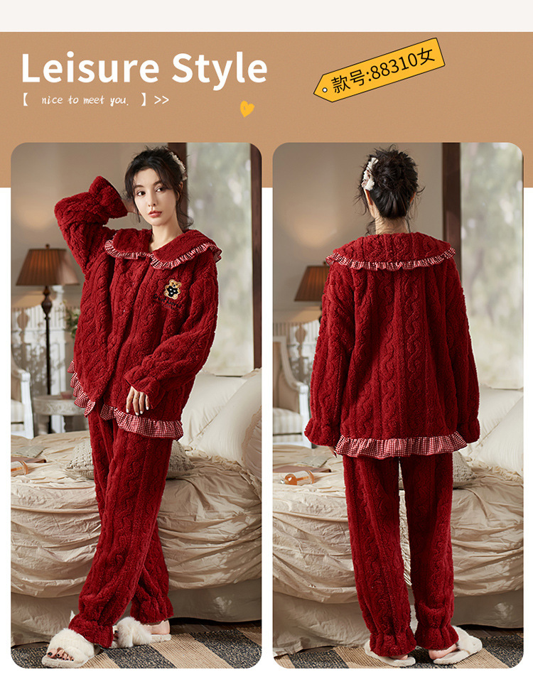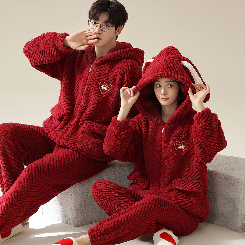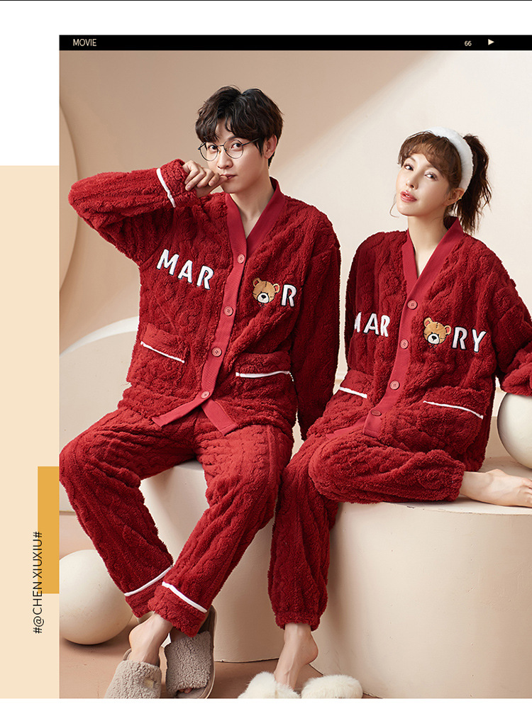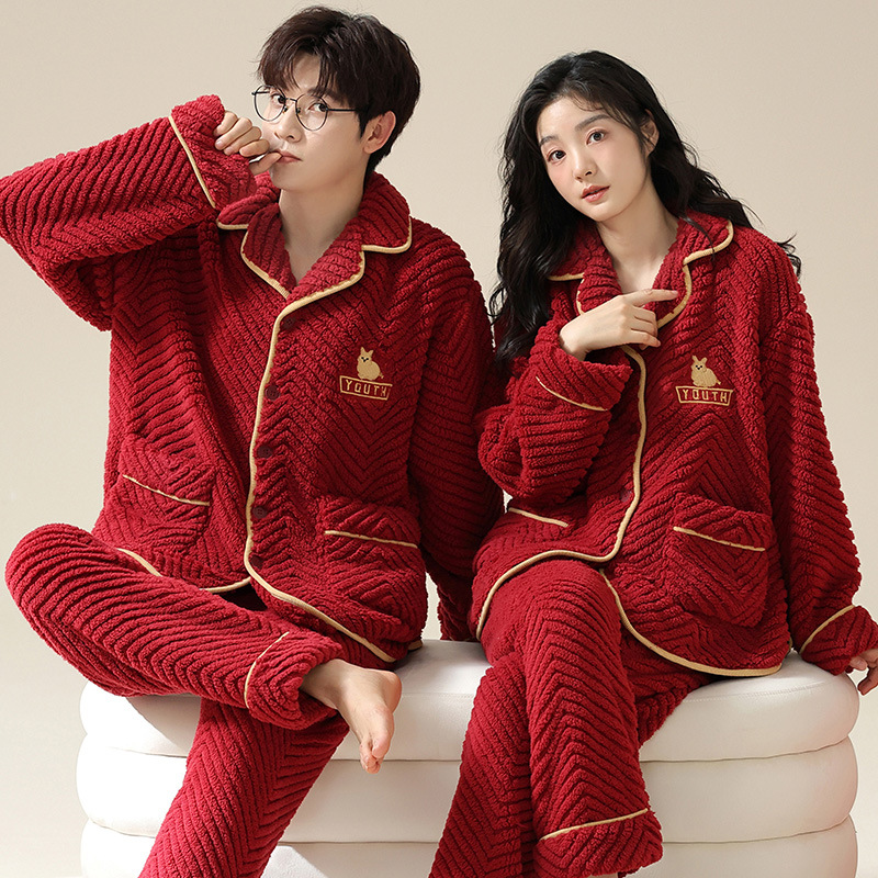 커플 잠옷 여자의 기모 새로운 산호 양털 가을과 겨울 세트 남자의 플란넬 따뜻한 큰 빨간 가정 옷