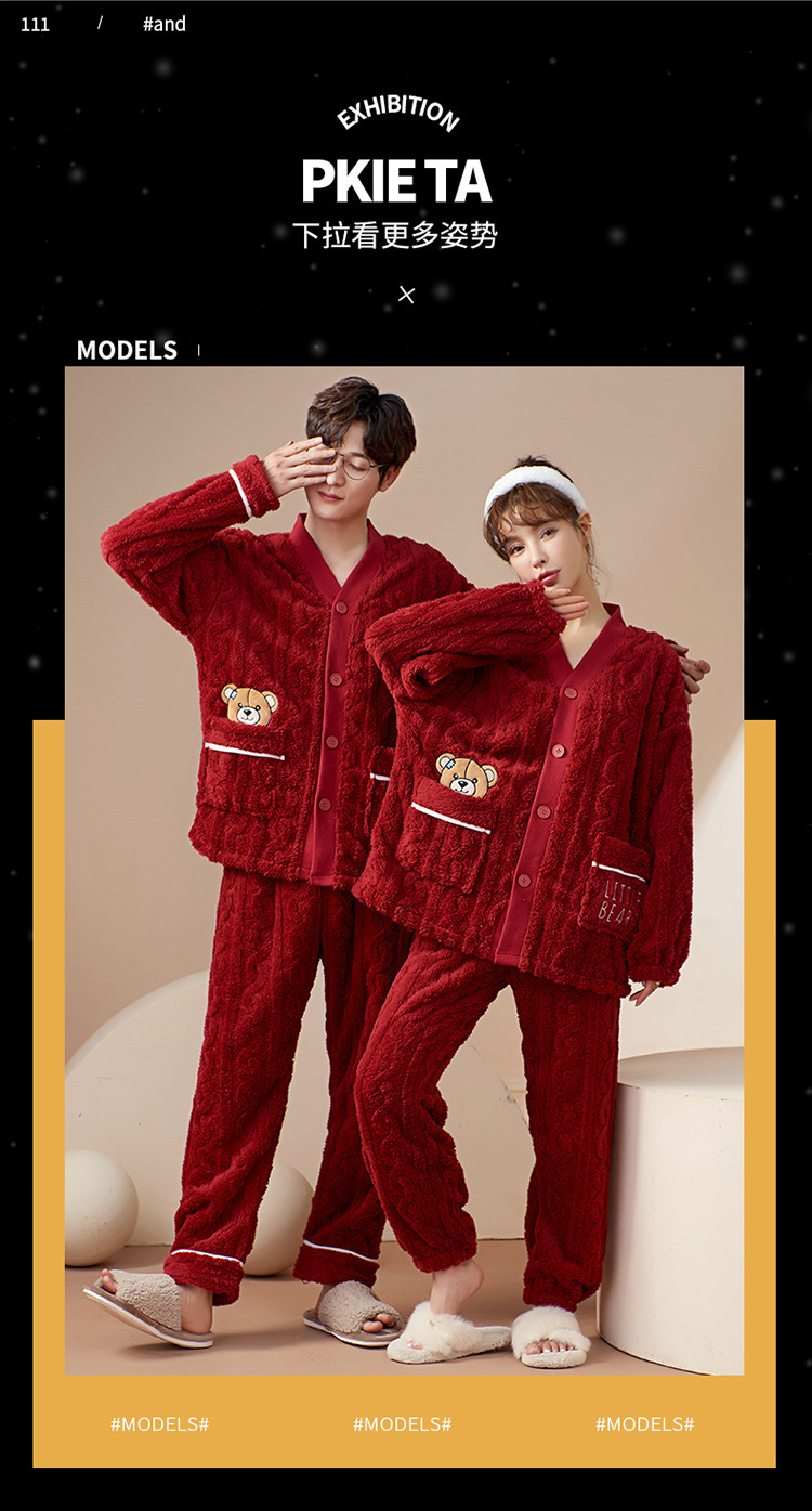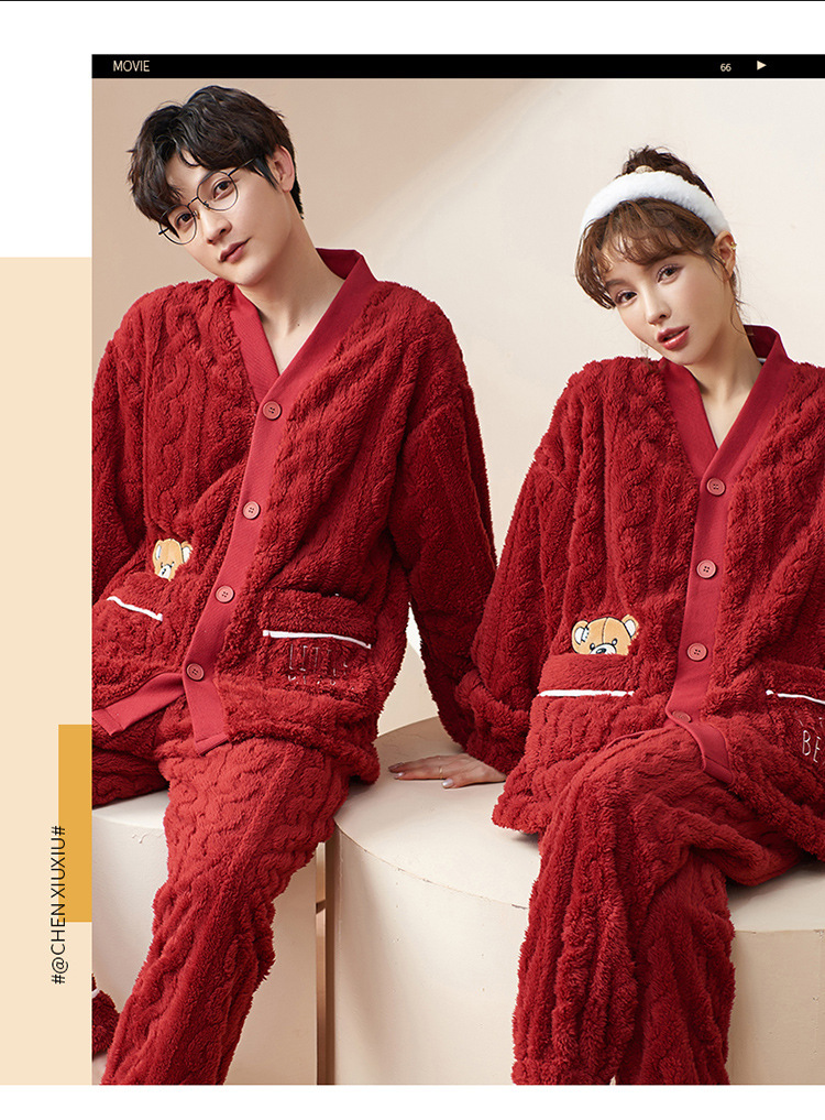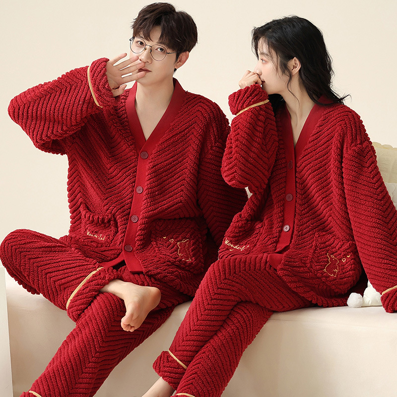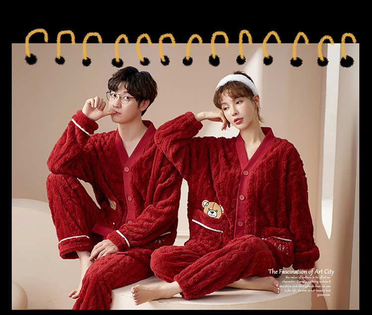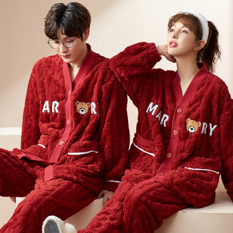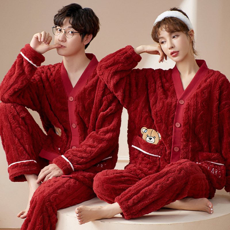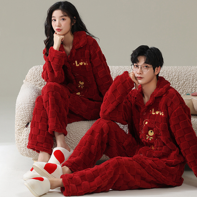 커플 잠옷 여자의 기모 새로운 산호 양털 가을과 겨울 세트 남자의 플란넬 따뜻한 큰 빨간 가정 옷스토어 가기
