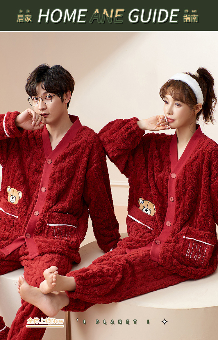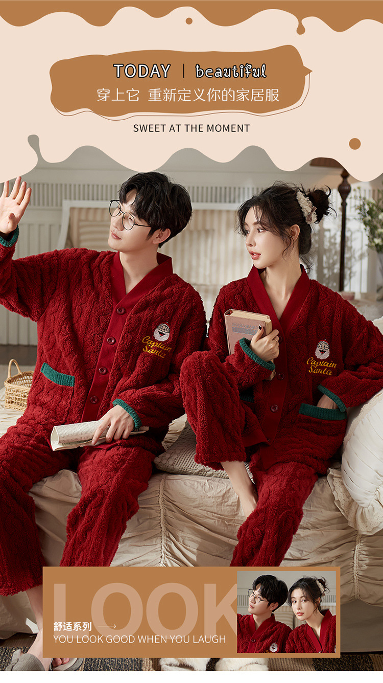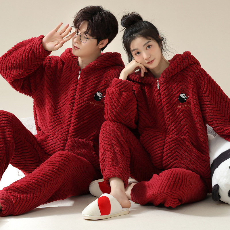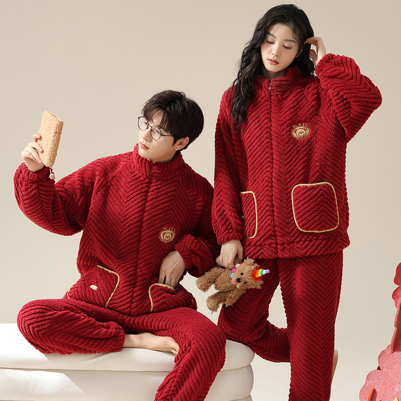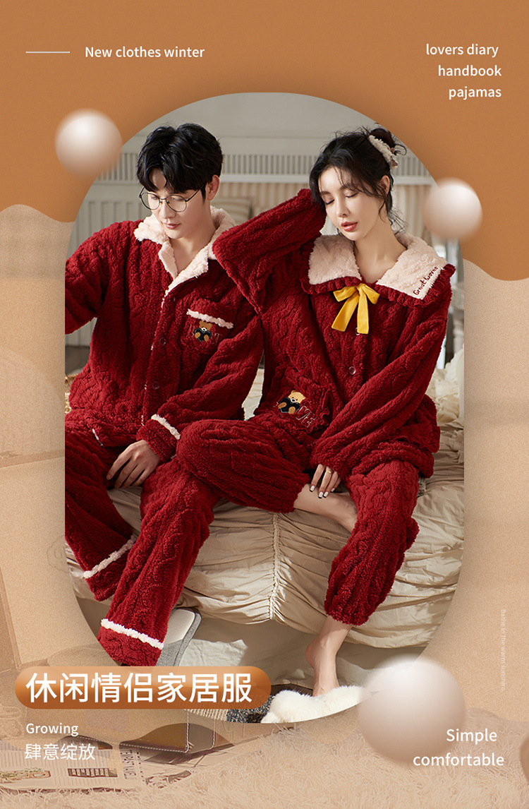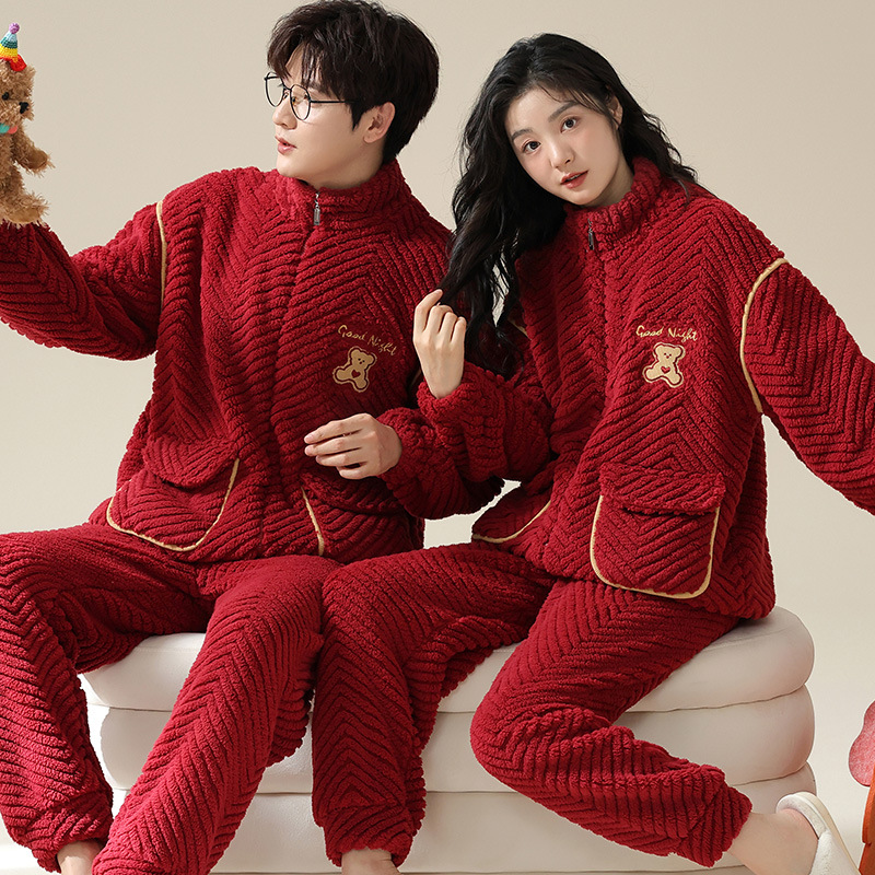 커플 잠옷 여자의 기모 새로운 산호 양털 가을과 겨울 세트 남자의 플란넬 따뜻한 큰 빨간 가정 옷스토어 가기