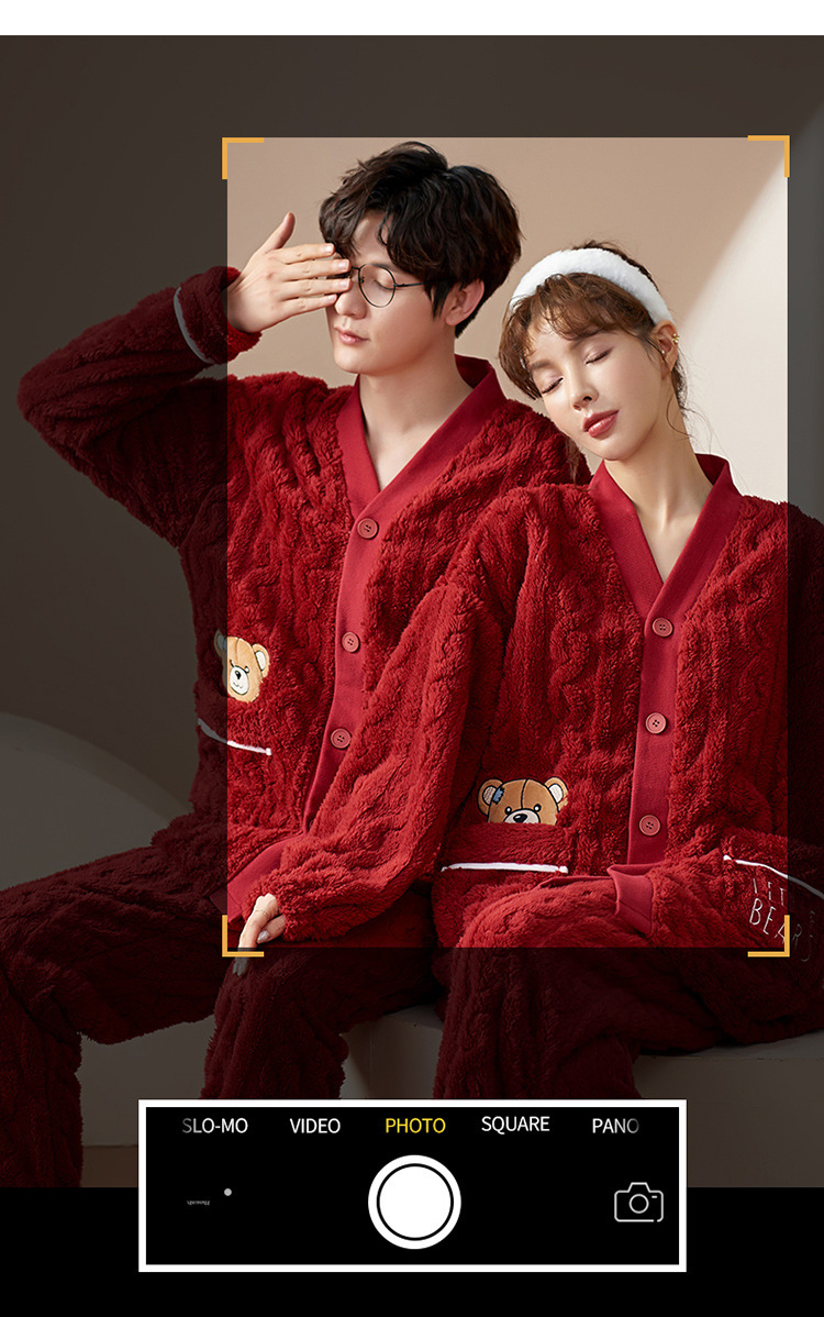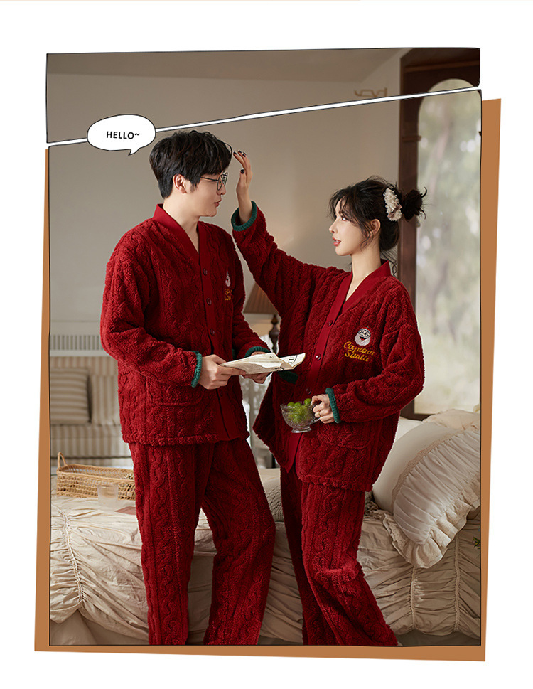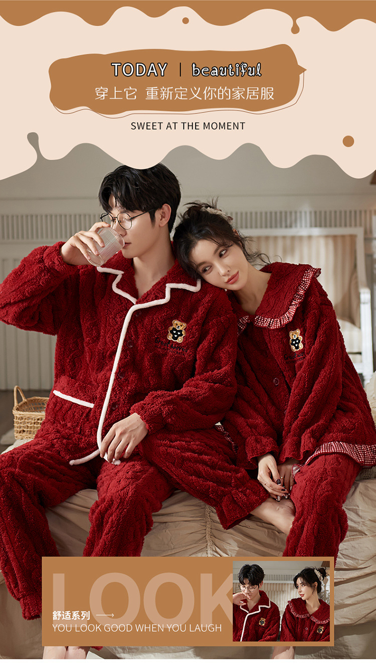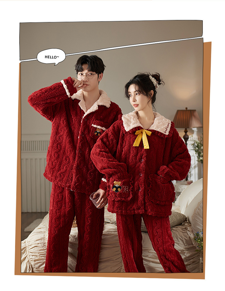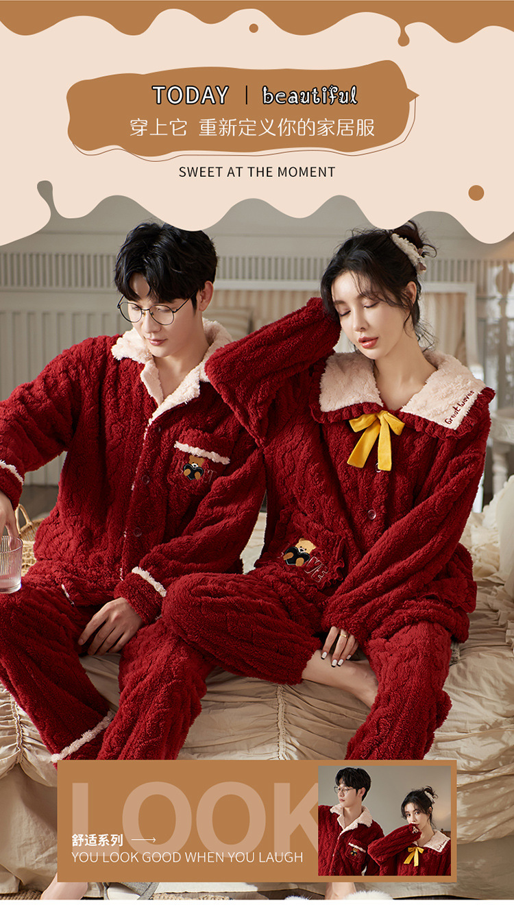 커플 잠옷 여자의 기모 새로운 산호 양털 가을과 겨울 세트 남자의 플란넬 따뜻한 큰 빨간 가정 옷스토어 가기