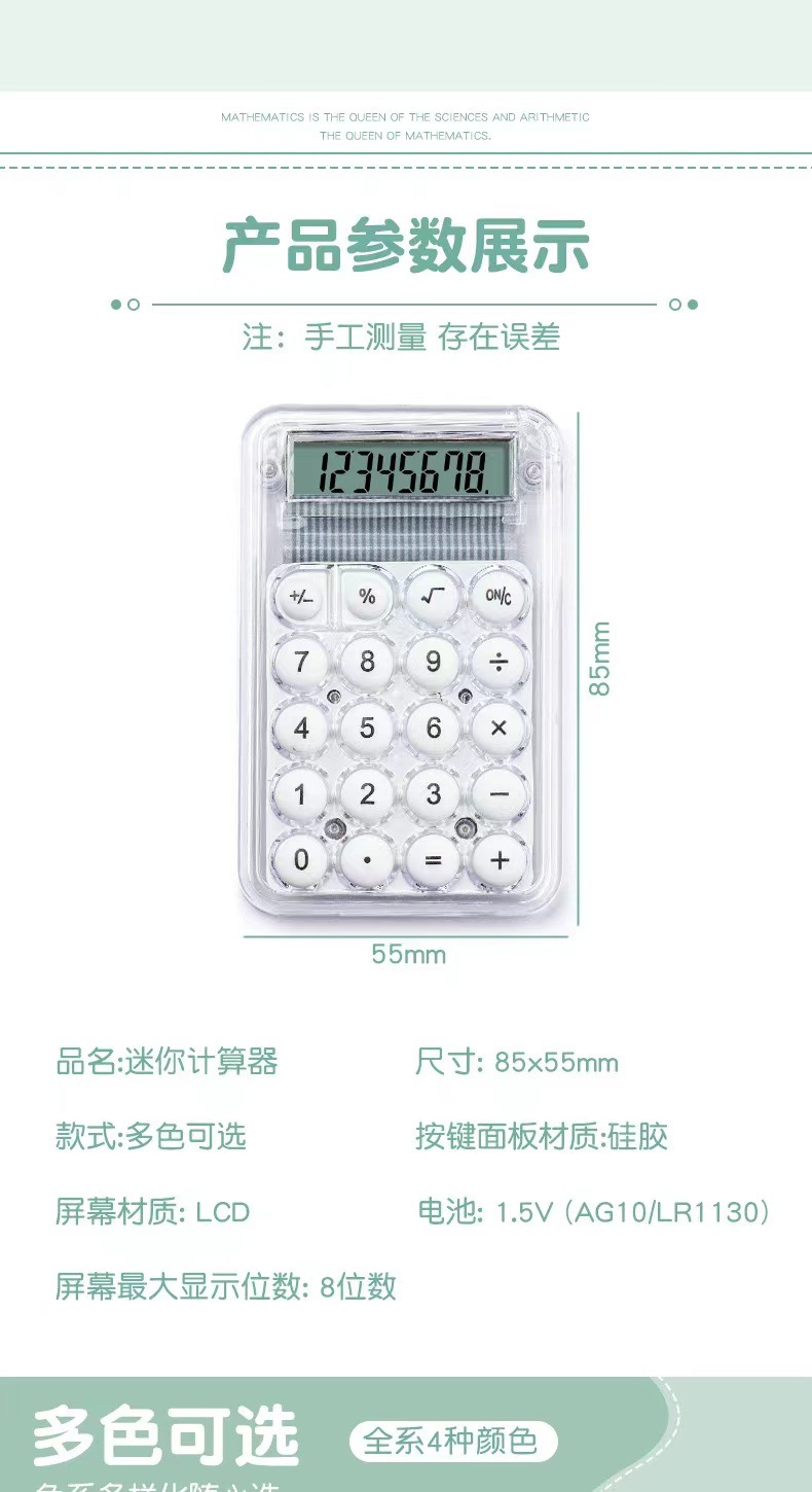 공장 도매 귀여운 미니 대형 디스플레이 하이 컬러 값 핸드 헬드 휴대용 8 비트 전자 계산기 소 산수스토어 가기