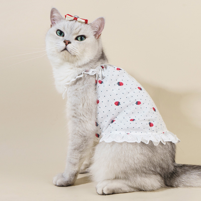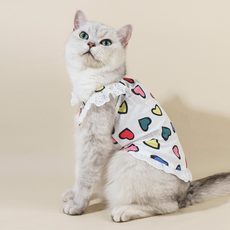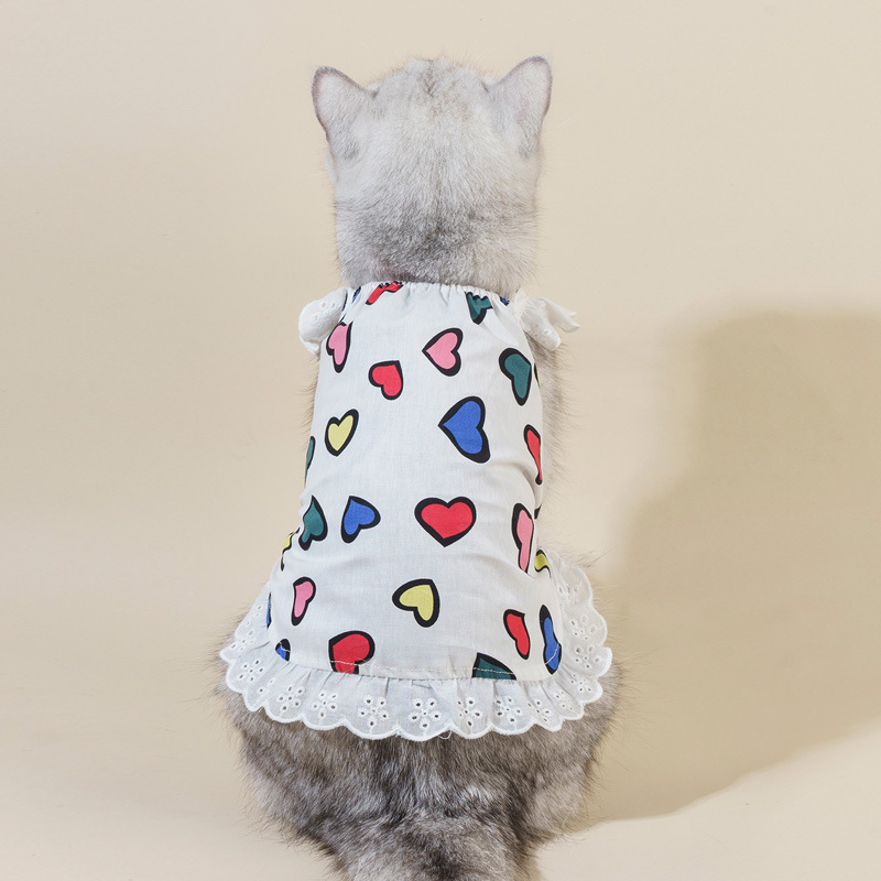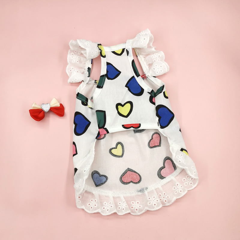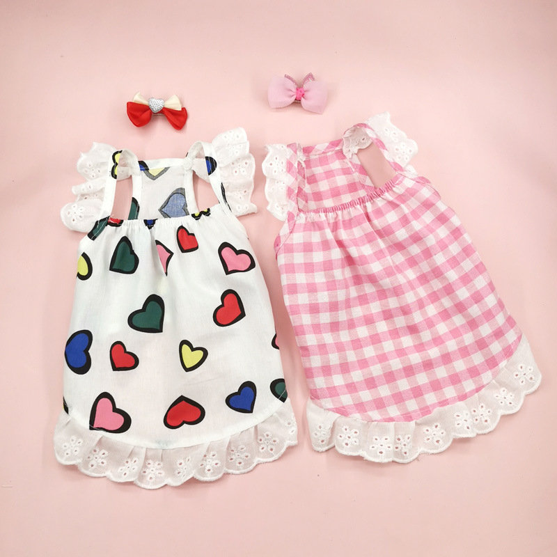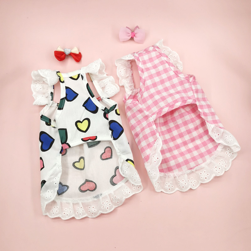 여름 얇은 개 작은 개 레이스 옷 쓴 곰 봄 테디 요크셔 푸들 고양이 사랑 의상스토어 가기