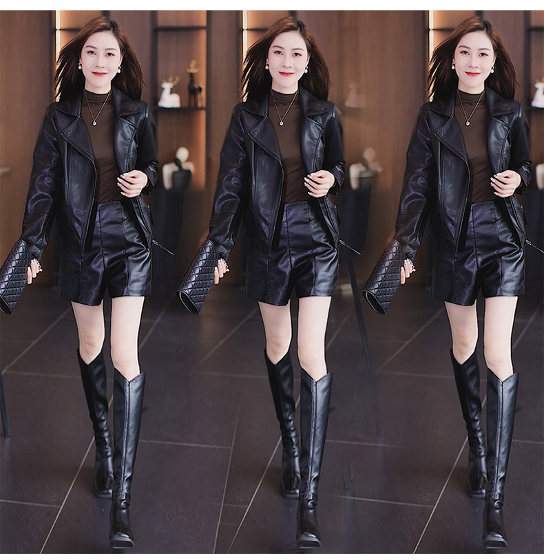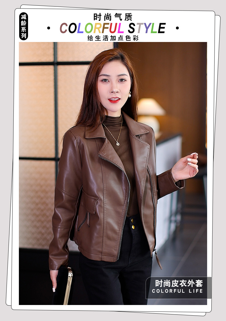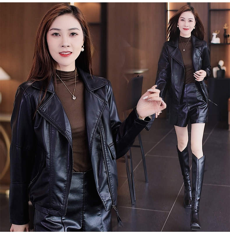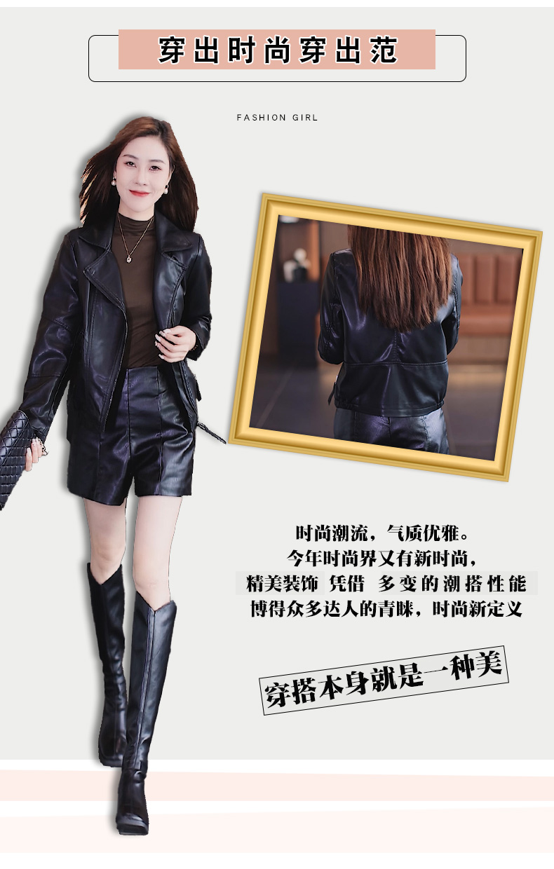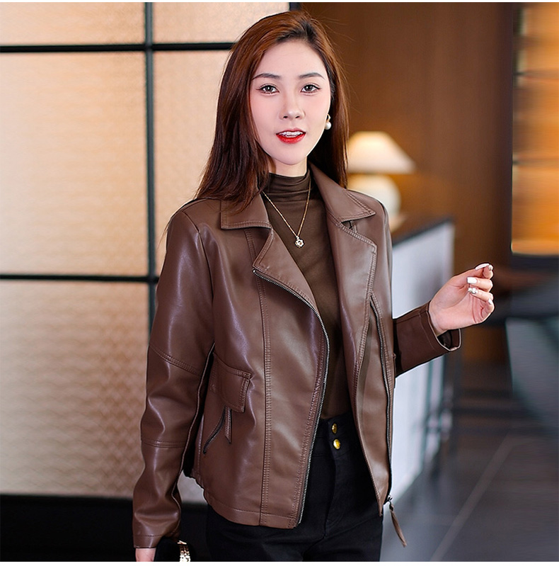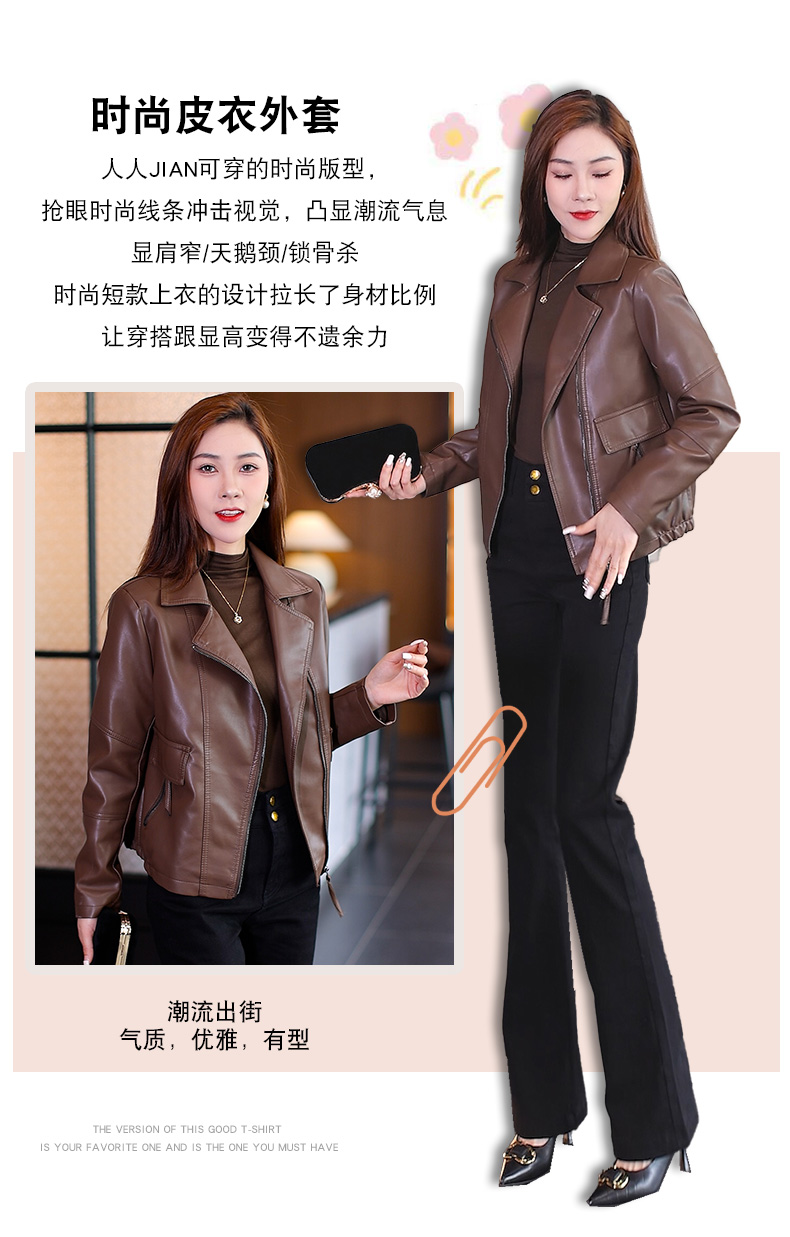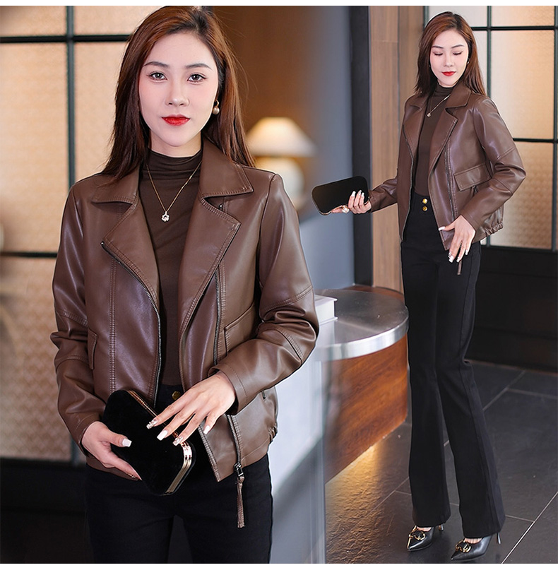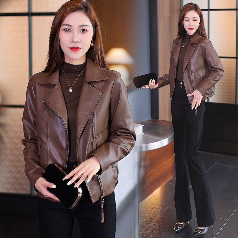가죽 여성 코트 2023 봄과 가을 새로운 한국식 바이커 세트 슬림핏 슬리밍 모든 매치 짧은 가죽 자켓 트렌디 탑