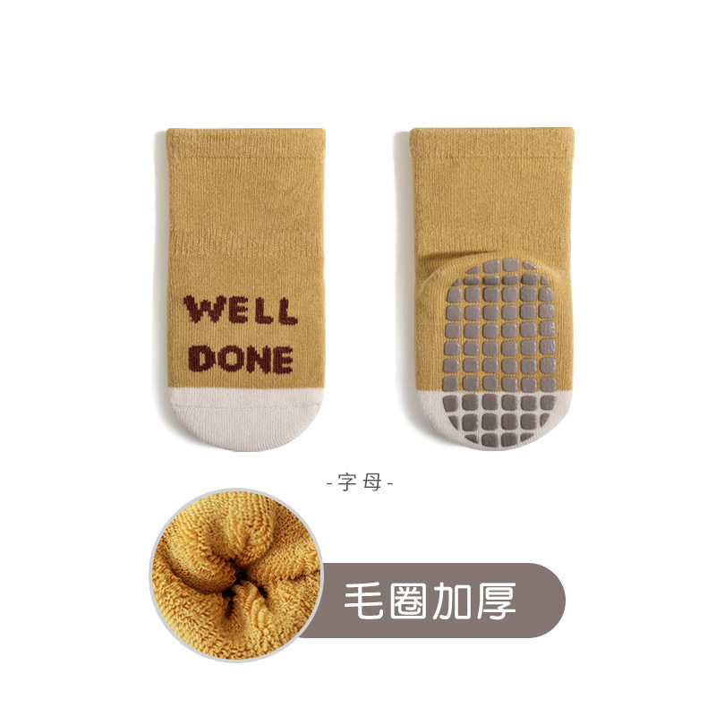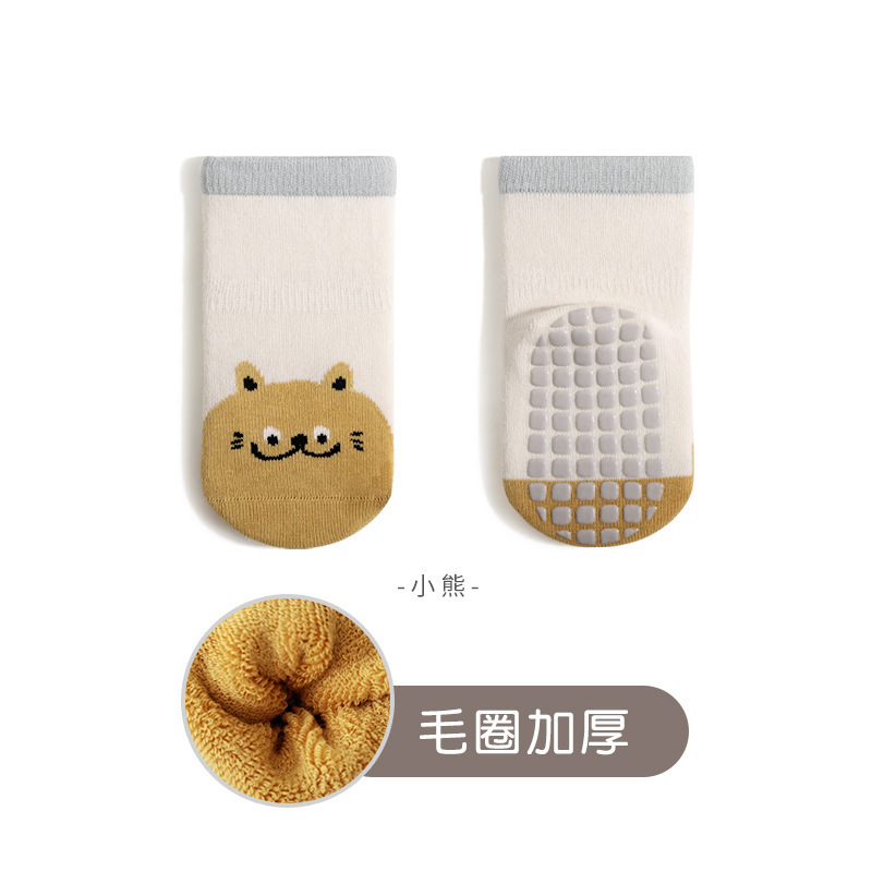 25 새로운 겨울 아기 바닥 양말 소년과 소녀를위한 실내 뼈없는 미끄럼 방지 점선 양말 귀여운 만화 유아 양말스토어 가기