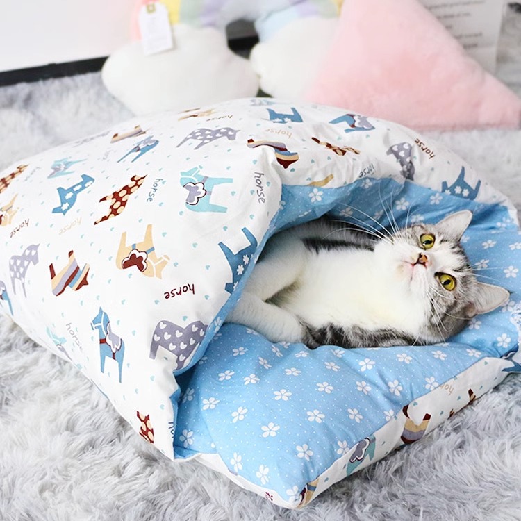 고양이 수면 따뜻한 이불, 고양이 이불, 애완동물 매트, 탈부착 및 세탁 가능한 일본식 고양이 침낭, 애완동물 둥지, 고양이 둥지스토어 가기