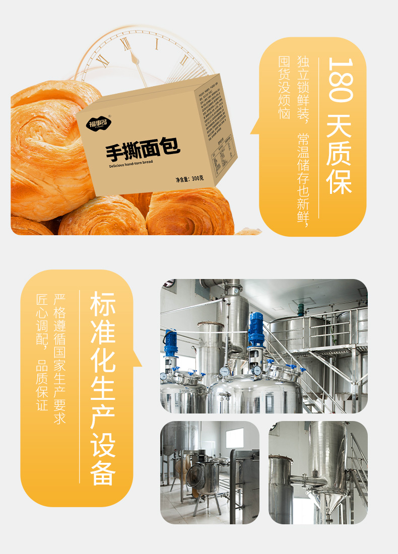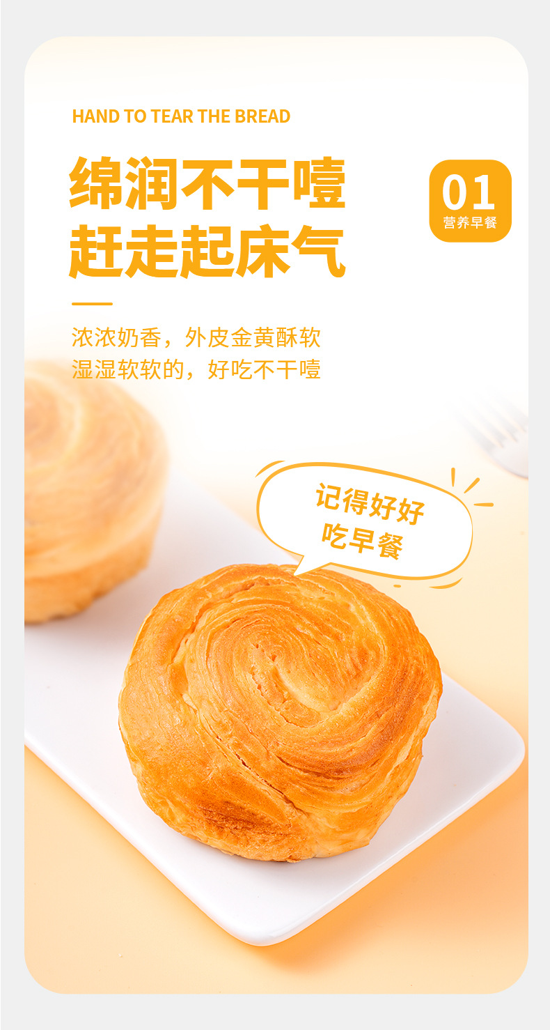 인기 상품 푸시도 300g 손으로 찢는 빵 한 박스 아침식사 저지방 부드러운 빵 건강식품 프랑스식 구식 빵스토어 가기