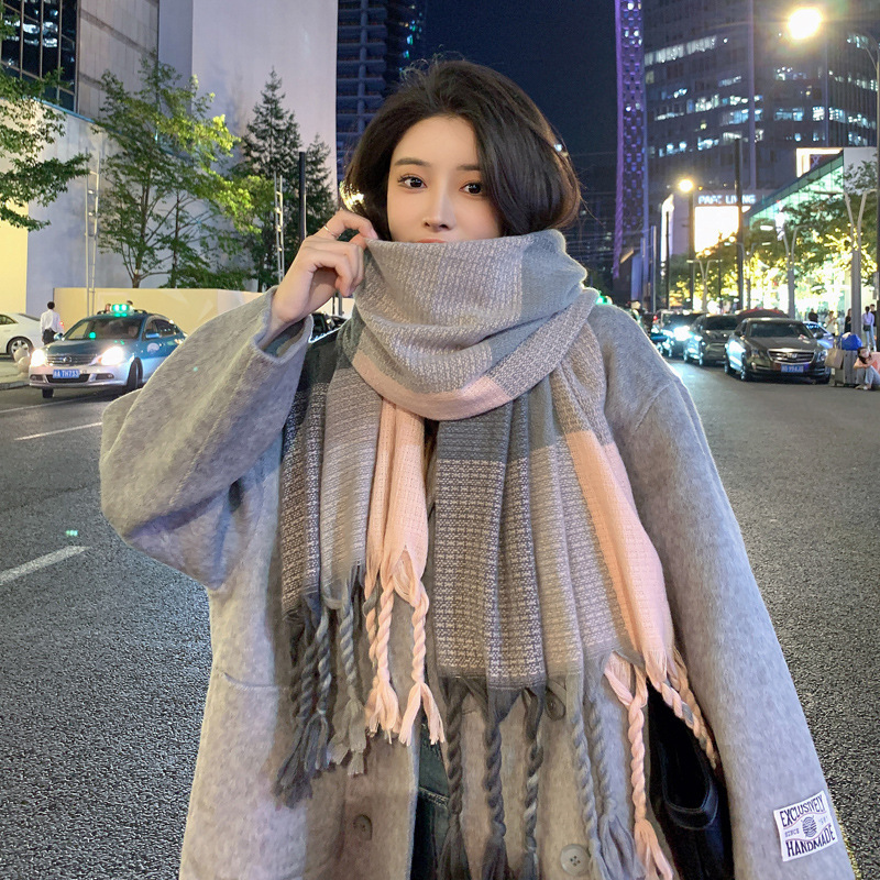 사각 격자 무늬 캐시미어 스카프 여성의 가을과 겨울 모든 매치 트위스트 브레이드 두꺼운 따뜻한 니트 스카프 숄 목 보호