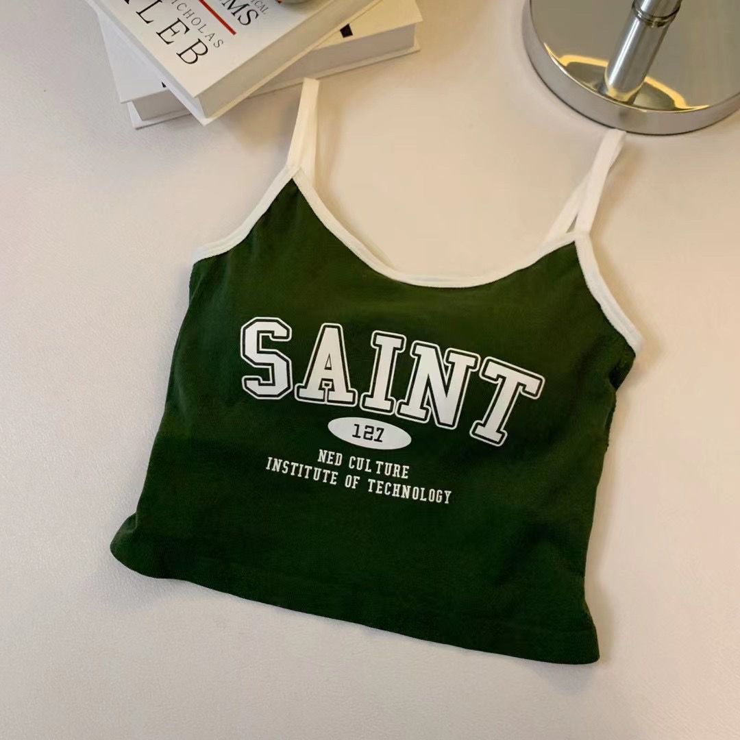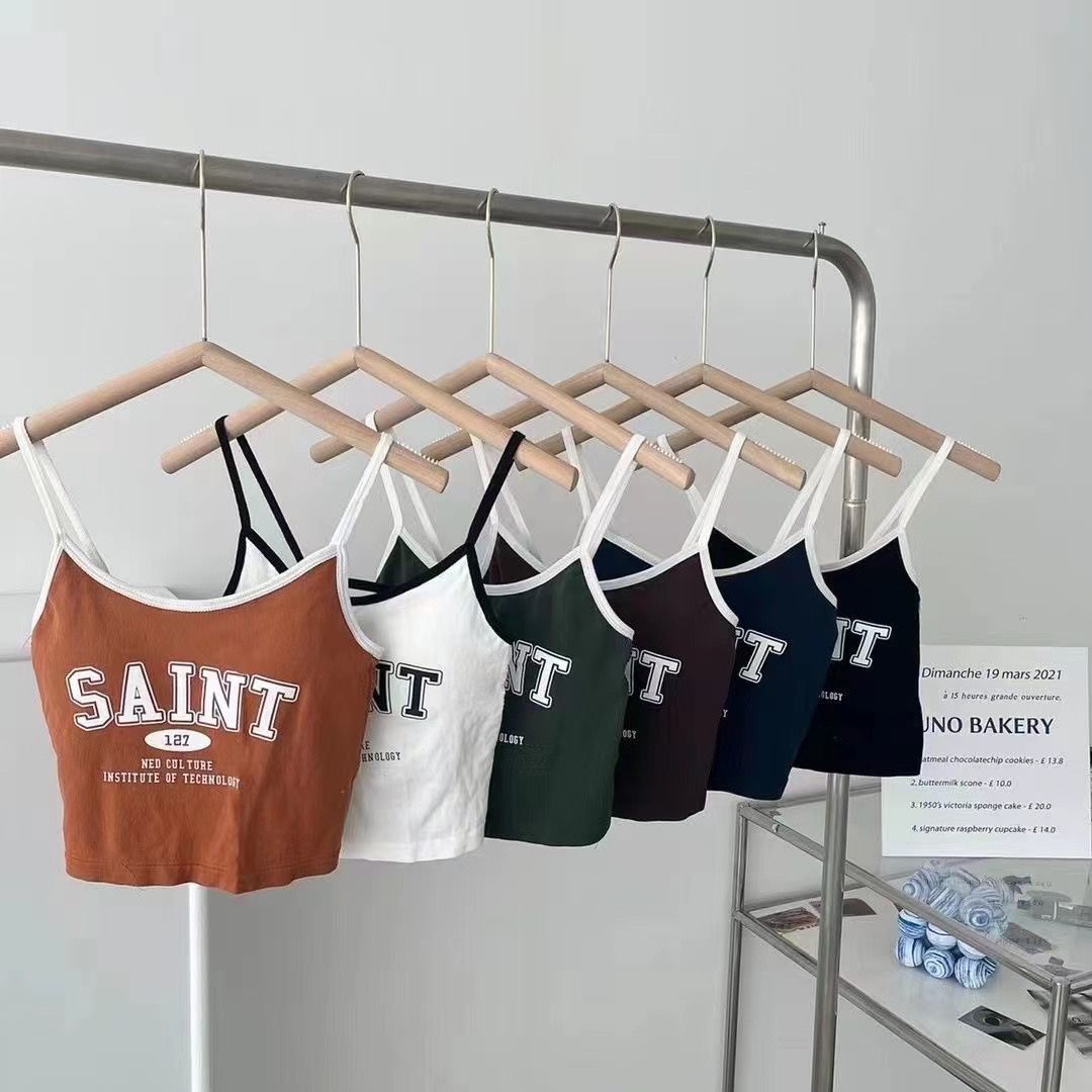 슬링 인쇄 아름다운 뒤 여성용 가슴 패드가있는 스틸 링베이스 일체형 탑이없는 스포츠 컬러 대비 레터 조끼스토어 가기